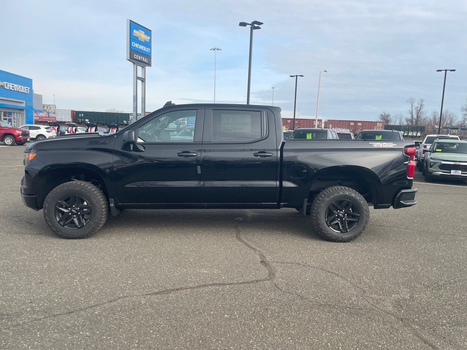 2026 Chevrolet Silverado Crew Custom TB for sale at Central Chevrolet in West Springfield, MA. This striking Black 4WD pickup features a Jet Black interior and is powered by a robust 5.3L EcoTec3 V8 engine with Dynamic Fuel Management and a 10-speed automatic transmission. Engineered for the trails, this Trail Boss includes the Z71 Off-Road Package with a factory 2-inch lift, monotube shocks, skid plates, and hill descent control. The Autotrac 2-speed transfer case and Goodyear Wrangler Territory tires provide exceptional capability throughout Western Massachusetts and the Springfield area. Tech features include the Chevrolet Infotainment 3 system with a 7-inch touchscreen, wireless Apple CarPlay, and wireless Android Auto. Stay connected with a 120V power outlet in the cargo bed and enjoy the convenience of remote start and the EZ Lift power lock and release tailgate. Safety is paramount with Chevy Safety Assist, including lane departure warning, forward collision alert, automatic emergency braking, and an HD backup camera. This truck stands out with the Dark Essentials Package, black nameplates, and 18-inch high gloss black aluminum wheels. Offering 16 MPG combined and a heavy-duty Trailering Package with hitch guidance, this V8 truck is ready for any job. Visit Central Chevrolet in West Springfield, MA to test drive this incredible Silverado today. Pricing reflects total incentives available to qualified buyers in the 01089 Zip Code. Advertised price includes applicable Dealer Discounts, Consumer Cash, Costco, GM Conquest, Trade Assistance, and Military/First Responder incentives. Residency restrictions and eligibility requirements apply; not all buyers will qualify. Price excludes tax, title, registration, and $695 Doc & Title Prep Fee. (unless itemized above). Offers are subject to change without notice. Visit www.centralchevyauto.com for complete pricing details.