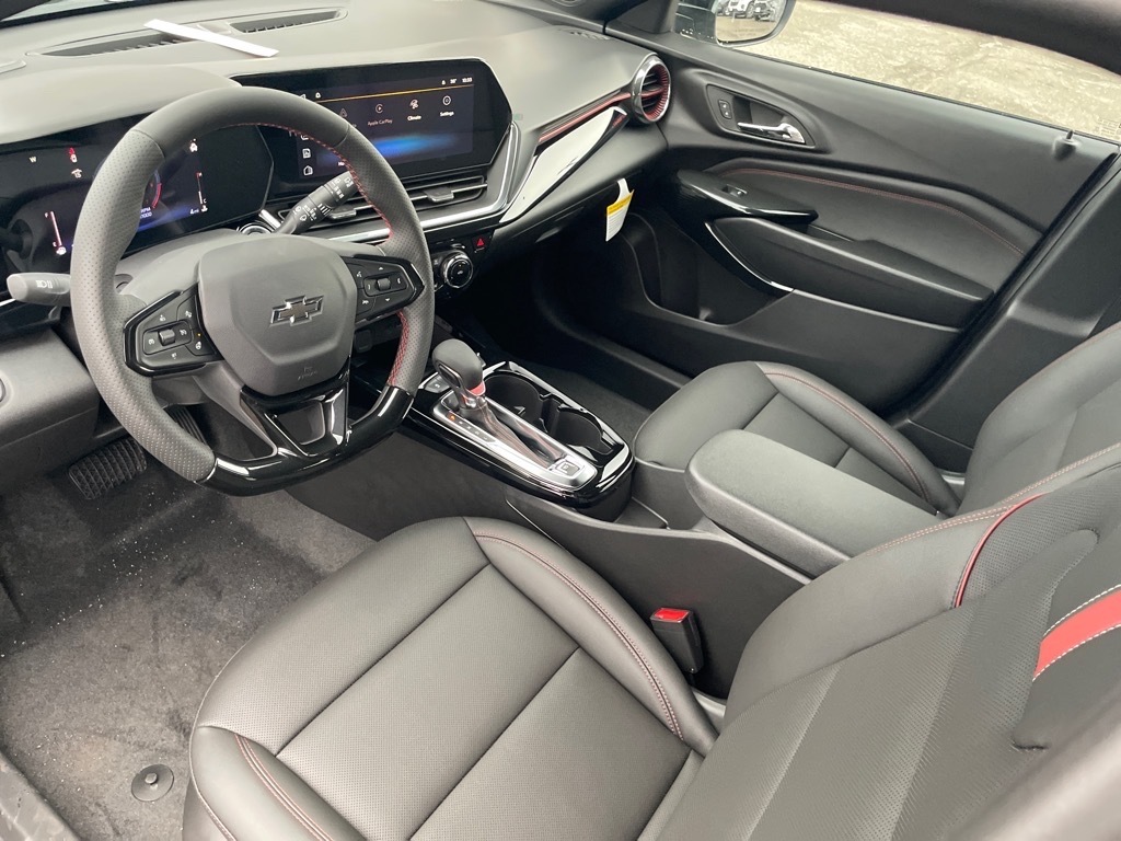 2026 Chevrolet Trax 2RS for sale at Central Chevrolet in West Springfield, MA. This Sterling Gray Metallic beauty with a Jet Black and Red accented interior is powered by an EcoTec 1.2L Turbo engine paired with a smooth 6-speed automatic transmission, offering an impressive 30 MPG combined city/highway fuel economy. Experience advanced connectivity with wireless Apple CarPlay and Android Auto displayed on an 11-inch advanced color LCD screen, complemented by an 8-inch driver information center. Comfort is paramount with a flat-bottom heated steering wheel and heated front seats, while the convenience of keyless open and start, and remote vehicle start ensures ease of use. Safety is a top priority with Chevy Safety Assist, including Forward Collision Alert, Automatic Emergency Braking, Front Pedestrian Braking, Lane Keep Assist with Lane Departure Warning, Following Distance Indicator, and Intellibeam automatic high beams. Additional features include LED headlamps, LED daytime running lamps, a rear spoiler, black roof rails, and stylish 19-inch black-painted machined wheels. This Trax 2RS also boasts a power sliding glass sunroof and a wireless charging pad, all part of the premium Sunroof Package. For added peace of mind, the Driver Confidence Package includes Rear Cross Traffic Alert, Lane Change Alert with Side Blind Zone Alert, Adaptive Cruise Control, and Rear Park Assist. Discover this exceptional 2026 Chevrolet Trax 2RS at Central Chevrolet in West Springfield, MA, serving the Springfield area and all of Western Massachusetts. Pricing reflects total incentives available to qualified buyers in the 01089 Zip Code. Advertised price includes applicable Dealer Discounts, Consumer Cash, Costco, GM Conquest, Trade Assistance, and Military/First Responder incentives. Residency restrictions and eligibility requirements apply; not all buyers will qualify. Price excludes tax, title, registration, and $695 Doc & Title Prep Fee. (unless itemized above). Offers are subject to change without notice. Visit www.centralchevyauto.com for complete pricing details.