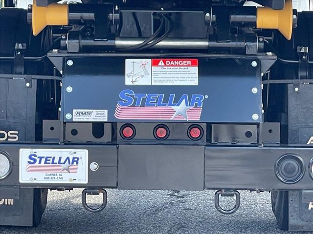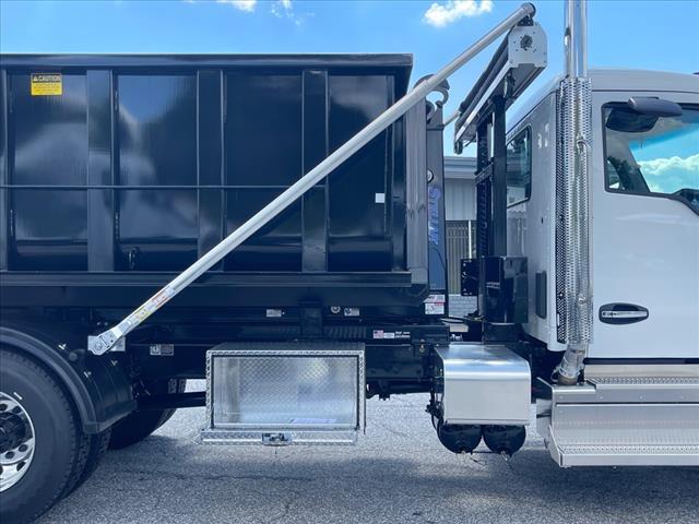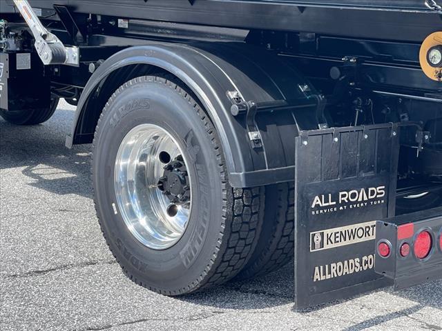 2025 Kenworth T280 Engine: PACCAR PX-7 260, 260 HP @ 2400 RPM, 660 lb-ft torque @ 1400 RPM, with exhaust brake Transmission: Allison 2500RDS 5-speed automatic with PTO provision Front Axle: Dana Spicer D-1001IL, 10,000 lbs capacity Rear Axle: Dana Spicer S17-140, 17,000 lbs capacity Rear Axle Ratio: 5.29 Wheelbase: 194 inches Cab-to-Axle: 126.50 inches Frame: 9-7/8 x 1/4 steel, 120,000 PSI Suspension: Hendrickson HAS210, 21,000 lbs capacity, 8.8 ride height (rear) Gross Vehicle Weight Rating (GVWR): 26,000 lbs Brakes: Bendix air disc brakes (front and rear) Fuel Tank: 60 US gallon D-shaped rectangular aluminum, with non-slip step DEF Tank: 5.5 gallon Front Tires: Michelin X Line Energy Z 11R22.5 14PR Rear Tires: Michelin XDA5 11R22.5 14PR Wheels: Alcoa ULA18 22.5x8.25 aluminum, high polish Exterior Color: White (L0006EY) Interior: Slate Gray with cloth headliner Cab: Day cab configuration with raised roof profile Driver Seat: Kenworth Air Seat high back with dual armrests, tough cloth Passenger Seat: Kenworth 2-man bench toolbox seat, tough cloth Steering Wheel: 18 non-leather with integrated radio and cruise controls Radio: Kenworth DEA710 AM/FM/WB/USB with Bluetooth Mirrors: Dual Kenworth Aero chrome shell, motorized/heated with integral convex Notable features: Kenworth TruckTech remote diagnostics LED marker lights and stop/turn/tail lights 7 digital display main instrument package Cab air suspension Single round 26 air horn on left roof Daylight doors with power windows and locks Aerodynamic painted bumper Stellar 20-Series Hooklift Specifications: Model: Stellar Shuttle Model 120-16-20 Hydraulic Hooklift Lifting Capacity: 20,000 pounds gross weight evenly distributed Container Length: 12.5-foot through 15-foot (up to 17-foot with limited dump angle) Maximum Dump Angle: 48 Operating Pressure: 4,200 PSI maximum Weight of Hooklift: Not exceeding 2,625 pounds Height of Hooklift: Not exceeding 8.38 from t