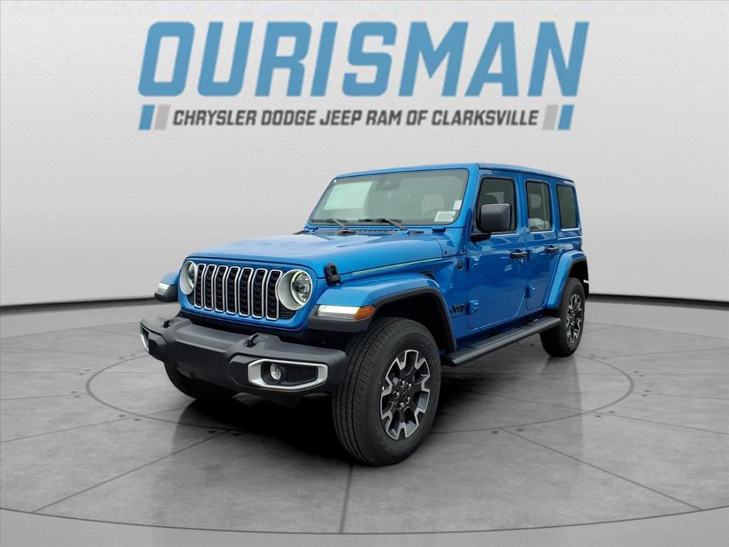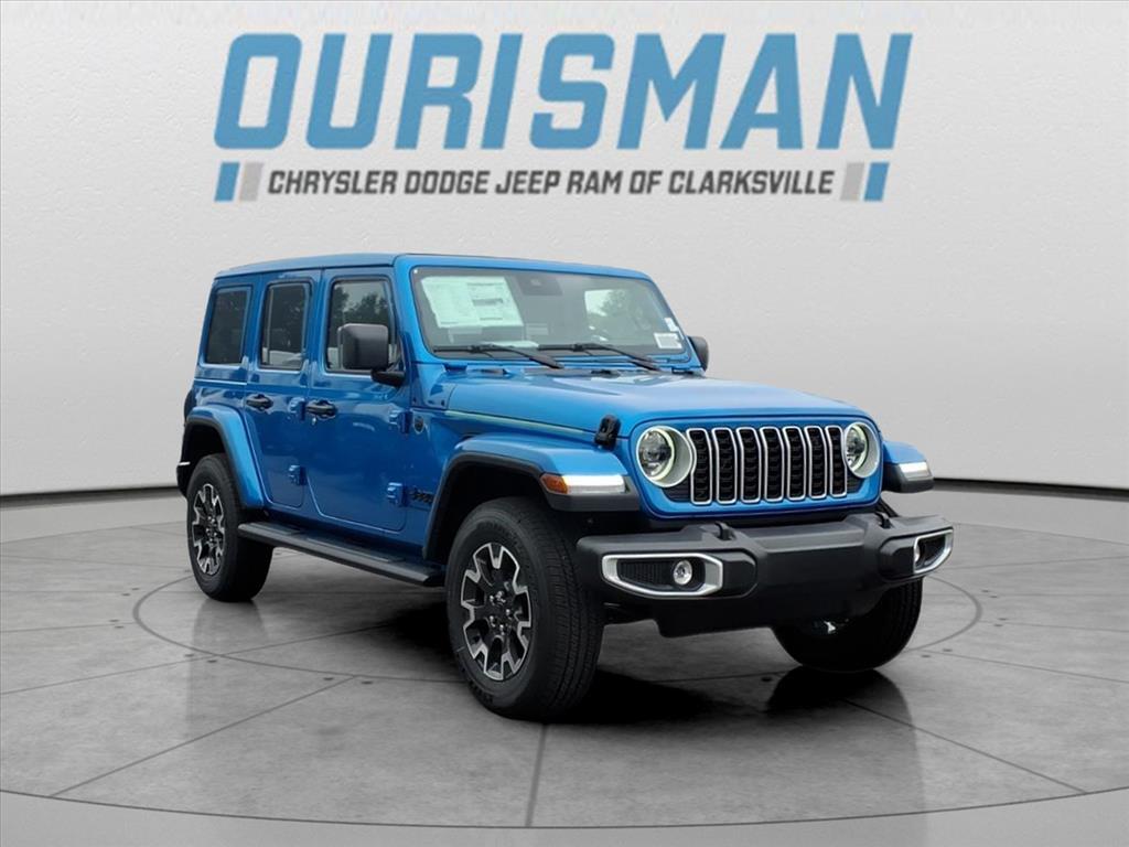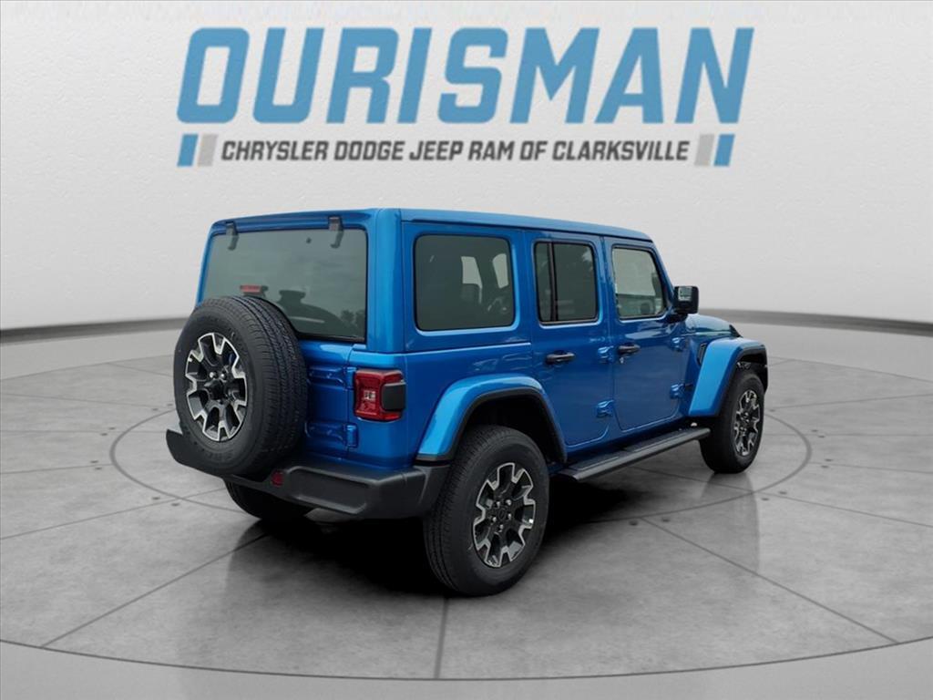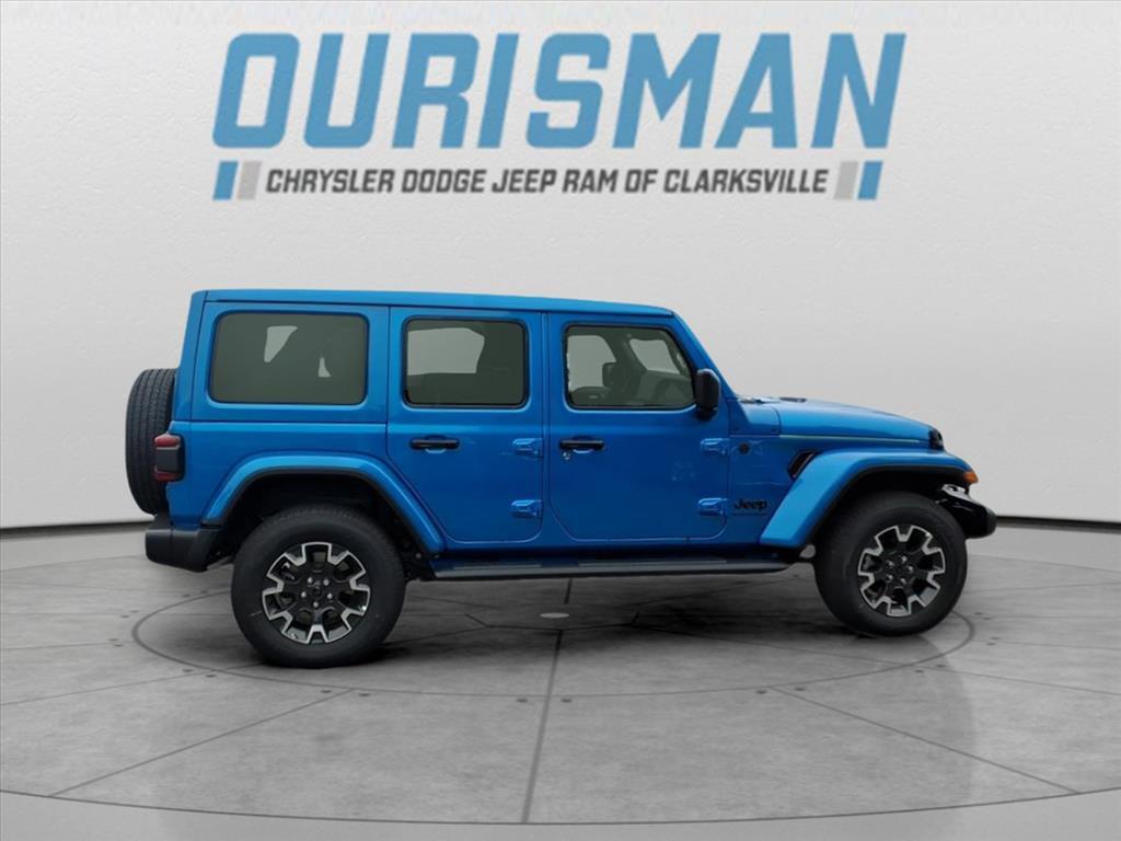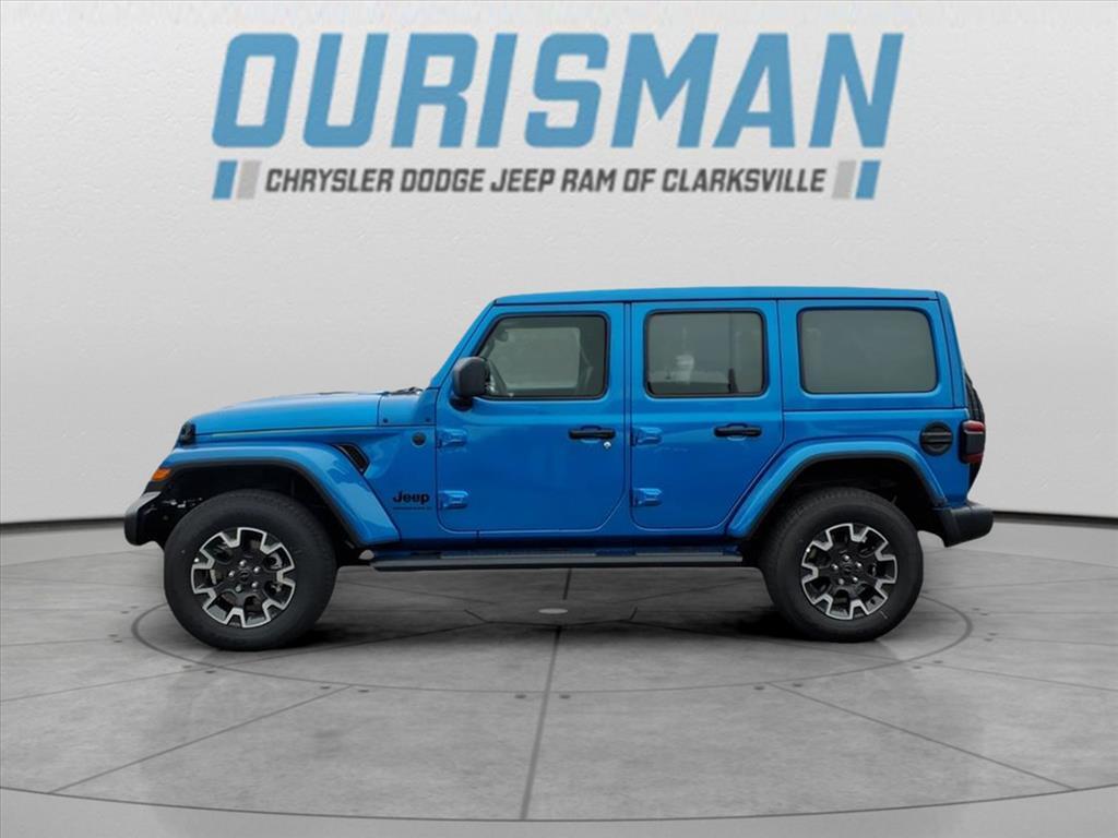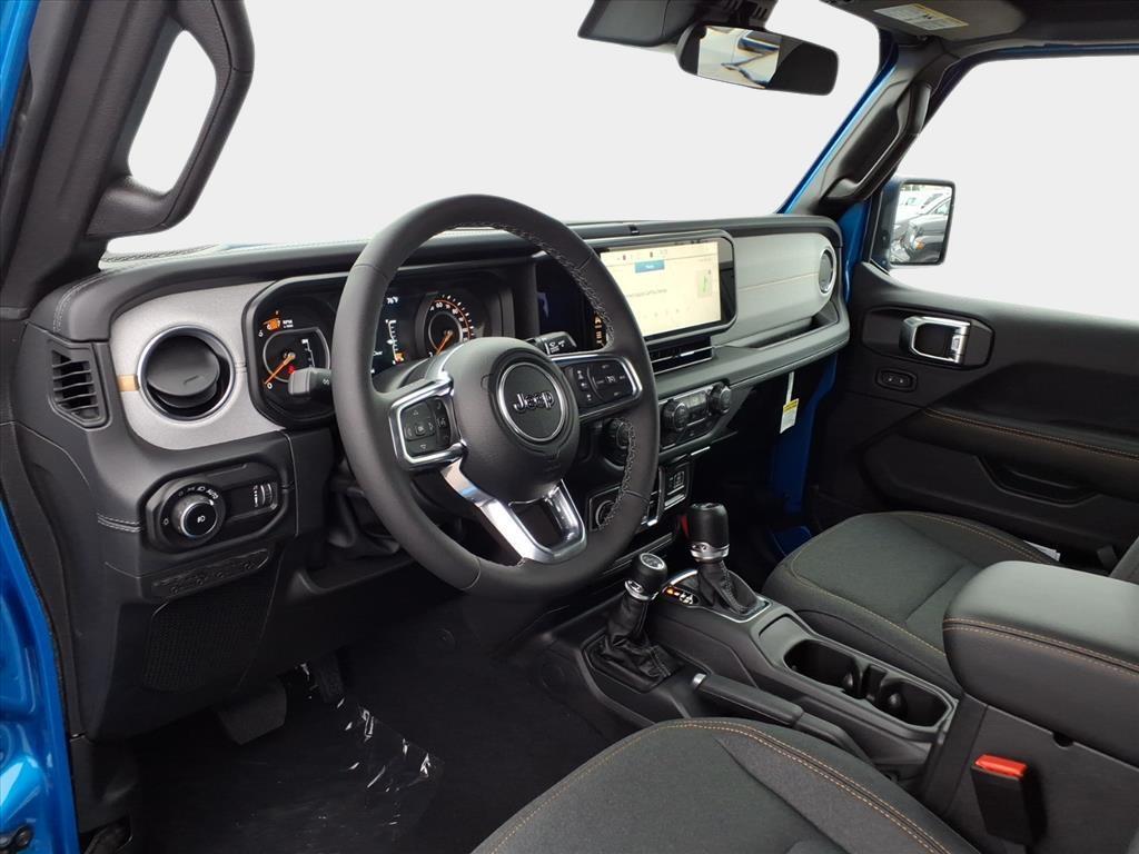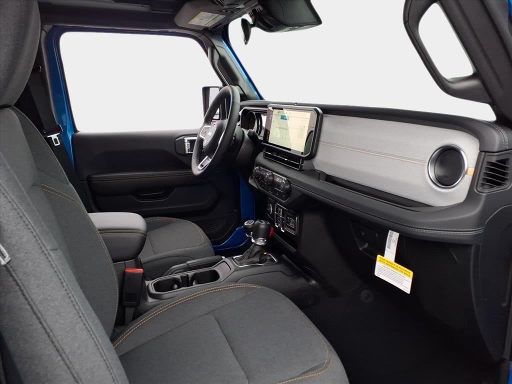 This NEW 2025 Hydro Blue Pearl Coat Jeep Wrangler Sahara 4WD is well equipped and includes these features and benefits: Quick Order Package 24G Sahara, 110 MPH Vehicle Max Speed Calibration, 3.45 Overall Top Gear Ratio, 4-Wheel Disc Brakes, 4G LTE Wi-Fi Hot Spot, 8 Speakers, ABS brakes, Air Conditioning, Alloy wheels, AM/FM radio: SiriusXM, Apple CarPlay, Apple CarPlay/Android Auto, Automatic temperature control, Aux Battery, Brake assist, Cloth Low-Back Bucket Seats, Compass, Connectivity - US/Canada, Delay-off headlights, Driver door bin, Driver vanity mirror, Dual front impact airbags, Dual front side impact airbags, Electronic Stability Control, Emergency communication system: Jeep Connect, Front anti-roll bar, Front Bucket Seats, Front Center Armrest w/Storage, Front dual zone A/C, Front fog lights, Front License Plate Bracket (DISC), Front reading lights, Fully automatic headlights, Google Android Auto, Heated door mirrors, Heated front seats, Heated steering wheel, Heavy Duty Suspension w/Gas Shocks, Illuminated entry, Integrated Center Stack Radio, Integrated roll-over protection, Low tire pressure warning, MOPAR All-Weather Floor Mats, Mopar Black Tubular Side Steps, Non-Lock Fuel Cap w/o Discriminator, Occupant sensing airbag, Outside temperature display, Overhead airbag, Panic alarm, ParkView Rear Back-Up Camera, Passenger door bin, Passenger vanity mirror, Power door mirrors, Power steering, Power Top Quarter Window Storage Bag, Power windows, Radio data system, Radio: Uconnect 5 w/12.3Display, Rear anti-roll bar, Rear reading lights, Rear Window Defroster, Rear Window Wiper/Washer, Remote keyless entry, Removable Rear Quarter Windows, Security system, Sky 1-Touch Power Top, Speed control, Split folding rear seat, Steering wheel mounted audio controls, Stop-Start Dual Battery System, Tachometer, Telescoping steering wheel, Tilt steering wheel, Traction control, Trip computer, Variably intermittent wipers, Voltmeter, Wheels: 18x 7.5 Machine/Painted Gray,