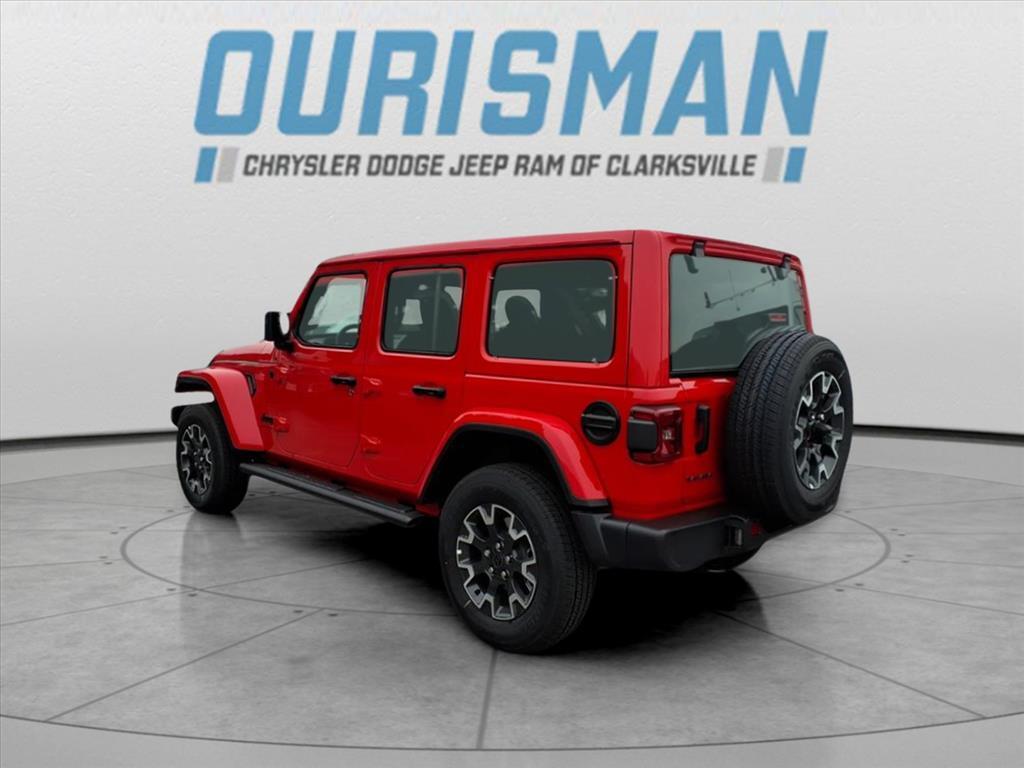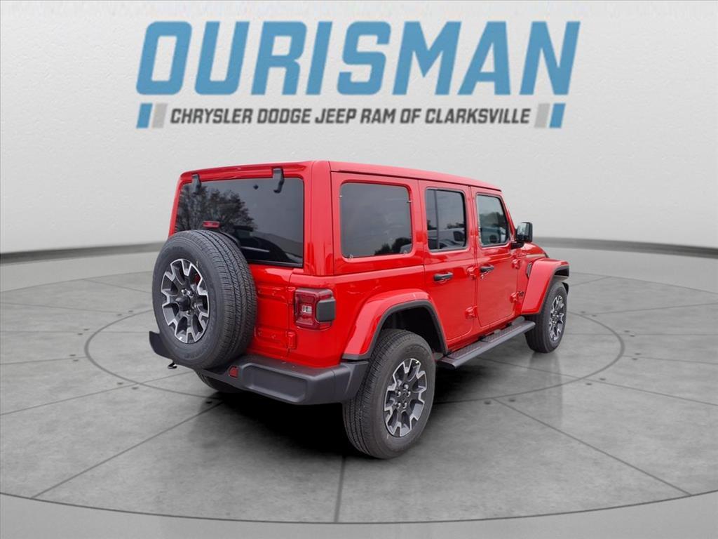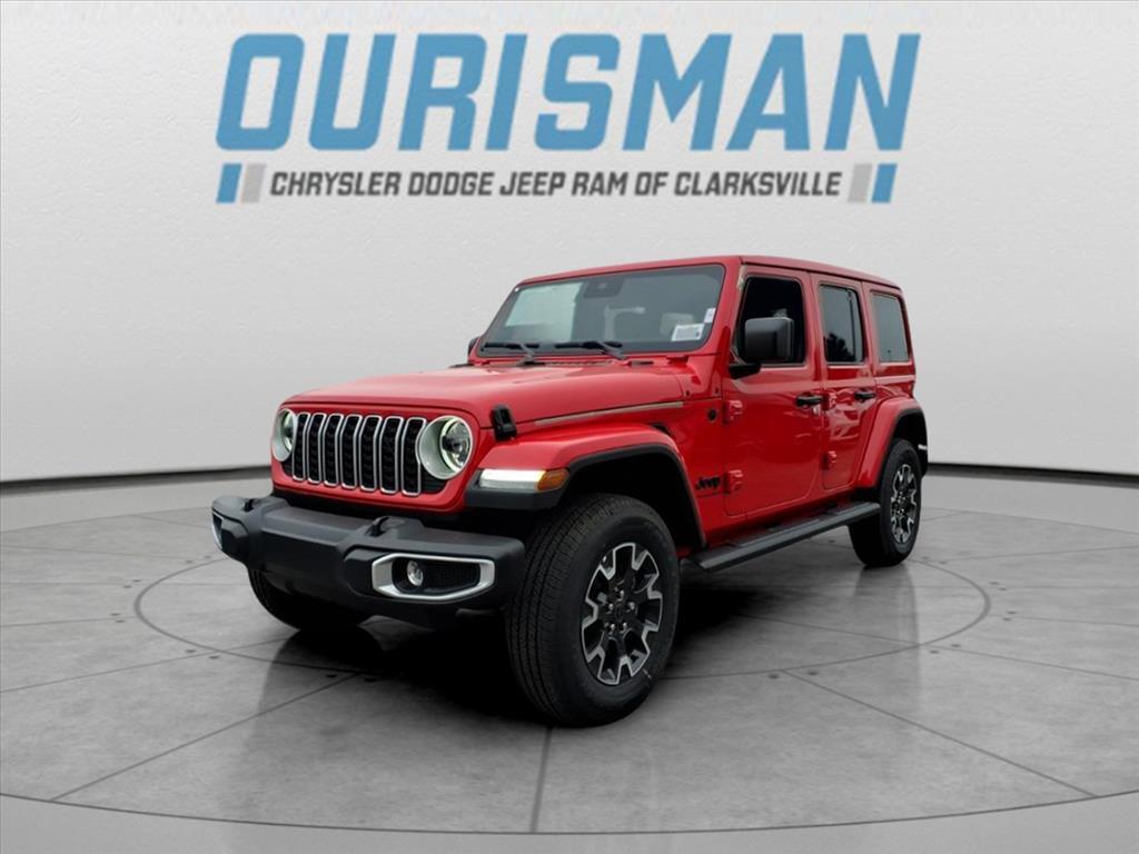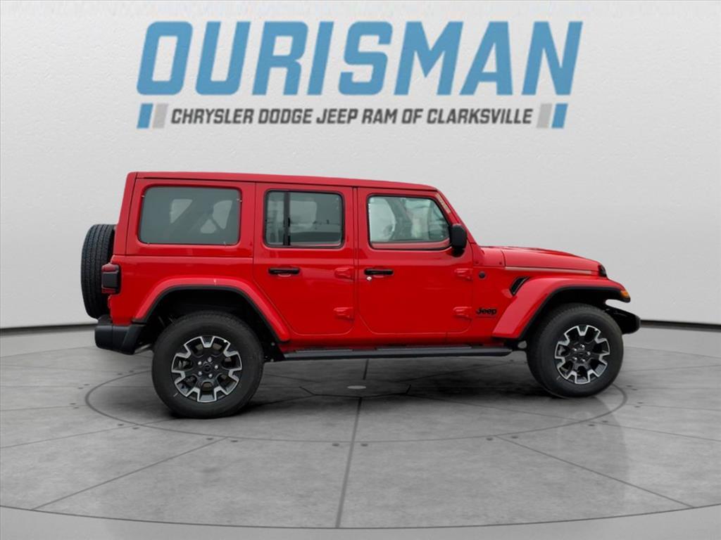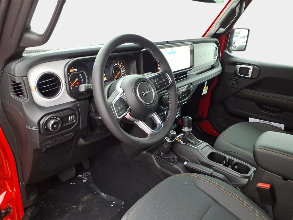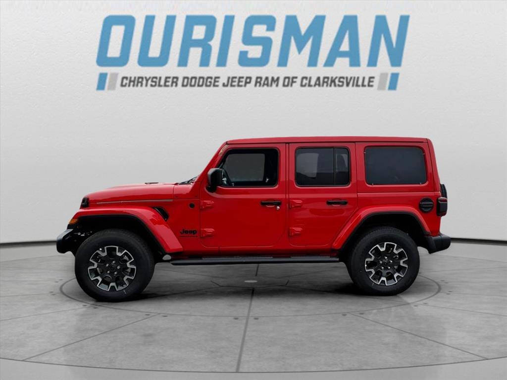This NEW 2025 Firecracker Red Clearcoat Jeep Wrangler Sahara 4WD is well equipped and includes these features and benefits: Quick Order Package 24G Sahara, 110 MPH Vehicle Max Speed Calibration, 3.45 Overall Top Gear Ratio, 4-Wheel Disc Brakes, 4G LTE Wi-Fi Hot Spot, 8 Speakers, ABS brakes, Air Conditioning, Alloy wheels, AM/FM radio: SiriusXM, Apple CarPlay, Apple CarPlay/Android Auto, Automatic temperature control, Aux Battery, Brake assist, Cloth Low-Back Bucket Seats, Compass, Connectivity - US/Canada, Delay-off headlights, Driver door bin, Driver vanity mirror, Dual front impact airbags, Dual front side impact airbags, Electronic Stability Control, Emergency communication system: Jeep Connect, Front anti-roll bar, Front Bucket Seats, Front Center Armrest w/Storage, Front dual zone A/C, Front fog lights, Front License Plate Bracket (DISC), Front reading lights, Fully automatic headlights, Google Android Auto, Heated door mirrors, Heated front seats, Heated steering wheel, Heavy Duty Suspension w/Gas Shocks, Illuminated entry, Integrated Center Stack Radio, Integrated roll-over protection, Low tire pressure warning, MOPAR All-Weather Floor Mats, Mopar Black Tubular Side Steps, Non-Lock Fuel Cap w/o Discriminator, Occupant sensing airbag, Outside temperature display, Overhead airbag, Panic alarm, ParkView Rear Back-Up Camera, Passenger door bin, Passenger vanity mirror, Power door mirrors, Power steering, Power Top Quarter Window Storage Bag, Power windows, Radio data system, Radio: Uconnect 5 w/12.3Display, Rear anti-roll bar, Rear reading lights, Rear Window Defroster, Rear Window Wiper/Washer, Remote keyless entry, Removable Rear Quarter Windows, Security system, Sky 1-Touch Power Top, Speed control, Split folding rear seat, Steering wheel mounted audio controls, Stop-Start Dual Battery System, Tachometer, Telescoping steering wheel, Tilt steering wheel, Traction control, Trip computer, Variably intermittent wipers, Voltmeter, Wheels: 18x 7.5 Machine/Painted Gr