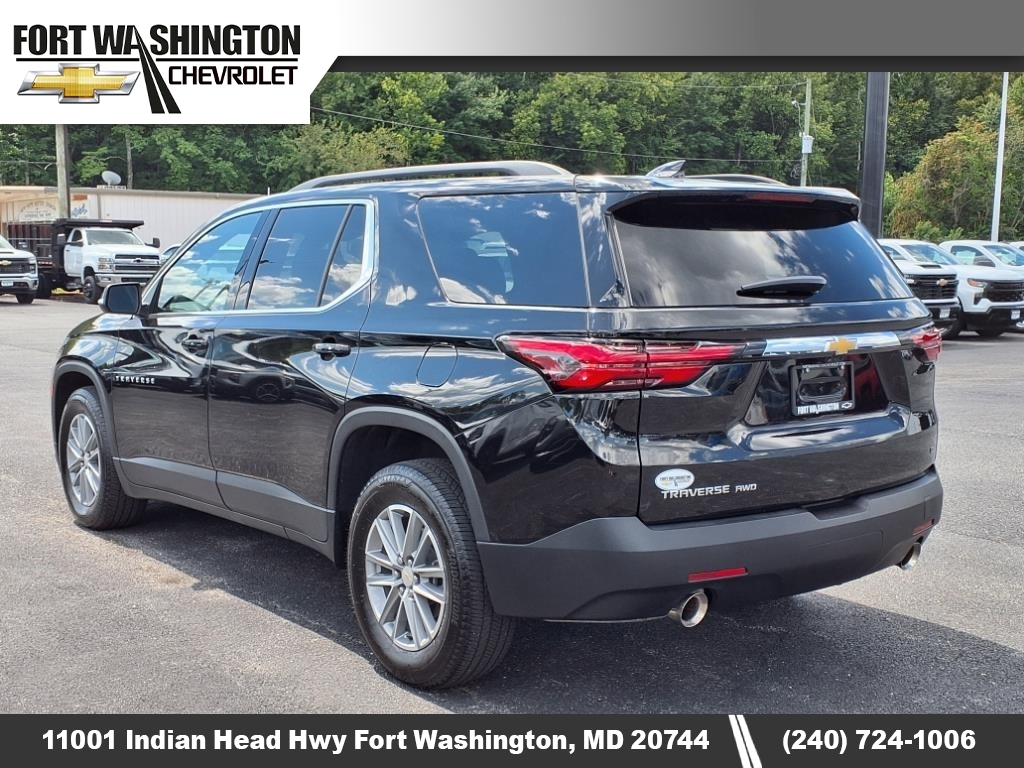 Come visit us at the all new Fort Washington Chevrolet! We are just 7 minutes from the beltway on route 210 (Indian Head hwy). Under new ownership, with the same family oriented staff to assist with all automotive needs. Please call us today at 301-292-6500. We are excited to preview your selection with you! We have financing available for all buyers. More than 20 lenders ready. Clean CARFAX. Odometer is 29588 miles below market average! 2023 Chevrolet Traverse LT 1LT **GOOD BRAKES**, **GOOD TIRES**, ** AWD - Never Worry About The Weather! **, ** Non Smoker! Well Cared For & Maintained! **, ** Push Button Start! **, ** Remainder Of Factory Warranty Still Applies! **, **Certified By Carfax - NO ACCIDENTS!**, **Certified By Carfax - ONE OWNER!**, **Certified By Carfax- NO ACCIDENTS AND ONE OWNER!**, **Towing Package**, **V6 - Unbelievable Pick-Up! -- Dont Settle For The 4cyl!!**, Heated seats, Backup Camera, Navigation System, Bluetooth, Remote start, Blind Spot Monitoring, Third-row seating, Traverse LT 1LT, 4D Sport Utility, 3.6L V6 SIDI VVT, 9-Speed Automatic, AWD, Mosaic Black Metallic, Jet Black Cloth.