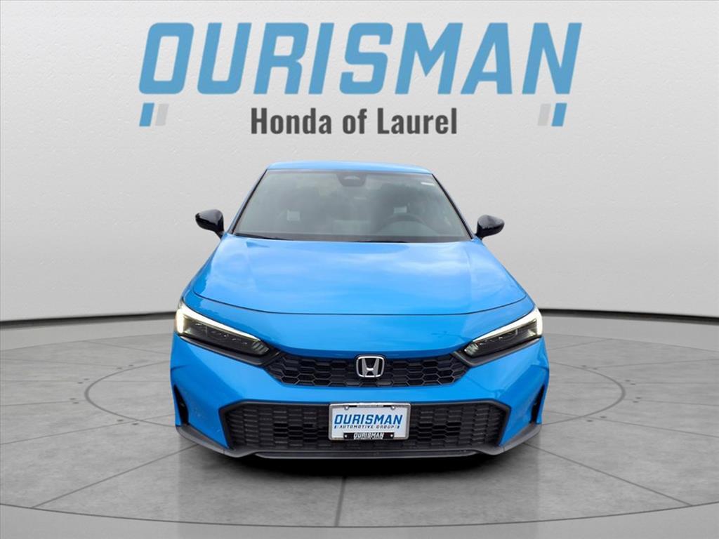 Ourisman Honda of Laurel welcomes you to come test drive this NEW 2026 Boost Blue Pearl Honda Civic Sport FWD is well equipped and includes these features and benefits: Blk Lth &Clth Artificial Leather, 4-Wheel Disc Brakes, 8 Speakers, ABS brakes, Adaptive Cruise Control: Adaptive Cruise Control (ACC) with Low-Speed Follow, Air Conditioning, Alloy wheels, AM/FM radio, Apple CarPlay/Android Auto, Auto High-beam Headlights, Automatic temperature control, Blind Spot Information (BSI) System warning, Brake assist, Bumpers: body-color, Cloth/Leatherette Seating Surfaces, Delay-off headlights, Driver door bin, Driver vanity mirror, Dual front impact airbags, Dual front side impact airbags, Electronic Stability Control, Emergency communication system: HondaLink, Exterior Parking Camera Rear, Four wheel independent suspension, Front anti-roll bar, Front Bucket Seats, Front Center Armrest, Front reading lights, Fully automatic headlights, Heated door mirrors, HondaLink, Illuminated entry, Knee airbag, Lane departure: Lane Keeping Assist System (LKAS) active, Leather Shift Knob, Low tire pressure warning, Occupant sensing airbag, Outside temperature display, Overhead airbag, Panic alarm, Passenger door bin, Passenger vanity mirror, Power door mirrors, Power steering, Power windows, Radio data system, Radio: 180-Watt Audio System, Rear anti-roll bar, Rear side impact airbag, Rear window defroster, Rear window wiper, Remote keyless entry, Security system, Speed control, Speed-sensing steering, Split folding rear seat, Steering wheel mounted audio controls, Tachometer, Telescoping steering wheel, Tilt steering wheel, Traction control, Trip computer, and Wheels: 18Gloss Black Alloy. 30/38 City/Highway MPG Blk Lth &Clth Artificial Leather. Prices do not include tax, tags, title, registration, electronic filing fee, processing fee of $800 (Not required by law), iKon (Optional $1,295.), And any reconditioning fees.