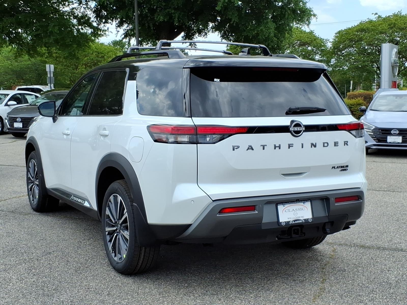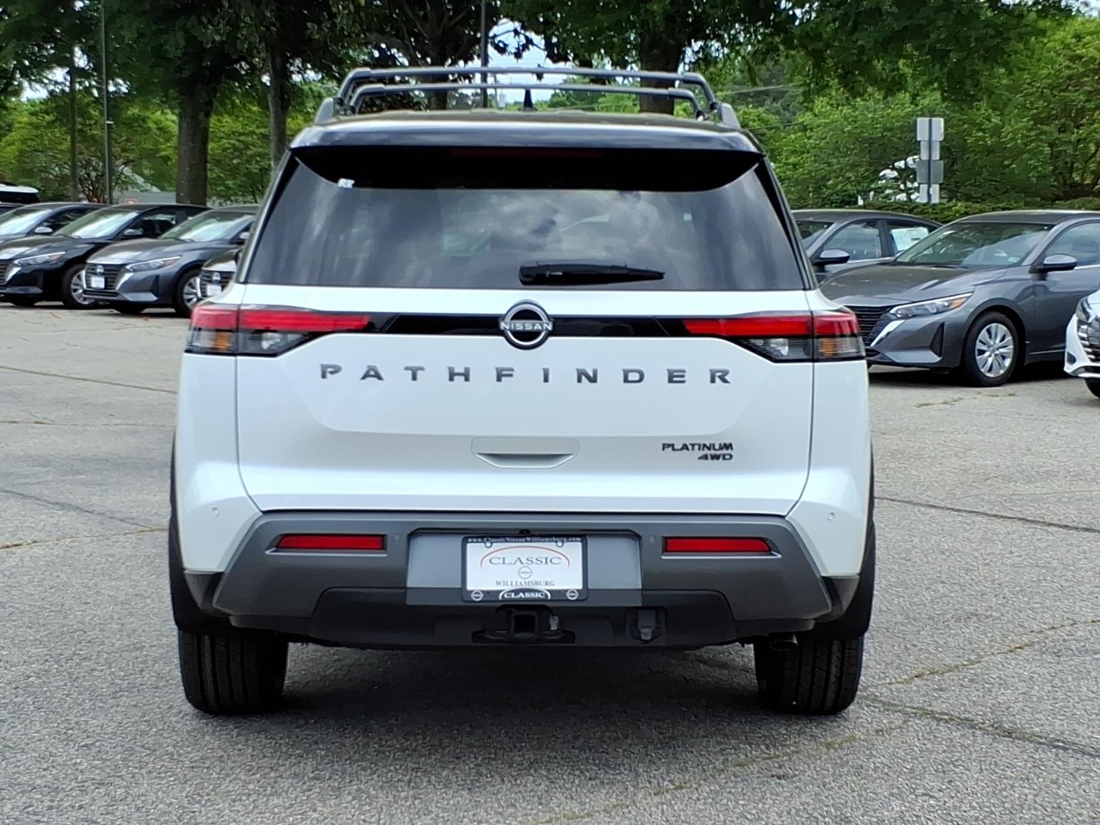 This New 2026 Nissan Pathfinder Platinum, is XKJ/2T WHT BLK in color with a G/CHARCOAL interior. Stock Number NQ61424. You can connect with us by calling . Important Package and Feature Information Safety and Security Forward collision mitigation - Forward thinking. You look away for just a second and suddenly the vehicle in front of you has stopped. Thats when the forward collision mitigation system comes to life. When it senses an impending impact, it will activate a combination of features to help prevent or reduce the severity of an accident. Forward collision mitigation is always looking ahead. Pedestrian impact prevention - An extra step toward safety. Pedestrians dont always stop, look, and listen, but with Pedestrian Impact Prevention, your vehicle is equipped to better see them and avoid them. This system constantly monitors the road ahead to identify and track pedestrians. It projects that image to an interior display screen, AND should an impact become likely, Pedestrian impact prevention takes steps to avoid a collision. Hands-on cruise control. Set it and forget it. Road trips used to be stressful. Cruise control only managed speed, but not distance or safety. Now, with hands-on cruise control, simply set your desired speed and let sensor technology maintain a safe distance between you and surrounding vehicles. It slows you down; speeds you up and even keeps you in your own lane. Meet your ultimate co-pilot with hands-on cruise control.Technology and Telematics NissanConnect featuring Apple CarPlay and Android Auto smart device wireless mirroring Mobile hotspot - WiFi on the fly. Connect your devices to the Internet through your vehicles private mobile hotspot and take the internet wherever your journey takes you, without eating up your data allowance. Find the hotspot with mobile hotspot. At Classic Nissan Williamsburg, were here to Serve you! Our staff is 100% dedicated to customer satisfaction and we understand that you need clear, transparent information throughout the car buying process. With our live market pricing philosophy, we offer the right cars at the right price, and the transparency to back it up!