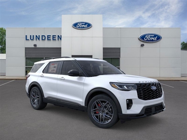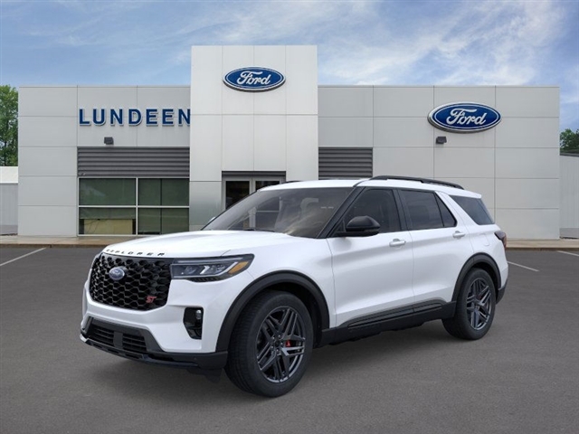 Lundeen Bros Ford of Annandale is a Family Owned and Operated Dealership. We are the Home of Lifetime Powertrain Warranty. Faith Family Friends and Fords since 1920. B&O Sound System by Bang & Olufsen, Equipment Group 400A Standard Package, Multicontour Seats w/Front Active Motion, Navigation System, Panoramic Vista Roof w/Power Shade, Sun and Sound Package. Star White Metallic Tri-Coat 2025 Ford Explorer ST 4WD 10-Speed Automatic 3.0L EcoBoost V6 Price includes: $1000 - Bonus Cash. Exp. 11/19/2025 $1500 - Bonus Customer Cash. Exp. 01/05/2026