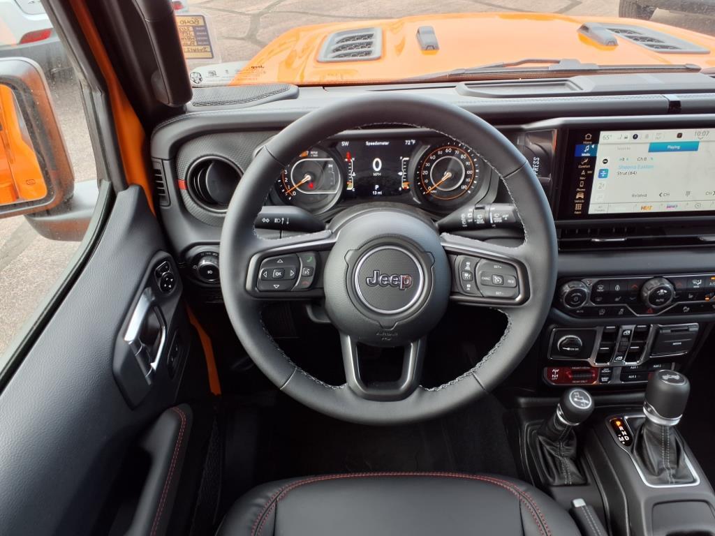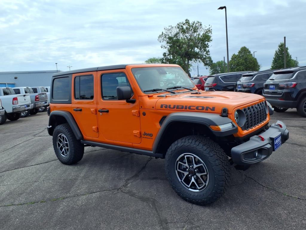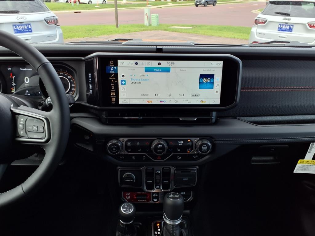 Lager's of Mankato is proud to present this 2025 Jeep Wrangler Rubicon Convenience Group (Heated Front Seats, Heated Steering Wheel, and Universal Garage Door Opener), Quick Order Package 24R Rubicon, Safety Group (Auto High Beam Headlamp Control, Blind Spot & Cross Path Detection, and ParkSense Rear Park Assist System), Technology Group (12.3 Touchscreen Display, 4G LTE Wi-Fi Hot Spot, Apple CarPlay, Auto-Dimming Rear-View Mirror, Connected Travel & Traffic Services, Connectivity - US/Canada, Google Android Auto, GPS Navigation, HD Radio, Integrated Off-Road Camera, Integrated Voice Command w/Bluetooth, Radio: Uconnect 5 Nav w/12.3 Display, SiriusXM Radio Service, and SiriusXM w/360L), 4-Wheel Disc Brakes, 4.10 Rear Axle Ratio, 8 Speakers, 97 MPH Vehicle Max Speed Calibration, ABS brakes, Air Conditioning, Alloy wheels, Alpine Premium Audio System, AM/FM/SiriusXM radio:, Apple CarPlay/Android Auto, Automatic temperature control, Aux Battery, Auxiliary Switches, Black 3-Piece Hard Top, Brake assist, Class II Receiver Hitch, Cloth Low-Back Bucket Seats, Compass, Delay-off headlights, Driver door bin, Driver vanity mirror, Dual front impact airbags, Dual front side impact airbags, Electronic Stability Control, Emergency communication system: Jeep Connect, Freedom Panel Storage Bag, Front anti-roll bar, Front Bucket Seats, Front Center Armrest w/Storage, Front dual zone A/C, Front fog lights, Front License Plate Bracket (DISC), Front reading lights, Fully automatic headlights, Heated door mirrors, Illuminated entry, Integrated roll-over protection, Low tire pressure warning, MOPAR All-Weather Floor Mats, MOPAR Stainless Door Sill Guards, Non-Lock Fuel Cap w/o Discriminator, Occupant sensing airbag, Outside temperature display, Overhead airbag, Panic alarm, ParkView Rear Back-Up Camera, Passenger door bin, Passenger vanity mirror, Performance Suspension, Power door mirrors, Power steering, Power windows, Radio data system, Radio: Uconnect 5 w/12.3 Display, Rear anti-rol