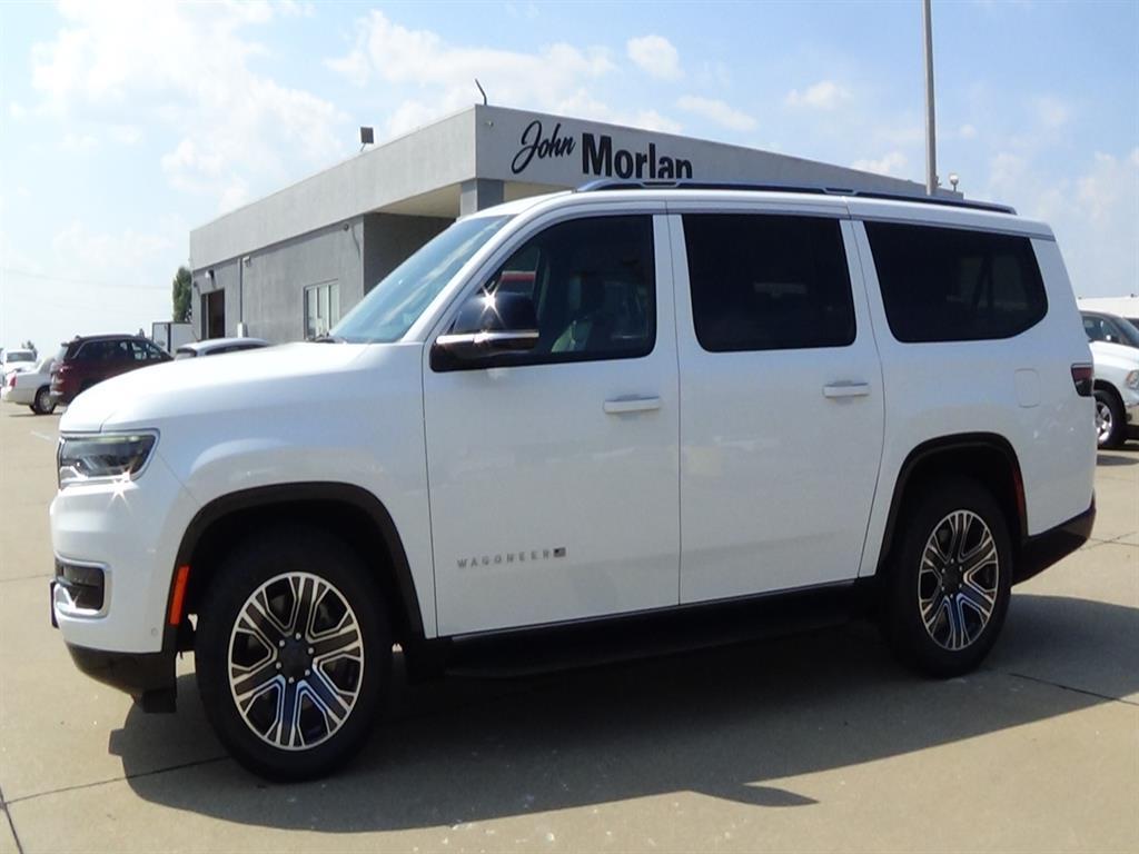 Thank you for considering John Morlan Chrysler! We are a family owned dealership and take pride in taking excellent care of our customers and offering world class customer service. This 2023 Jeep SUV Wagoneer L Series II is a powerful and reliable motorcar. It has driven 60,686 miles and is powered by a 4x4 Hurricane 3.0L Twin Turbo I6 420hp 468 lb-ft engine with twin turbo. It has a bright white clear coat exterior and a global black interior. This vehicle has received a crash test rating of 4 out of 5 stars and boasts many features such as blind spot sensor, hill start assist, full time four wheel drive, interior with leather accents, navigation system with voice recognition, and navigation with touch screen display. With its global black interior and fuel economy of 16 mpg in city and 23 mpg on highway, this motorcar is sure to provide you with a smooth ride. We appreciate the opportunity to serve you and look forward to hearing from you today.