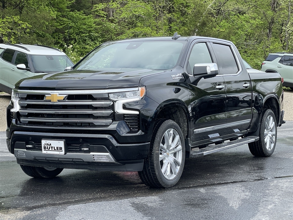 Price does not include tax, title, license, or administration fees. Price does include: $1000 - Bonus Cash. Exp. 11/03/2025 $1250 - Trade Assistance. Exp. 11/03/2025 $3250 - Customer Cash. Exp. 11/03/2025 2025 Chevrolet Silverado 1500 High Country High Country Black 4WD 10-Speed Automatic EcoTec3 5.3L V8 Priced below KBB Fair Purchase Price! Please call today (888) 475-3191. We are proud to be a GM Mark of Excellence Dealership. Come see why we are the #1 Chevrolet dealership in the Midwest. On top of that we have also been awarded Dealer of the year the last 8 years. Proudly serving: St. Louis, South County, Webster Groves, Creve Coeur, Kirkwood, Maryland Heights, Sullivan, Rolla, Columbia, Fenton, Chesterfield, St. Charles, Kansas City, Springfield, Jefferson City, and all of great Missouri and Illinois. While we make every attempt to ensure pricing accuracy. Dealer not responsible for computer or human error, dealer reserves the right to change prices due to human or computer error. In order to put a 24 hour hold deposit on vehicles, Financing must be secured thru Jim Butler Chevrolet Business Office and Cash Deals must be Electronically Transferred within Six Hours. High Capacity Suspension Package, High Country Premium Package (All-Weather Floor Liner (LPO), Power Sunroof, and Wheels: 22x 9Painted Aluminum), Preferred Equipment Group 3LZ (10-Way Power Driver Seat w/Lumbar, 10-Way Power Passenger Seat Adjuster w/Lumbar, 12.3Multicolor Reconfigurable Digital Display, 120-Volt Bed Mounted Power Outlet, 120-Volt Interior Power Outlet, 2 USB Data Ports, 2nd Row Heated Outboard Seats, Adaptive Cruise Control, Auto-Dimming Inside Rear-View Mirror, Auto-Locking Rear Differential, Bed View Camera, Bluetooth� For Phone, Body-Color Painted Mirror Caps, Chevytec Spray-On Black Bedliner, Chrome Assist Steps, Chrome Recovery Hooks, Color-Keyed Carpeting Floor Covering, Deep-Tinted Glass, Driver Memory, Dual Exhaust w/Polished Outlets, Dual Rear USB Ports (Charge Only), Ele