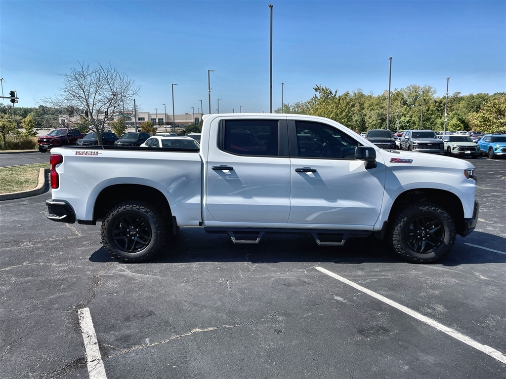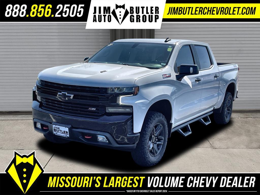 2021 Chevrolet Silverado 1500 LT Trail Boss Summit White 10-Speed Automatic 4WD EcoTec3 6.2L V8 CARFAX One-Owner. Clean CARFAX. Priced below KBB Fair Purchase Price! Please call today (888) 475-3191. We are proud to be a GM Mark of Excellence Dealership. Come see why we are the #1 Chevrolet dealership in the Midwest. On top of that we have also been awarded Dealer of the year the last 8 years. Proudly serving: St. Louis, South County, Webster Groves, Creve Coeur, Kirkwood, Maryland Heights, Sullivan, Rolla, Columbia, Fenton, Chesterfield, St. Charles, Kansas City, Springfield, Jefferson City, and all of great Missouri and Illinois. While we make every attempt to ensure pricing accuracy. Dealer not responsible for computer or human error, dealer reserves the right to change prices due to human or computer error. In order to put a 24 hour hold deposit on vehicles, Financing must be secured thru Jim Butler Chevrolet Business Office and Cash Deals must be Electronically Transferred within Six Hours. Bed Protection Package (Chevytec Spray-On Black Bedliner and Rear Wheelhouse Liners), Cloth Rear Seat w/Storage Package, Convenience Package II (120-Volt Bed Mounted Power Outlet, 120-Volt Instrument Panel Power Outlet, 2 USB Ports, HD Radio, HD Rear Vision Camera, Power Sliding Rear Window w/Rear Defogger, Premium Bose 7-Speaker Sound System, Radio: Chevrolet Infotainment 3 Plus System, SiriusXM w/360L, Universal Home Remote, and Wireless Phone Projection), Convenience Package w/Buckets Seats (10-Way Power Driver Seat w/Lumbar, Dual-Zone Automatic Climate Control, Floor Mounted Center Console, Heated Driver & Front Outboard Passenger Seats, Heated Steering Wheel, and Manual Tilt/Telescoping Steering Column), Dark Essentials Package (LPO) (Black Name Plates (LPO)), Leather Package (Leather-Appointed Front Seat Trim), Preferred Equipment Group 2LT (12-Volt Rear Auxiliary Power Outlet, 170 Amp Alternator, 2 USB Ports (First Row), 4.2Diagonal Color Display Driver Info Center, 4