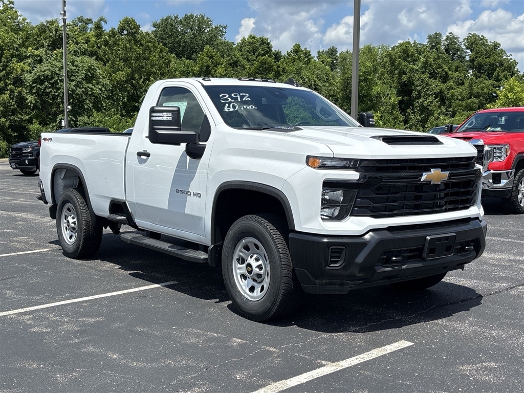 Price does not include tax, title, license, or administration fees. Price does include: $500 - Customer Cash. Exp. 11/03/2025 2025 Chevrolet Silverado 2500HD Work Truck Work Truck Summit White 4WD 10-Speed Automatic 6.6L V8 Please call today (888) 475-3191. We are proud to be a GM Mark of Excellence Dealership. Come see why we are the #1 Chevrolet dealership in the Midwest. On top of that we have also been awarded Dealer of the year the last 8 years. Proudly serving: St. Louis, South County, Webster Groves, Creve Coeur, Kirkwood, Maryland Heights, Sullivan, Rolla, Columbia, Fenton, Chesterfield, St. Charles, Kansas City, Springfield, Jefferson City, and all of great Missouri and Illinois. While we make every attempt to ensure pricing accuracy. Dealer not responsible for computer or human error, dealer reserves the right to change prices due to human or computer error. In order to put a 24 hour hold deposit on vehicles, Financing must be secured thru Jim Butler Chevrolet Business Office and Cash Deals must be Electronically Transferred within Six Hours. Gooseneck/5th Wheel Prep Package (Black Chevytec Spray-On Bedliner), Preferred Equipment Group 1WT (170 Amp Alternator, 2-Speed Electronic Shift Transfer Case, 3.5Diagonal Monochromatic Display DIC, Black Front Bumper, Black Mirror Caps, Black Rear Bumper, Bluetooth� For Phone, Chevrolet Connected Access Capable, Compass, Electronic Cruise Control w/Set & Resume Speed, HD Rear Vision Camera, Locking Tailgate, Manual Tailgate Function w/No EZ Lift, Manual Tilt-Wheel Steering Column, OnStar Services Capable, Power Door Locks, Power Front Windows w/Driver Express Up/Down, Push Button Start, Remote Keyless Entry, Rubberized-Vinyl Floor Covering, Solar Absorbing Tinted Glass, Standard Tailgate, Wi-Fi Hotspot Capable, and Wireless Phone Projection), Snow Plow Prep/Camper Package (220 Amp Alternator), Suspension Package, WT Convenience Package (Deep-Tinted Glass, Electric Rear-Window Defogger, and EZ Lift Power Lock & Rel