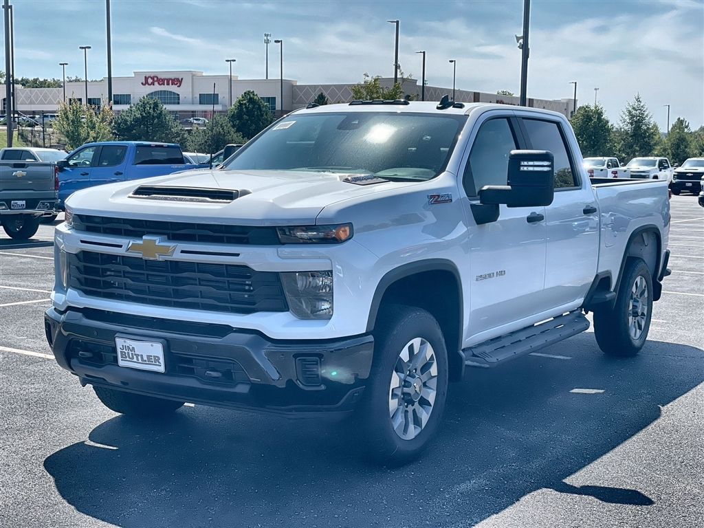 Price does not include tax, title, license, or administration fees. Price does include: $500 - Customer Cash. Exp. 11/03/2025 2025 Chevrolet Silverado 2500HD Custom Custom Summit White 4WD 10-Speed Automatic Duramax 6.6L V8 Turbodiesel Please call today (888) 475-3191. We are proud to be a GM Mark of Excellence Dealership. Come see why we are the #1 Chevrolet dealership in the Midwest. On top of that we have also been awarded Dealer of the year the last 8 years. Proudly serving: St. Louis, South County, Webster Groves, Creve Coeur, Kirkwood, Maryland Heights, Sullivan, Rolla, Columbia, Fenton, Chesterfield, St. Charles, Kansas City, Springfield, Jefferson City, and all of great Missouri and Illinois. While we make every attempt to ensure pricing accuracy. Dealer not responsible for computer or human error, dealer reserves the right to change prices due to human or computer error. In order to put a 24 hour hold deposit on vehicles, Financing must be secured thru Jim Butler Chevrolet Business Office and Cash Deals must be Electronically Transferred within Six Hours. Custom Convenience Package (10-Way Power Driver Seat Adjuster w/Lumbar, 120-Volt Bed Mounted Power Outlet, 120-Volt Interior Power Outlet, Dual Rear USB Ports (Charge Only), Electric Rear-Window Defogger, EZ Lift Power Lock & Release Tailgate, LED Cargo Area Lighting, Remote Vehicle Starter System, and Unauthorized Entry Theft-Deterrent System), Custom Value Package (Auto-Dimming Inside Rear-View Mirror and Heated & Auto-Dimming Vertical Trailering Mirrors), CX Safety Package (Lane Change Alert w/Side Blind Zone Alert, Rear Cross Traffic Alert, and Ultrasonic Front & Rear Park Assist), Preferred Equipment Group 1CX (170 Amp Alternator, 2-Speed Electronic Shift Transfer Case, 3.5Diagonal Monochromatic Display DIC, Black Mirror Caps, Bluetooth� For Phone, Chevrolet Connected Access Capable, Color-Keyed Carpeting Floor Covering, Compass, Deep-Tinted Glass, Electronic Cruise Control w/Set & Resume Speed, Fr