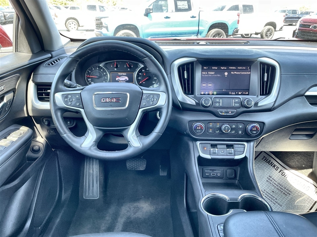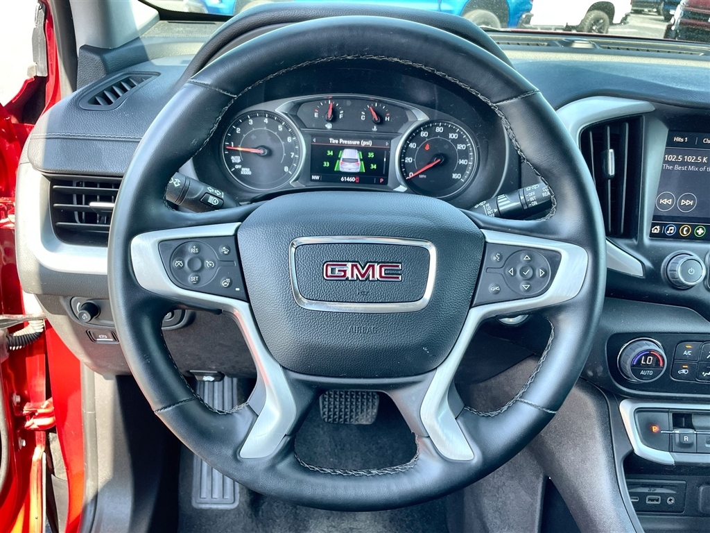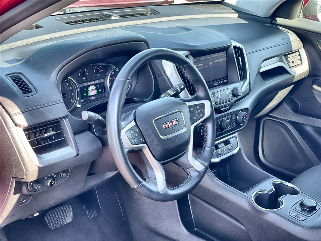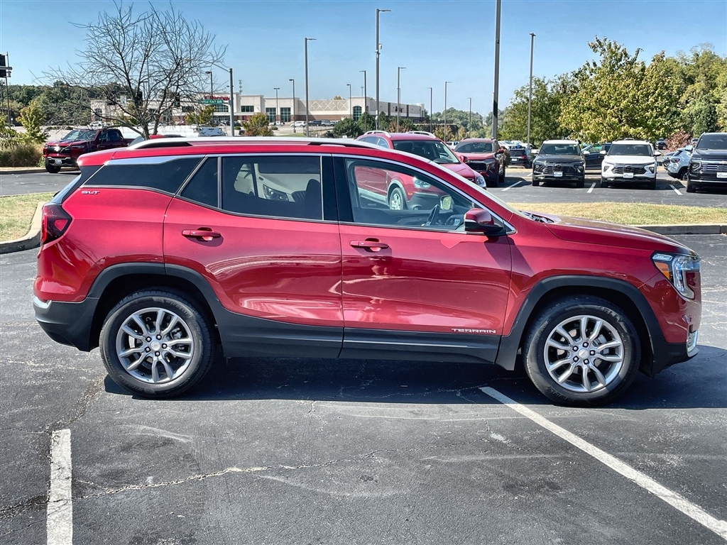 2024 GMC Terrain SLT Volcanic Red Tintcoat 9-Speed Automatic FWD 1.5L DOHC Preferred Equipment Group 4SA. CARFAX One-Owner. Clean CARFAX. Please call today (888) 475-3191. We are proud to be a GM Mark of Excellence Dealership. Come see why we are the #1 Chevrolet dealership in the Midwest. On top of that we have also been awarded Dealer of the year the last 8 years. Proudly serving: St. Louis, South County, Webster Groves, Creve Coeur, Kirkwood, Maryland Heights, Sullivan, Rolla, Columbia, Fenton, Chesterfield, St. Charles, Kansas City, Springfield, Jefferson City, and all of great Missouri and Illinois. While we make every attempt to ensure pricing accuracy. Dealer not responsible for computer or human error, dealer reserves the right to change prices due to human or computer error. In order to put a 24 hour hold deposit on vehicles, Financing must be secured thru Jim Butler Chevrolet Business Office and Cash Deals must be Electronically Transferred within Six Hours. Preferred Equipment Group 4SA, 2 USB Data Ports, 2 USB Data Ports w/SD Card Reader, 3.47 Final Drive Axle Ratio, 4-Wheel Disc Brakes, 6 Speakers, 6-Speaker Audio System Feature, 6-Way Power Front Passenger Seat, 8-Way Power Driver Seat Adjuster, ABS brakes, Air Conditioning, Alloy wheels, AM/FM radio: SiriusXM, Auto High-beam Headlights, Auto-dimming Rear-View mirror, Automatic temperature control, Bluetooth� For Phone, Brake assist, Bumpers: body-color, Compass, Delay-off headlights, Driver & Front Passenger Heated Seats, Driver door bin, Driver vanity mirror, Dual front impact airbags, Dual front side impact airbags, Electronic Stability Control, Emergency communication system: OnStar and GMC connected services capable, Four wheel independent suspension, Front anti-roll bar, Front Bucket Seats, Front Center Armrest, Front dual zone A/C, Front fog lights, Front Passenger 2-Way Power Lumbar, Front reading lights, Fully automatic headlights, Garage door transmitter, Heated door mirrors, Heated front sea