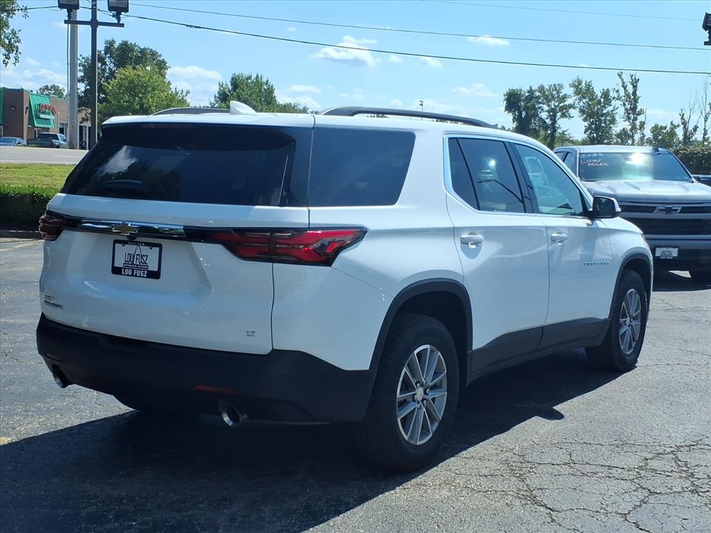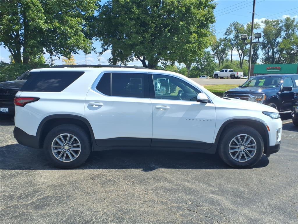 CARFAX One-Owner. Summit White 2023 Chevrolet Traverse LT FWD 3.6L V6 SIDI VVT 9-Speed Automatic 2-Way Manual Front Passenger Seat Adjuster, 3.49 Axle Ratio, 3rd row seats: split-bench, 4-Wheel Disc Brakes, 6 Speakers, 6-Speaker Audio System Feature, 8-Way Power Driver Seat Adjuster, ABS brakes, Air Conditioning, Alloy wheels, AM/FM radio: SiriusXM, Apple CarPlay/Android Auto, Auto High-beam Headlights, Automatic temperature control, Black Roof Rails, Brake assist, Bumpers: body-color, Compass, Delay-off headlights, Driver door bin, Driver vanity mirror, Dual front impact airbags, Dual front side impact airbags, Electronic Stability Control, Emergency communication system, Exterior Parking Camera Rear, Four wheel independent suspension, Front anti-roll bar, Front Bucket Seats, Front Center Armrest, Front dual zone A/C, Front reading lights, Fully automatic headlights, Heated door mirrors, Illuminated entry, Leather steering wheel, Low tire pressure warning, Not Equipped w/Rear Park Assist (060), Occupant sensing airbag, Outside temperature display, Overhead airbag, Overhead console, Panic alarm, Passenger door bin, Passenger vanity mirror, Power door mirrors, Power Driver Lumbar Control, Power driver seat, Power steering, Power windows, Preferred Equipment Group 1LT, Premium Cloth Seat Trim, Radio data system, Radio: Chevrolet Infotainment System AM/FM Stereo, Rear air conditioning, Rear anti-roll bar, Rear reading lights, Rear window defroster, Rear window wiper, Remote keyless entry, Security system, SiriusXM Radio, Speed control, Speed-sensing steering, Spoiler, Steering wheel mounted audio controls, Tachometer, Telescoping steering wheel, Tilt steering wheel, Traction control, Trip computer, Turn signal indicator mirrors, Variably intermittent wipers, Voltmeter, Wheels: 18 Bright Silver-Painted Aluminum.Recent Arrival!Thank you for taking the time to look at this attractive-looking 2023 Chevrolet Traverse.