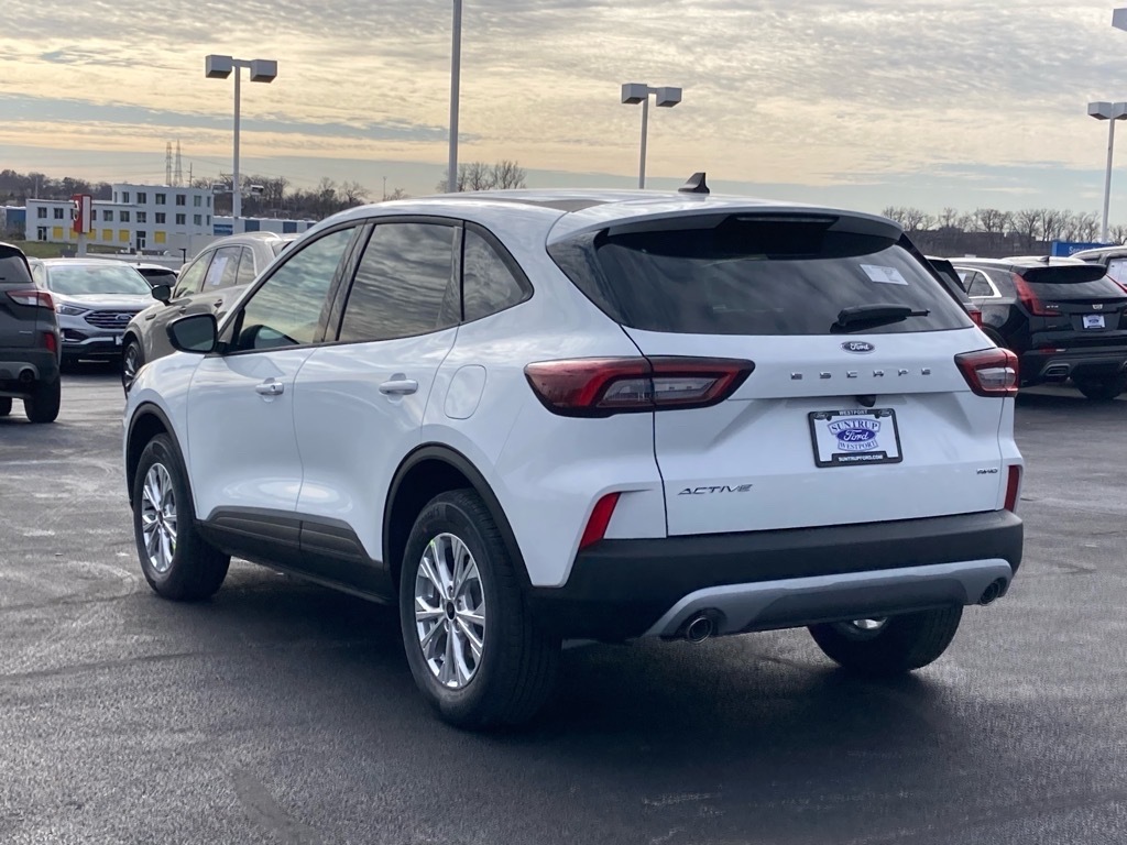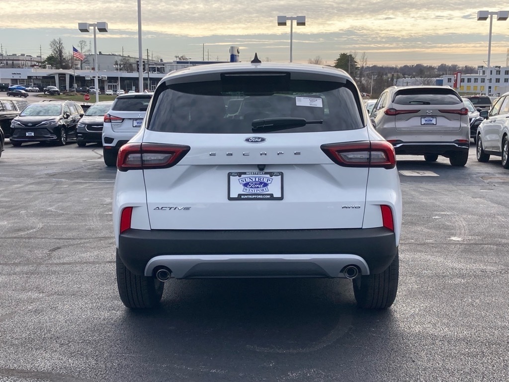 Suntrup Ford now offers Lifetime Powertrain Protection on all eligible New and Pre-Owned Vehicles. It's no secret that people are keeping their vehicles longer and driving them farther than ever before. Because we want you to be our customer for life, our Ford dealership in St. Louis, MO is proud to provide Lifetime Powertrain Protection on our vehicles at no additional cost. We want you to have the peace of mind that comes from knowing you are covered for the cost of critical mechanical breakdowns. See dealer for details. $8,481 off MSRP! 2025 Ford Escape Active AWD, 3.81 Axle Ratio, 4-Wheel Disc Brakes, 6 Speakers, ABS brakes, Air Conditioning, Alloy wheels, AM/FM radio: SiriusXM, AM/FM Stereo, Auto High-beam Headlights, Automatic temperature control, Brake assist, Bumpers: body-color, Cold Weather Package, Compass, Delay-off headlights, Driver door bin, Driver vanity mirror, Dual front impact airbags, Dual front side impact airbags, Electronic Stability Control, Emergency communication system: SYNC 4 911 Assist, Equipment Group 200A, FordPass Connect, Four wheel independent suspension, Front anti-roll bar, Front Bucket Seats, Front Center Armrest, Front dual zone A/C, Front License Plate Bracket, Front reading lights, Fully automatic headlights, Heated Front Row Seats, Heated Sideview Mirrors, Heated Steering Wheel, Illuminated entry, Knee airbag, Low tire pressure warning, Occupant sensing airbag, Outside temperature display, Overhead airbag, Overhead console, Panic alarm, Passenger door bin, Passenger vanity mirror, Power door mirrors, Power steering, Power windows, Radio data system, Rear anti-roll bar, Rear reading lights, Rear seat center armrest, Rear window defroster, Rear window wiper, Remote keyless entry, Remote Starter System, Speed control, Speed-sensing steering, Speed-Sensitive Wipers, Split folding rear seat, Spoiler, Steering wheel mounted audio controls, SYNC 4, Tachometer, Telescoping steering wheel, Tilt steering wheel, Traction control, Trip c