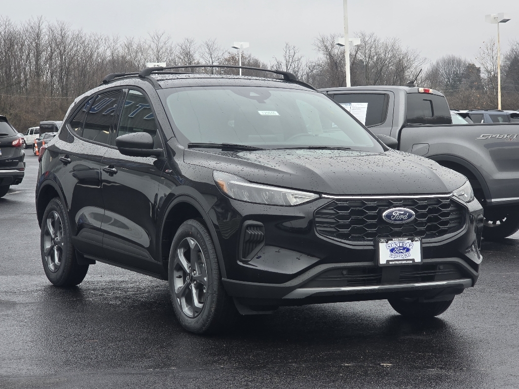 Suntrup Ford now offers Lifetime Powertrain Protection on all eligible New and Pre-Owned Vehicles. It's no secret that people are keeping their vehicles longer and driving them farther than ever before. Because we want you to be our customer for life, our Ford dealership in St. Louis, MO is proud to provide Lifetime Powertrain Protection on our vehicles at no additional cost. We want you to have the peace of mind that comes from knowing you are covered for the cost of critical mechanical breakdowns. See dealer for details. $8,426 off MSRP! 2025 Ford Escape ST-Line AWD, 3.81 Axle Ratio, 4-Wheel Disc Brakes, 6 Speakers, ABS brakes, Air Conditioning, Alloy wheels, AM/FM radio: SiriusXM, AM/FM Stereo, Auto High-beam Headlights, Automatic temperature control, Brake assist, Bumpers: body-color, Compass, Delay-off headlights, Driver door bin, Driver vanity mirror, Dual front impact airbags, Dual front side impact airbags, Electronic Stability Control, Emergency communication system: SYNC 4 911 Assist, FordPass Connect, Four wheel independent suspension, Front anti-roll bar, Front Bucket Seats, Front Center Armrest, Front dual zone A/C, Front reading lights, Fully automatic headlights, Illuminated entry, Knee airbag, Low tire pressure warning, Occupant sensing airbag, Outside temperature display, Overhead airbag, Overhead console, Panic alarm, Passenger door bin, Passenger vanity mirror, Power door mirrors, Power driver seat, Power steering, Power windows, Radio data system, Rear anti-roll bar, Rear reading lights, Rear seat center armrest, Rear window defroster, Rear window wiper, Remote keyless entry, Speed control, Speed-sensing steering, Speed-Sensitive Wipers, Split folding rear seat, Spoiler, Sport steering wheel, Steering wheel mounted audio controls, SYNC 4, Tachometer, Telescoping steering wheel, Tilt steering wheel, Traction control, Trip computer, Variably intermittent wipers, Vinyl/Cloth Front Sport Contour Bucket Seats, Wheels: 18 Rock Metallic Painted Aluminum