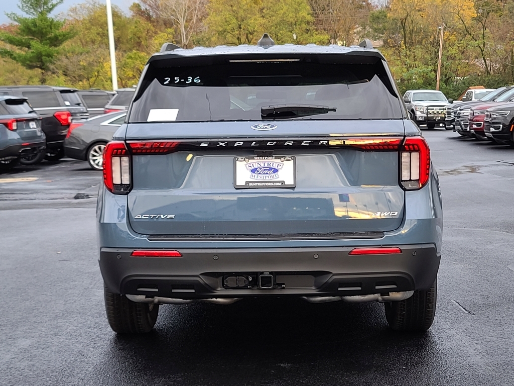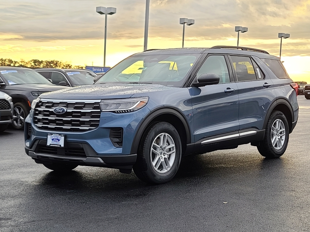Suntrup Ford now offers Lifetime Powertrain Protection on all eligible New and Pre-Owned Vehicles. It's no secret that people are keeping their vehicles longer and driving them farther than ever before. Because we want you to be our customer for life, our Ford dealership in St. Louis, MO is proud to provide Lifetime Powertrain Protection on our vehicles at no additional cost. We want you to have the peace of mind that comes from knowing you are covered for the cost of critical mechanical breakdowns. See dealer for details. $7,581 off MSRP! 2025 Ford Explorer Active 4WD, 3rd Rw All-Wthr Flr Liners w/2nd Rw Bench Seats, Front & 2nd Rows Floor Liners w/o Carpet Floor Mats, Roof-Rail Crossbars, 3.58 Non-Limited Slip Rear Axle, 3rd row seats: bench, 4-Wheel Disc Brakes, 6 Speakers, ABS brakes, Air Conditioning, Alloy wheels, AM/FM Stereo, Apple CarPlay/Android Auto, Auto High-beam Headlights, Automatic temperature control, Brake assist, Bumpers: body-color, Compass, Delay-off headlights, Driver door bin, Driver vanity mirror, Dual front impact airbags, Dual front side impact airbags, Electronic Stability Control, Emergency communication system: 911 Assist, Exterior Parking Camera Rear, First Aid Kit, Four wheel independent suspension, Front anti-roll bar, Front Bucket Seats, Front Center Armrest, Front dual zone A/C, Front License Plate Bracket, Front reading lights, Fully automatic headlights, Heated door mirrors, Heated front seats, Illuminated entry, Knee airbag, Leather steering wheel, Low tire pressure warning, Occupant sensing airbag, Outside temperature display, Overhead airbag, Overhead console, Panic alarm, Passenger door bin, Passenger vanity mirror, Power door mirrors, Power driver seat, Power Liftgate, Power passenger seat, Power steering, Power windows, Rear air conditioning, Rear anti-roll bar, Rear reading lights, Rear window defroster, Rear window wiper, Remote keyless entry, Security system, Speed control, Speed-sensing steering, Speed-Sensitive Wipers,