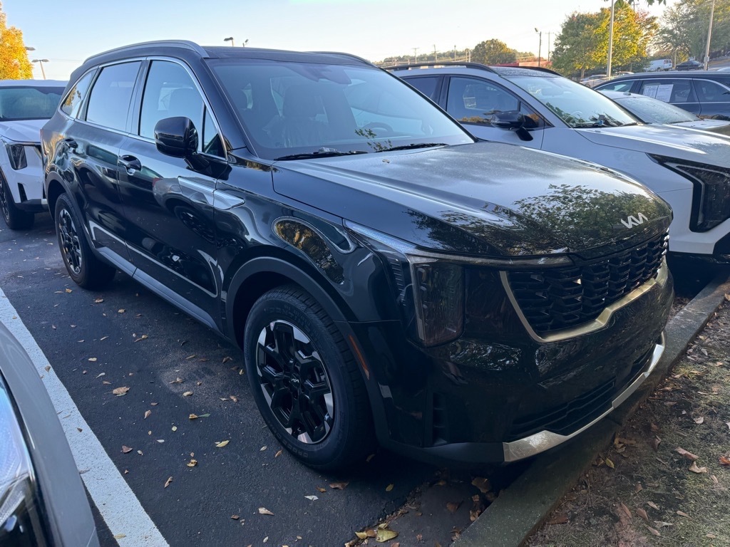 2026 Kia Sorento S Ebony Black 3rd row seats: split-bench, 4-Wheel Disc Brakes, 6 Speakers, ABS brakes, Air Conditioning, Alloy wheels, AM/FM radio: SiriusXM, Apple CarPlay & Android Auto, Auto High-beam Headlights, Automatic temperature control, Brake assist, Bumpers: body-color, Cargo Cover, Carpeted Floor Mats, Delay-off headlights, Driver door bin, Driver vanity mirror, Dual front impact airbags, Dual front side impact airbags, Electronic Stability Control, Emergency communication system: 911 Connect, Exterior Parking Camera Rear, Four wheel independent suspension, Front anti-roll bar, Front Bucket Seats, Front Center Armrest, Front dual zone A/C, Front reading lights, Full-Length One-Touch Panoroof w/Sliding Sunshade, Fully automatic headlights, Heated door mirrors, Heated Front Bucket Seats, Heated front seats, Illuminated entry, Knee airbag, Leather Shift Knob, Leather steering wheel, LED Interior Lighting, Low tire pressure warning, Occupant sensing airbag, Outside temperature display, Overhead airbag, Overhead console, Panic alarm, Passenger door bin, Passenger vanity mirror, Power door mirrors, Power driver seat, Power steering, Power windows, Radio data system, Radio: AM/FM Standard Sound System, Rear anti-roll bar, Rear reading lights, Rear seat center armrest, Rear side impact airbag, Rear window defroster, Rear window wiper, Remote keyless entry, S Panoramic Sunroof Package, Security system, Speed control, Speed-sensing steering, Split folding rear seat, Spoiler, Steering wheel mounted audio controls, SynTex Artificial Leather Seat Trim, Tachometer, Telescoping steering wheel, Tilt steering wheel, Traction control, Trip computer, Turn signal indicator mirrors, Variably intermittent wipers, Wheels: 18Gloss Black Alloy. 4D Sport Utility FWD 8-Speed Automatic 2.5L I4 DGI DOHC 16V LEV3-SULEV30 191hp 23/31 City/Highway MPG 23/31 City/Highway MPG Thank you for checking out our website at www.KiaOfGreer.com where we help you find the best vehicle that meets