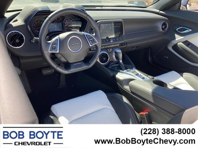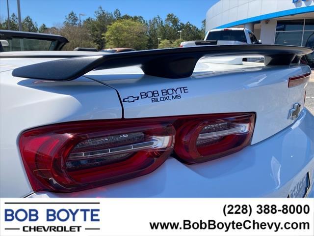 2023 Chevrolet Camaro Summit White 2LT 2D Convertible 3.6L V6 DI RWD 10-Speed Automatic Clean CARFAX. CARFAX One-Owner. Bring Us All Offers On This Vehicle, Financing is available for everyone, Never A Rental, Local Trade, This vehicles oil change history, as reported to CARFAX, follows the manufacturers recommendation, Chevrolet Dealer Serving Gulfport-Biloxi, 6-Way Power Front Passenger Seat Adjuster, 8-Way Power Driver Seat Adjuster, Alloy wheels, Apple CarPlay/Android Auto, Automatic temperature control, Bluetooth� For Phone, Bose Premium 7-Speaker Audio System Feature, Ceramic White Interior Package, Convertible roof lining, Electronic Stability Control, Exterior Parking Camera Rear, Front dual zone A/C, Fully automatic headlights, Glass rear window, Heated Driver & Front Passenger Seats, Illuminated entry, Leather-Trimmed Seat Trim, Panic alarm, Power convertible roof, Power driver seat, Power passenger seat, Radio: Chevrolet Infotainment 3 Plus System, Remote keyless entry, Remote Vehicle Starter System, Satin Black Appearance Package, Security system, SiriusXM w/360L, Speed control, Spoiler, Steering wheel mounted audio controls, Ventilated Driver & Front Passenger Seats. This vehicle has been through an extensive multi-point inspection by an ASE Certified Technician. All necessary services have been done for the appropriate mileage interval as deemed necessary. We have also reconditioned this vehicle inside and out to provide you with as near a new car experience as can be expected from a vehicle of this year and mileage. Buy with confidence. Our Auto Finance Center Staff works with all credit types from good to bad, including High Risk Credit, Low Credit and even No Credit. Family-owned and locally operated. Get Pre-Approved at: https://www.bobboytechevy.com/get-pre-approved.html Free Vehicle History report. Large Metro Gulfport-Biloxi MS Used Car Super Store serving residents of Gulfport, D�Iberville, Ocean Springs, St Martin, Gulf Hills, Gautier, Pascago