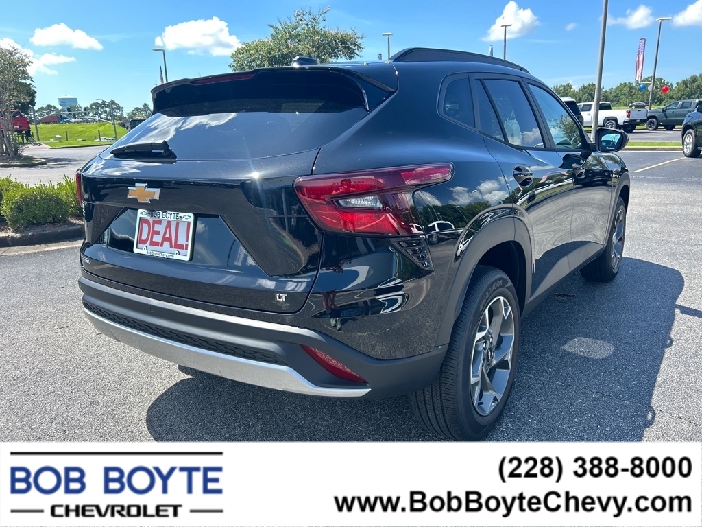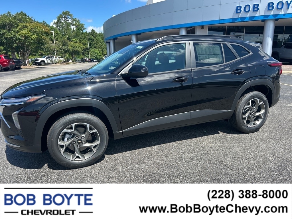2025 Chevrolet Trax Mosaic Black Metallic LT 1.2L Ecotec Turbo DOHC DI w/VVT 6-Speed Automatic FWD 4D Sport Utility Bring Us All Offers On This Vehicle, Financing is available for everyone, Chevrolet Dealer Serving Gulfport-Biloxi, 2-Way Adjustable Front Head Restraints, 4-Way Manual Front Passenger Seat Adjuster, 6-Speaker Audio System Feature, 6-Way Manual Driver Seat Adjuster, Adaptive Cruise Control, Air Conditioning, Alloy wheels, AM/FM radio: SiriusXM, Auto High-beam Headlights, Automatic temperature control, Brake assist, Cloth/Evotex Seat Trim, Delay-off headlights, Driver Confidence Package, Electronic Stability Control, Exterior Parking Camera Rear, Front & Rear All-Weather Floor Liners (LPO), Front Bucket Seats, Front Doors Keyless Open, Fully automatic headlights, Heated Driver & Front Passenger Seats, Heated Power-Adjustable Outside Mirrors, Heated Steering Wheel, Illuminated entry, Lane Change Alert w/Side Blind Zone Alert, LT Convenience Package, Occupant sensing airbag, Overhead airbag, Overhead console, Panic alarm, Power steering, Power windows, Preferred Equipment Group 1LT, Premium audio system: Chevrolet Infotainment 3, Radio data system, Radio: AM/FM Stereo Audio System, Rear Cross-Traffic Alert, Rear Park Assist, Rear window defroster, Rear window wiper, Remote keyless entry, Security system, SiriusXM Trial Subscription, Speed control, Spoiler, Steering wheel mounted audio controls, Traction control, Variably intermittent wipers, Wheels: 17Gray-Painted Machined Aluminum, Wrapped Steering Wheel. 28/32 City/Highway MPG Buying from Bob Boyte Chevrolet can save you up to $2500 in hidden fees and dealer adds. Bob Boyte Chevrolet is a large Metro Gulfport-Biloxi MS New Car Super Store serving residents of Gulfport, DIberville, Ocean Springs, St Martin, Gulf Hills, Gautier, Pascagoula, Long Beach, Kiln, Bay St Louis, Waveland, Diamondhead and the Mississippi Gulf Coast. Bob Boyte also serves Gulf Coast Residents in Grand Bay, Bayou La Batre, Theodor
