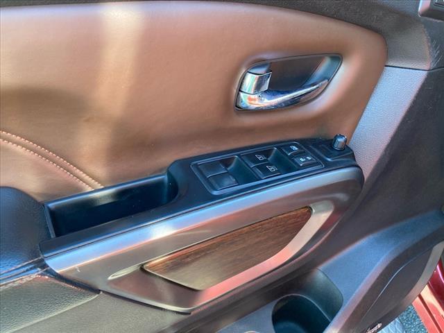 Dual front airbags, front seat mounted side-impact airbags, dual front/rear head curtain airbags with rollover sensor, four-wheel disc brakes with anti-lock, brake assist, electronic brake force distribution, traction control, vehicle dynamic control, high-strength steel side door guard beams, vehicle security system, engine immobilizer, Bluetooth hands free phone system, NissanConnect, remote keyless entry, full-size spare tire, and tire pressure monitoring system. SV adds trailer sway control. PRO-4X adds automatic headlights, daytime running lights, fog lights, navigation system, rain-sensing windshield wipers, RearView Monitor, blind spot warning, and rear cross traffic alert. SL adds remote engine start, HomeLink universal transceiver, and front/rear sonar systems. Platinum Reserve adds trailer brake controller, and Around View Monitor.