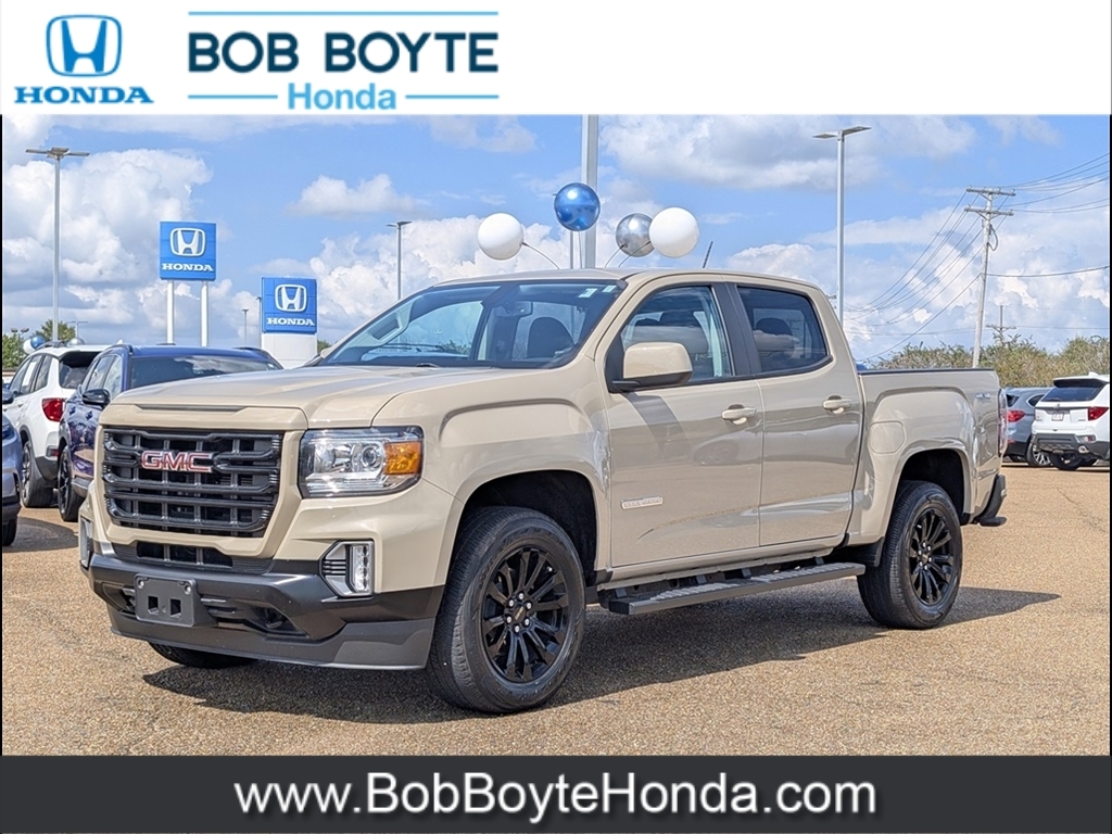 2022 GMC Canyon Desert Sand Metallic Elevation 4D Crew Cab V6 4WD 8-Speed Automatic Never A Rental, Local Trade, Used Car Dealer Near Jackson MS, Financing Is Available For Everyone, 5Rectangular Black Assist Steps (LPO) (DISC), 6-Speaker Audio System Feature, Alloy wheels, Apple CarPlay/Android Auto, Automatic temperature control, Black Spray-On Bedliner w/GMC Logo, Cloth Seat Trim, Driver 6-Way Power Seat Adjuster, Electronic Stability Control, Emergency communication system: OnStar and GMC Connected Services capable, Exterior Parking Camera Rear, Fully automatic headlights, Hitch Guidance, Illuminated entry, Panic alarm, Preferred Equipment Group 4LE, Radio: AM/FM w/8Diagonal Color Touch-Screen, Remote keyless entry, Security system, SiriusXM Radio, Speed control, Steering wheel mounted audio controls, Tow/Haul Mode, Trailering Package. This vehicle has been through an extensive multi-point inspection by an ASE Certified Technician. All necessary services have been done for the appropriate mileage interval as deemed necessary. We have also reconditioned this vehicle inside and out to provide you with as near a new car experience as can be expected from a vehicle of this year and mileage. Buy with confidence. Family-owned & operated. Get Pre-Approved at https://www.bobboytehonda.com/get-pre-qualified.html Free Vehicle History report. Large Metro Jackson MS Used Car Super Store serving residents of Brandon, Ridgeland, Canton, Crystal Springs Yazoo City, Vicksburg, Forest, Carthage, Philadelphia, Newton, Meridian, Laurel, Hattiesburg, McComb, Wesson, Brookhaven, Mendenhall, Magee and all of Central Mississippi. Call Bob Boyte Honda today at 601-591-5000. Clean CARFAX. Odometer is 23028 miles below market average!