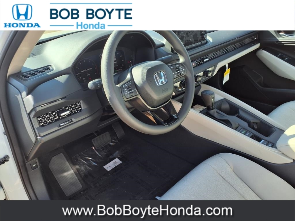 2025 Honda Accord SE Platinum White Pearl FWD 1.5T I4 DOHC 16V Turbocharged VTEC CVT Bring Us All Offers On This Vehicle, Honda Dealer Serving Jackson MS, Financing Is Available For Everyone, Gray Cloth, 8 Speakers, Adaptive Cruise Control: Adaptive Cruise Control (ACC) with Low-Speed Follow, Alloy wheels, AM/FM radio, Apple CarPlay/Android Auto, Auto High-beam Headlights, Automatic temperature control, Blind Spot Information (BSI) System warning, Delay-off headlights, Electronic Stability Control, Exterior Parking Camera Rear, Fabric Seat Trim, Four wheel independent suspension, Front Bucket Seats, Front dual zone A/C, Fully automatic headlights, Heated Front Bucket Seats, Heated front seats, Illuminated entry, Lane departure: Lane Keeping Assist System (LKAS) active, Occupant sensing airbag, Overhead airbag, Panic alarm, Power driver seat, Power moonroof, Power steering, Power windows, Radio data system, Radio: 180-Watt Audio System, Remote keyless entry, Security system, Speed control, Speed-sensing steering, Speed-Sensitive Wipers, Steering wheel mounted audio controls, Traction control, Variably intermittent wipers, Wheels: 17x 7.5J Berlina Black. 29/37 City/Highway MPG Get our lowest available price on any new Honda in stock now by completing this request: https://www.bobboytehonda.com/honda-auto-price-request.htm Our Honda Auto Finance Staff works with all credit types, including bad credit and no credit. Get Pre-Approved for an Auto Loan in minutes now: https://www.bobboytehonda.com/financing/get-pre-approved.htm Let us show you why we have so many people driving around Jackson, Ridgeland, Madison, Pearl, Flowood, Florence, Clinton, Yazoo City, Canton, Newton and Vicksburg MS in a new Honda car, truck, SUV or van they bought at our Brandon, Mississippi Honda Dealership. Get our lowest available price on any new Honda in stock now by completing this request: https://www.bobboytehonda.com/honda-auto-price-request.htm Our Honda Auto Finance Staff works with all
