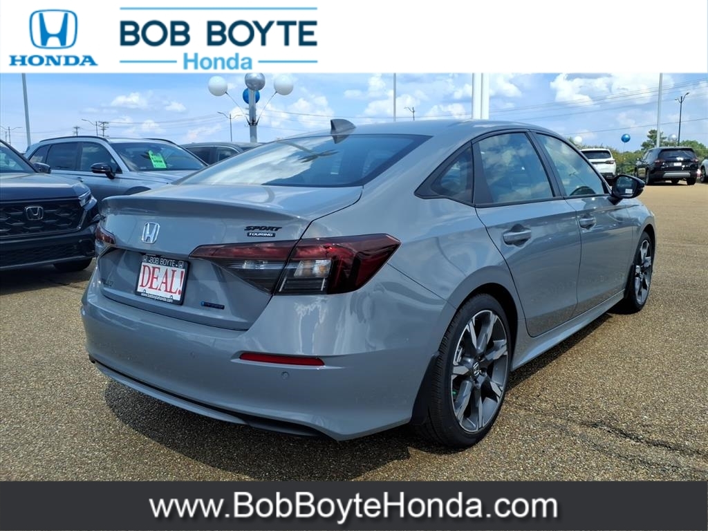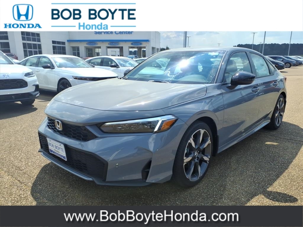 2026 Honda Civic Hybrid Sport Touring Urban Gray Pearl FWD 2.0L 16V DOHC eCVT Bring Us All Offers On This Vehicle, Honda Dealer Serving Jackson MS, Financing Is Available For Everyone, 2.0L 16V DOHC, 12 Speakers, Adaptive Cruise Control: Adaptive Cruise Control (ACC) with Low-Speed Follow, Alloy wheels, AM/FM radio, Apple CarPlay/Android Auto, Auto High-beam Headlights, Automatic temperature control, Blind Spot Information (BSI) System warning, Bose Premium Sound System, Brake assist, Delay-off headlights, Dual front impact airbags, Dual front side impact airbags, Electronic Stability Control, Emergency communication system: HondaLink, Exterior Parking Camera Rear, Four wheel independent suspension, Front Bucket Seats, Front dual zone A/C, Fully automatic headlights, Heated Front Bucket Seats, Heated front seats, Illuminated entry, Knee airbag, Leather Shift Knob, Leather steering wheel, Leather-Trimmed Seat Trim, Navigation system: Google Maps, Occupant sensing airbag, Overhead airbag, Panic alarm, Power driver seat, Power moonroof, Power passenger seat, Power steering, Power windows, Radio data system, Rain sensing wipers, Rear side impact airbag, Security system, Speed control, Speed-sensing steering, Traction control, Variably intermittent wipers, Wheels: 18Alloy w/Matte Shark Gray Inserts. 50/47 City/Highway MPG Get our lowest available price on any new Honda in stock now by completing this request: https://www.bobboytehonda.com/honda-auto-price-request.htm Our Honda Auto Finance Staff works with all credit types, including bad credit and no credit. Get Pre-Approved for an Auto Loan in minutes now: https://www.bobboytehonda.com/financing/get-pre-approved.htm Let us show you why we have so many people driving around Jackson, Ridgeland, Madison, Pearl, Flowood, Florence, Clinton, Yazoo City, Canton, Newton and Vicksburg MS in a new Honda car, truck, SUV or van they bought at our Brandon, Mississippi Honda Dealership. Get our lowest available price on any new Hond