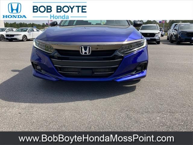 Dual front airbags, front seat-mounted side impact airbags, dual front/rear side curtain airbags with rollover sensor, dual front seat knee airbags, four-wheel disc brakes with anti-lock, brake assist, electronic brake distribution, hill start assist, engine immobilizer, rear-view camera, LED daytime running lights, automatic LED headlights, collision mitigation braking system, road departure mitigation system, forward collision warning, lane departure warning, lane keeping assist system, adaptive cruise control, traffic sign recognition system, automatic high-beam headlights, security system, push-button engine start, Bluetooth hands-free phone system, and tire pressure monitoring system. Sport adds LED fog lights and HondaLink.
