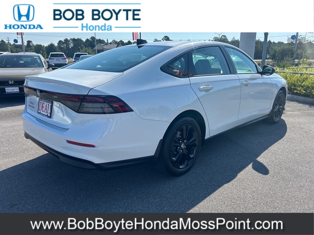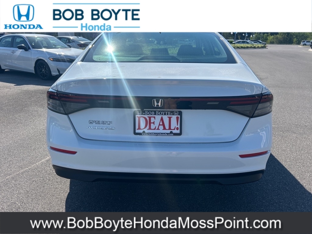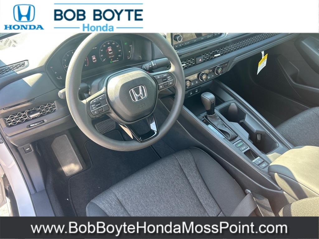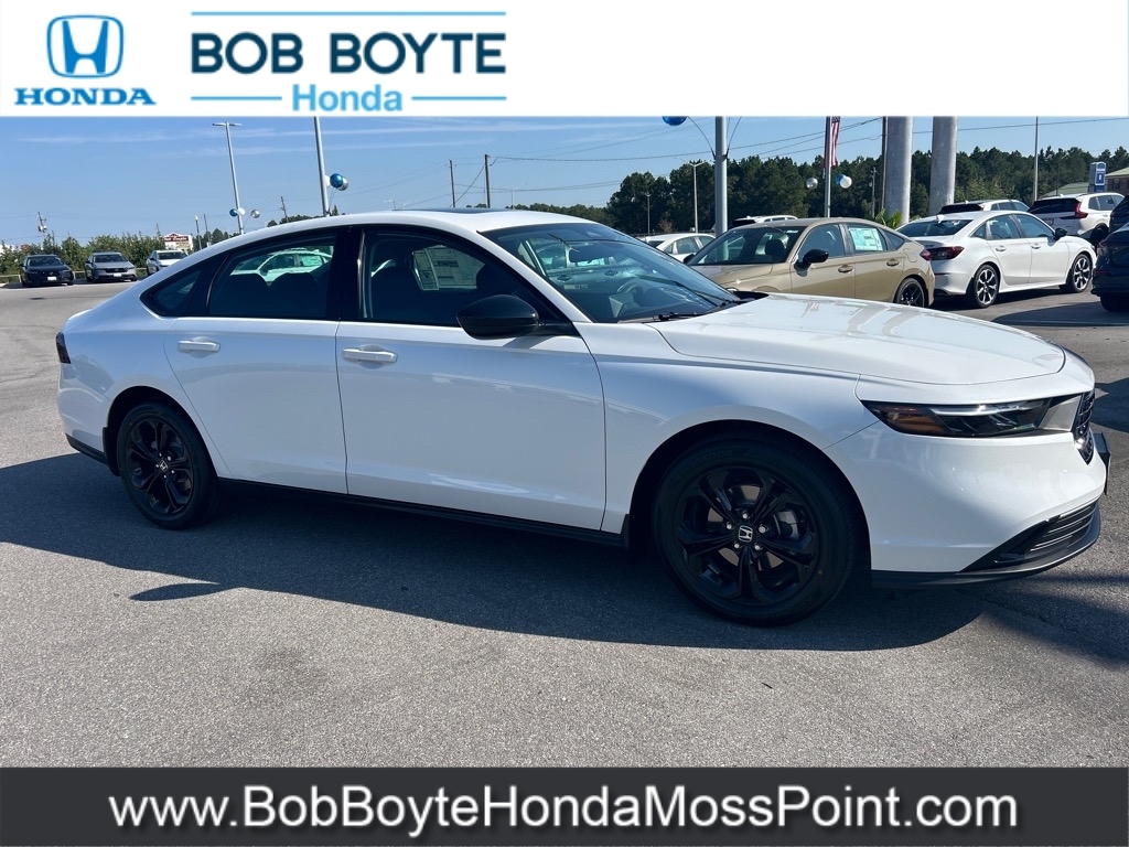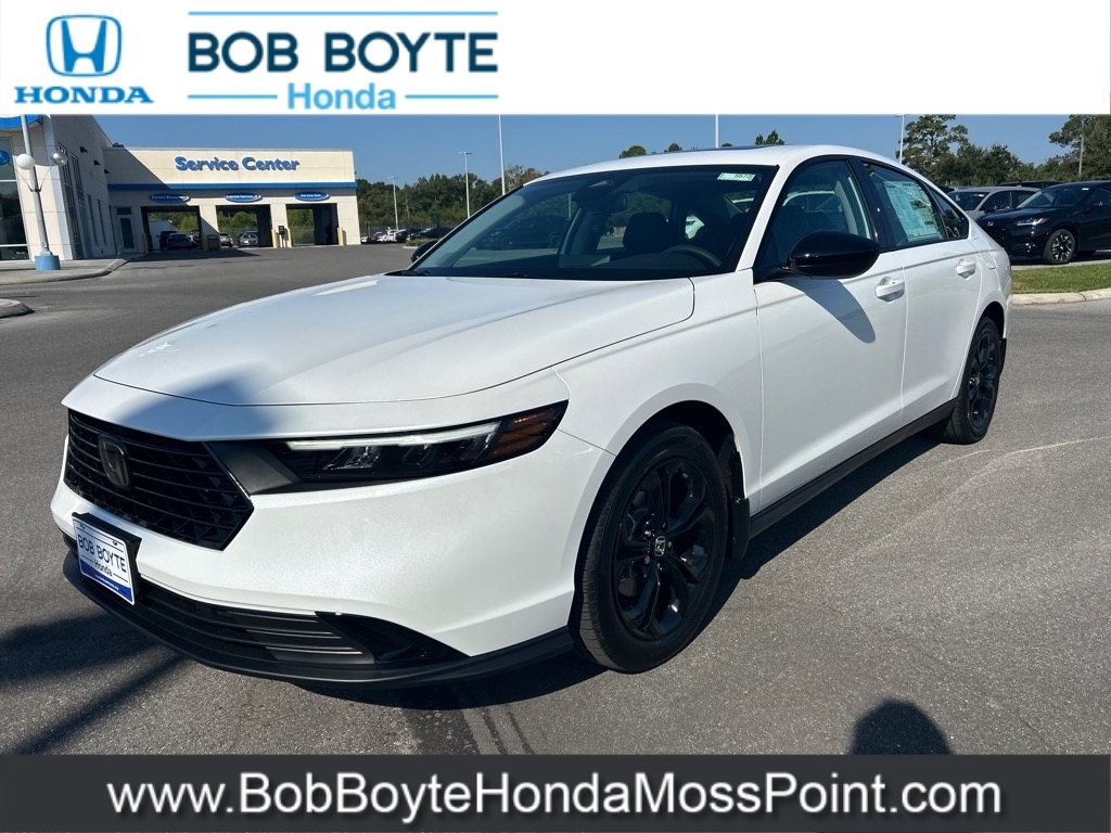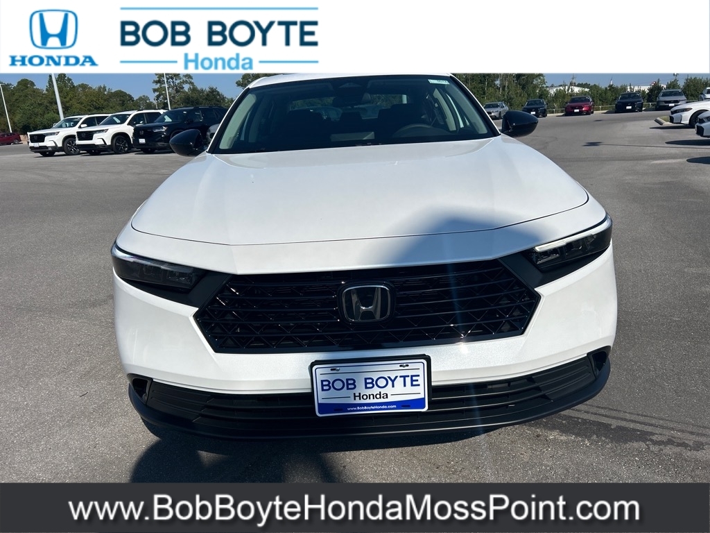 2025 Honda Accord SE Platinum White Pearl FWD 1.5T I4 DOHC 16V Turbocharged VTEC CVT Bring Us All Offers On This Vehicle, New Honda Dealer Serving Gulfport-Biloxi, Black w/Fabric Seat Trim. Bob Boyte Honda Moss Point is a brand new Gulf Coast Honda Dealership serving residents of Biloxi, Gulfport, DIberville, Pascagoula, MS and Mobile, AL. Get a custom no obligation Internet price quote on this vehicle in minutes here: https://www.bobboytehondamosspoint.com/quickquote/index.htm We sell new Honda cars, SUVs, vans and trucks at low prices our Mississippi Gulf Coast customers can afford. Our Honda Auto Finance Staff works with all credit types from good to bad to try to get approved financing. They believe they can get an approval for everyone! Get Pre-Approved in minutes here: https://www.bobboytehondamosspoint.com/get-pre-qualified.html Call Bob Boyte Honda Moss Point today at 228-202-0200 for immediate help. 29/37 City/Highway MPG