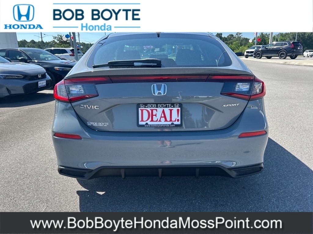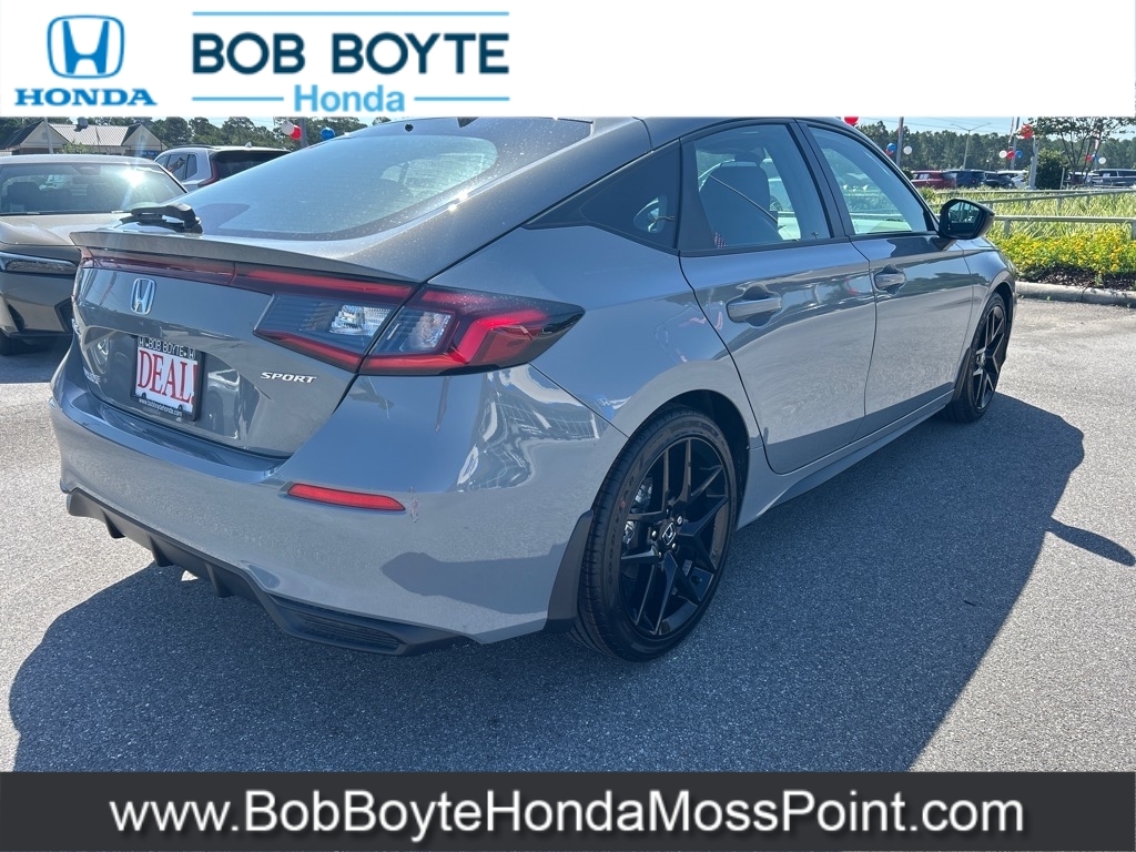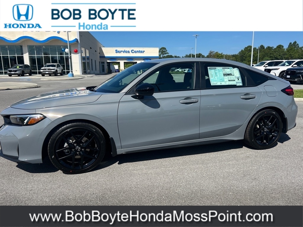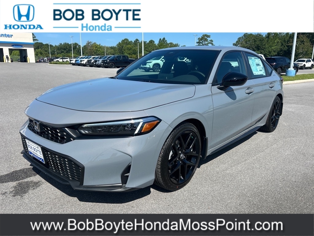 2025 Honda Civic Sport Urban Gray Pearl FWD 2.0L I4 DOHC 16V CVT Bring Us All Offers On This Vehicle, New Honda Dealer Serving Gulfport-Biloxi, Alloy Wheels, Black w/Cloth/Leatherette Seating Surfaces, 8 Speakers, Adaptive Cruise Control: Adaptive Cruise Control (ACC) with Low-Speed Follow, Alloy wheels, AM/FM radio, Apple CarPlay/Android Auto, Auto High-beam Headlights, Automatic temperature control, Blind Spot Information (BSI) System warning, Brake assist, Cloth/Leatherette Seating Surfaces, Delay-off headlights, Electronic Stability Control, Exterior Parking Camera Rear, Front Bucket Seats, Fully automatic headlights, Illuminated entry, Lane departure: Lane Keeping Assist System (LKAS) active, Leather Shift Knob, Occupant sensing airbag, Overhead airbag, Panic alarm, Power steering, Power windows, Radio data system, Radio: 180-Watt Audio System, Rear window wiper, Remote keyless entry, Security system, Speed control, Speed-sensing steering, Steering wheel mounted audio controls, Traction control, Wheels: 18Gloss Black Alloy. Bob Boyte Honda Moss Point is a brand new Gulf Coast Honda Dealership serving residents of Biloxi, Gulfport, DIberville, Pascagoula, MS and Mobile, AL. Get a custom no obligation Internet price quote on this vehicle in minutes here: https://www.bobboytehondamosspoint.com/quickquote/index.htm We sell new Honda cars, SUVs, vans and trucks at low prices our Mississippi Gulf Coast customers can afford. Our Honda Auto Finance Staff works with all credit types from good to bad to try to get approved financing. They believe they can get an approval for everyone! Get Pre-Approved in minutes here: https://www.bobboytehondamosspoint.com/get-pre-qualified.html Call Bob Boyte Honda Moss Point today at 228-202-0200 for immediate help. 30/38 City/Highway MPG