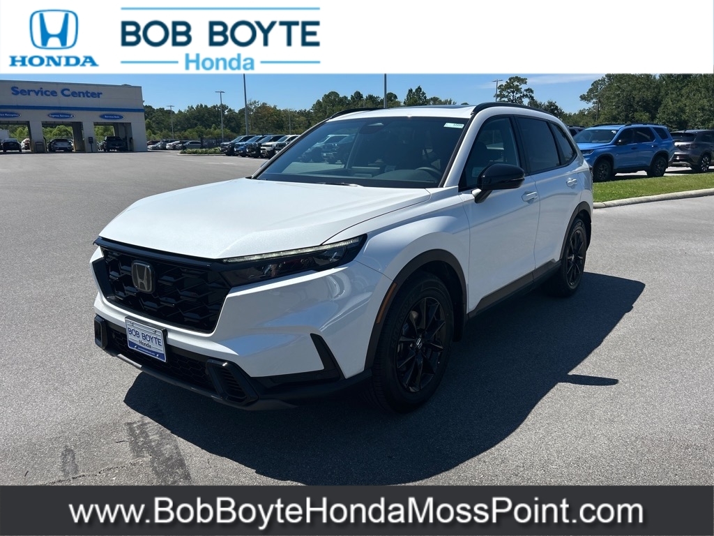 2026 Honda CR-V Hybrid Sport-L Platinum White Pearl FWD 2.0L I4 DOHC 16V eCVT Bring Us All Offers On This Vehicle, 2.0L I4 DOHC 16V, 8 Speakers, Adaptive Cruise Control: Adaptive Cruise Control (ACC) with Low-Speed Follow, Alloy wheels, Apple CarPlay/Android Auto, Auto High-beam Headlights, Automatic temperature control, Blind Spot Information (BSI) System warning, Brake assist, Delay-off headlights, Dual front impact airbags, Dual front side impact airbags, Electronic Stability Control, Exterior Parking Camera Rear, Four wheel independent suspension, Front Bucket Seats, Front dual zone A/C, Fully automatic headlights, Heated Front Bucket Seats, Heated front seats, Illuminated entry, Knee airbag, Leather Seat Trim, Leather Shift Knob, Leather steering wheel, Memory seat, Occupant sensing airbag, Overhead airbag, Panic alarm, Power driver seat, Power Liftgate, Power moonroof, Power passenger seat, Power steering, Power windows, Radio data system, Radio: 320-Watt AM/FM Audio System, Rear side impact airbag, Rear window wiper, Remote keyless entry, Security system, Speed control, Speed-sensing steering, Speed-Sensitive Wipers, Spoiler, Steering wheel mounted audio controls, Traction control, Variably intermittent wipers, Wheels: 18Berlina Black. Bob Boyte Honda Moss Point is a brand new Gulf Coast Honda Dealership serving residents of Biloxi, Gulfport, DIberville, Pascagoula, MS and Mobile, AL. Get a custom no obligation Internet price quote on this vehicle in minutes here: https://www.bobboytehondamosspoint.com/quickquote/index.htm We sell new Honda cars, SUVs, vans and trucks at low prices our Mississippi Gulf Coast customers can afford. Our Honda Auto Finance Staff works with all credit types from good to bad to try to get approved financing. They believe they can get an approval for everyone! Get Pre-Approved in minutes here: https://www.bobboytehondamosspoint.com/get-pre-qualified.html Call Bob Boyte Honda Moss Point today at 228-202-0200 for immediate help. 43/36