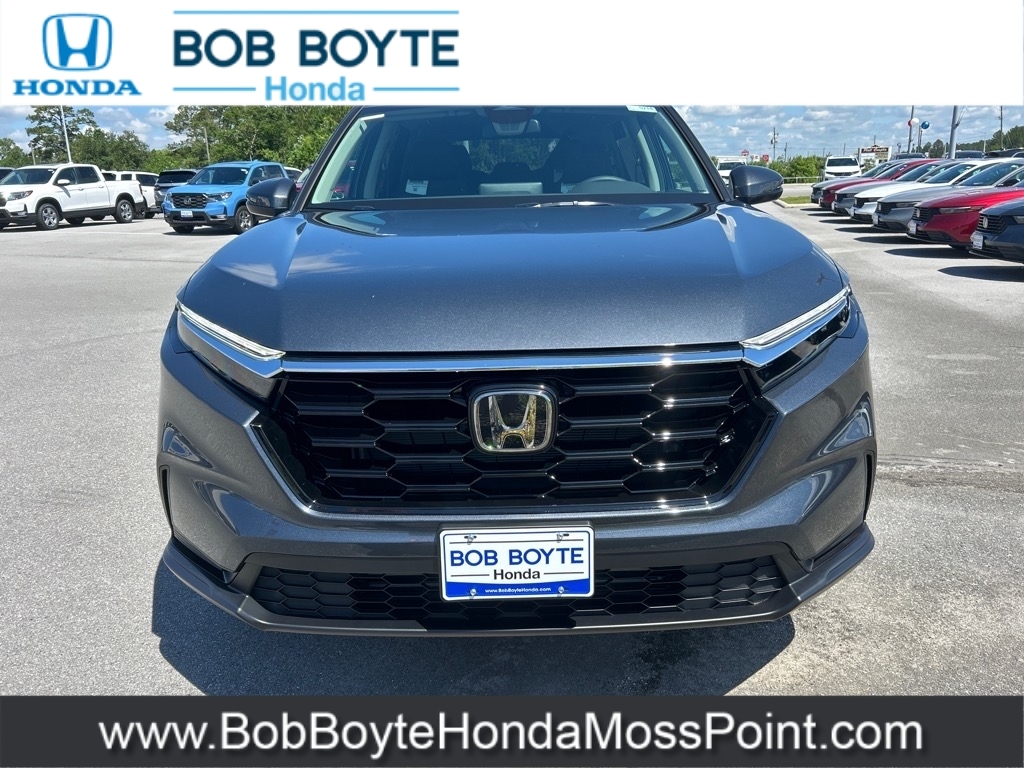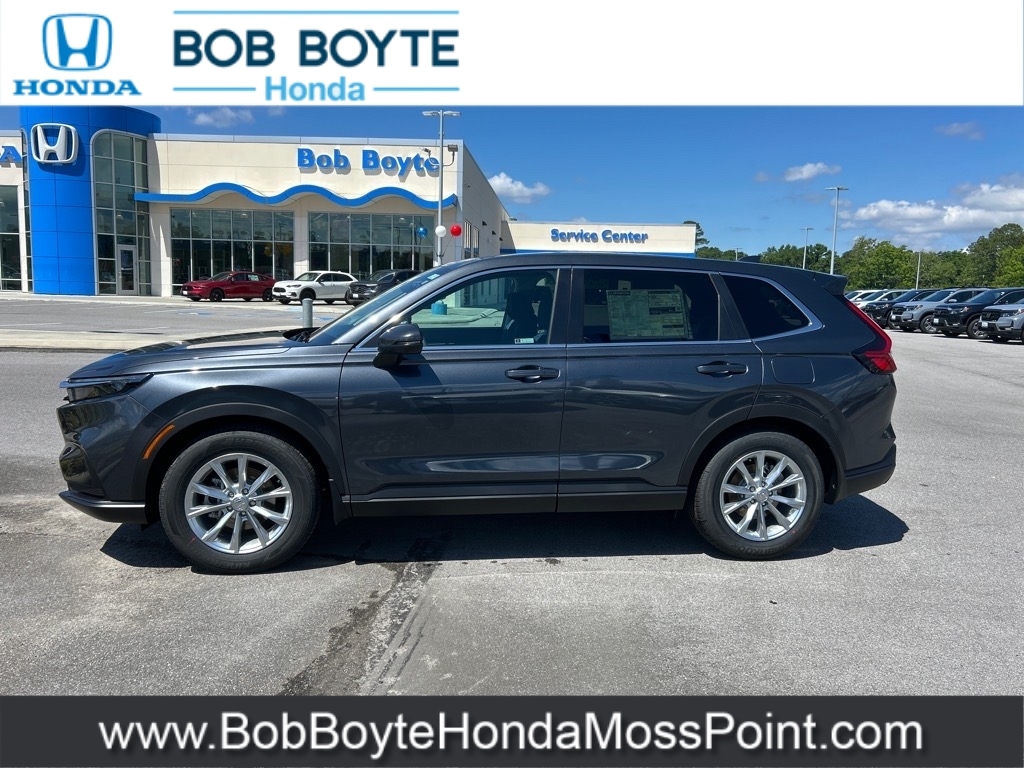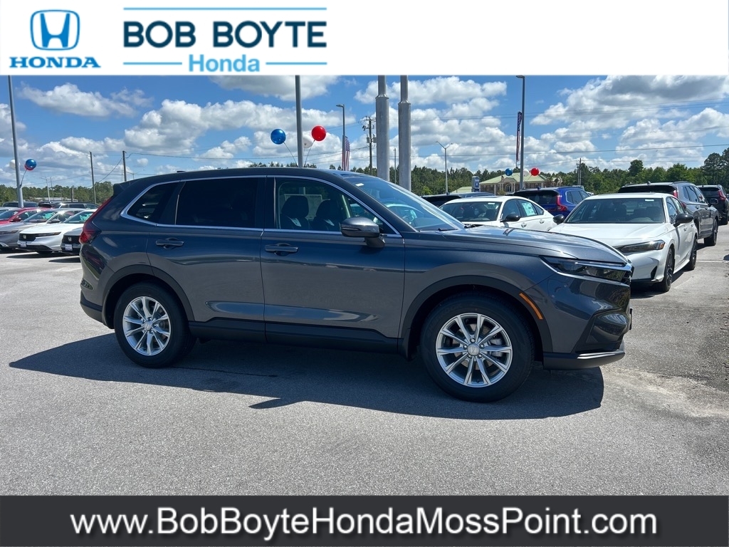 2025 Honda CR-V EX Meteorite Gray Metallic FWD 1.5L I4 DOHC 16V CVT Bring Us All Offers On This Vehicle, New Honda Dealer Serving Gulfport-Biloxi, 6 Speakers, Adaptive Cruise Control: Adaptive Cruise Control (ACC) with Low-Speed Follow, Alloy wheels, Apple CarPlay/Android Auto, Blind Spot Information (BSI) System warning, Brake assist, Electronic Stability Control, Exterior Parking Camera Rear, Illuminated entry, Panic alarm, Power moonroof, Radio data system, Radio: 240-Watt AM/FM Audio System, Security system, Speed control, Spoiler, Wheels: 18Sparkle Silver Metallic. Bob Boyte Honda Moss Point is a brand new Gulf Coast Honda Dealership serving residents of Biloxi, Gulfport, DIberville, Pascagoula, MS and Mobile, AL. Get a custom no obligation Internet price quote on this vehicle in minutes here: https://www.bobboytehondamosspoint.com/quickquote/index.htm We sell new Honda cars, SUVs, vans and trucks at low prices our Mississippi Gulf Coast customers can afford. Our Honda Auto Finance Staff works with all credit types from good to bad to try to get approved financing. They believe they can get an approval for everyone! Get Pre-Approved in minutes here: https://www.bobboytehondamosspoint.com/get-pre-qualified.html Call Bob Boyte Honda Moss Point today at 228-202-0200 for immediate help. 28/34 City/Highway MPG