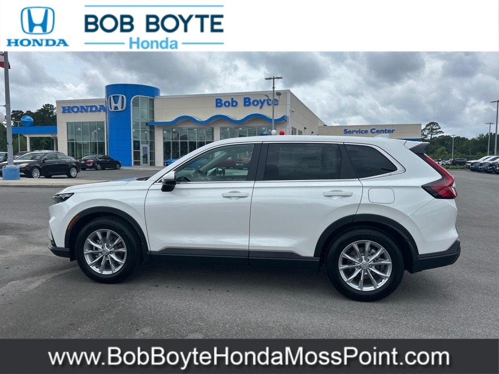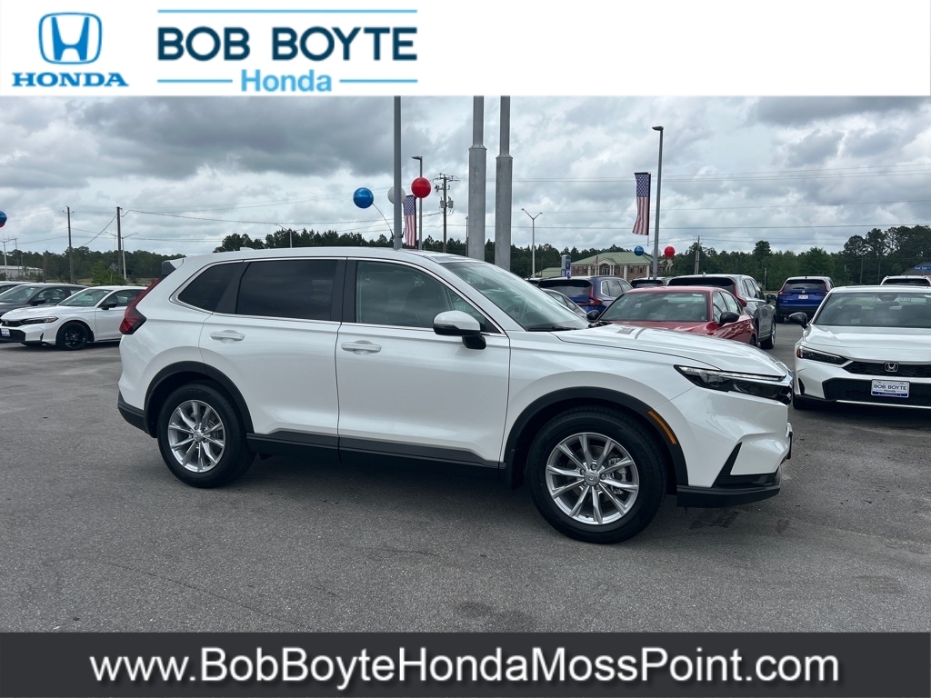 2025 Honda CR-V EX Platinum White Pearl FWD 1.5L I4 DOHC 16V CVT Bring Us All Offers On This Vehicle, New Honda Dealer Serving Gulfport-Biloxi, 6 Speakers, Adaptive Cruise Control: Adaptive Cruise Control (ACC) with Low-Speed Follow, Apple CarPlay/Android Auto, Auto High-beam Headlights, Blind Spot Information (BSI) System warning, Brake assist, Delay-off headlights, Electronic Stability Control, Exterior Parking Camera Rear, Fully automatic headlights, Illuminated entry, Panic alarm, Power moonroof, Radio data system, Radio: 240-Watt AM/FM Audio System, Security system, Speed control, Spoiler, Wheels: 18Sparkle Silver Metallic. Bob Boyte Honda Moss Point is a brand new Gulf Coast Honda Dealership serving residents of Biloxi, Gulfport, DIberville, Pascagoula, MS and Mobile, AL. Get a custom no obligation Internet price quote on this vehicle in minutes here: https://www.bobboytehondamosspoint.com/quickquote/index.htm We sell new Honda cars, SUVs, vans and trucks at low prices our Mississippi Gulf Coast customers can afford. Our Honda Auto Finance Staff works with all credit types from good to bad to try to get approved financing. They believe they can get an approval for everyone! Get Pre-Approved in minutes here: https://www.bobboytehondamosspoint.com/get-pre-qualified.html Call Bob Boyte Honda Moss Point today at 228-202-0200 for immediate help. 28/34 City/Highway MPG