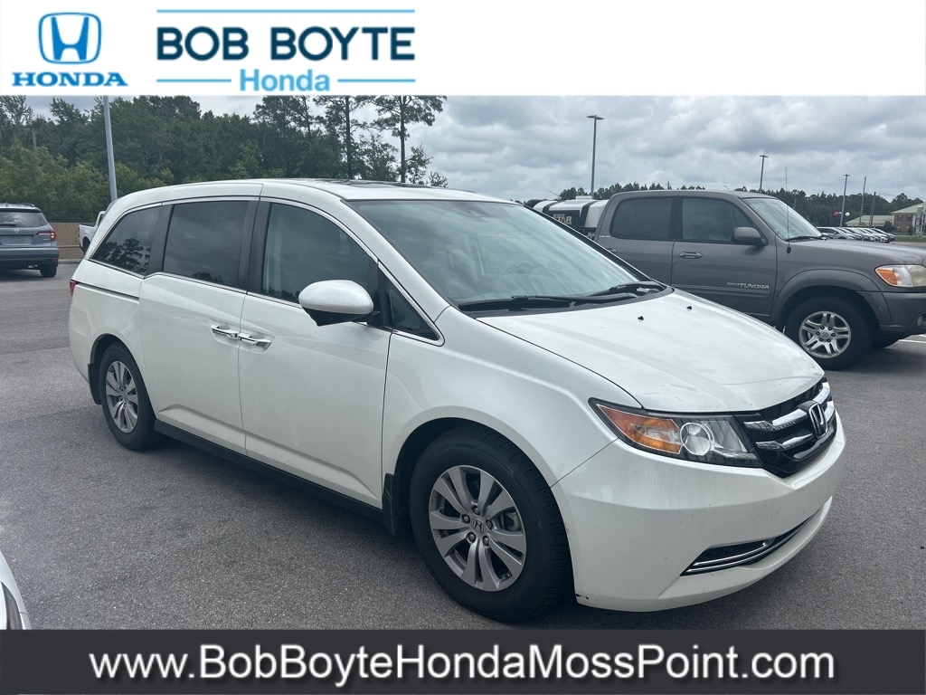 2016 Honda Odyssey EX-L White Diamond Pearl 4D Passenger Van FWD 3.5L V6 SOHC i-VTEC 24V 6-Speed Automatic CARFAX One-Owner. Clean CARFAX. New Honda Dealer Serving Gulfport-Biloxi, Never A Rental, Used Car Dealer Pascagoula MS, 3rd row seats: split-bench, 7 Speakers, Alloy wheels, AM/FM radio: SiriusXM, Automatic temperature control, Electronic Stability Control, Exterior Parking Camera Rear, Front dual zone A/C, Fully automatic headlights, Heated Front Bucket Seats, Illuminated entry, Leather Seat Trim, Leather steering wheel, Panic alarm, Power driver seat, Power Liftgate, Power moonroof, Power passenger seat, Rear air conditioning, Remote keyless entry, Security system, Speed control, Spoiler, Steering wheel mounted audio controls. This vehicle has been through an extensive multi-point inspection by an ASE Certified Technician. All necessary services have been done for the appropriate mileage interval as deemed necessary. We have also reconditioned this vehicle inside and out to provide you with as near a new car experience as can be expected from a vehicle of this year and mileage. Buy with confidence. Family-owned and locally operated. Get Pre-Approved at https://www.bobboytehondamosspoint.com/get-pre-qualified.html Free Vehicle History report. Large Mississippi Gulf Coast Used Car Super Store serving residents of Pascagoula, Biloxi, Gulfport, DIberville, MS, as well as Mobile, AL and the entire Gulf Coast. Call Bob Boyte Honda Moss Point today at 228-202-0200. Odometer is 52258 miles below market average! 19/28 City/Highway MPG Awards: * 2016 KBB.com Best Buy Awards Finalist * 2016 KBB.com Best Buy Awards * 2016 KBB.com 16 Best Family Cars * 2016 KBB.com Brand Image Awards Kelley Blue Book Brand Image Awards are based on the Brand Watch(tm) study from Kelley Blue Book Market Intelligence. Award calculated among non-luxury shoppers. For more information, visit www.kbb.com. Kelley Blue Book is a registered trademark of Kelley Blue Book Co., Inc. Reviews: *