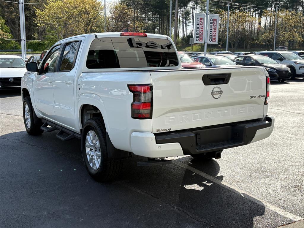 Discover the rugged and capable 2023 Nissan Frontier SV, a truck that's built to take on any adventure. With its powerful 3.8L V6 engine, 9-speed automatic transmission, and 4-wheel drive, this Frontier is ready to conquer the great outdoors.- FREE OIL CHANGES!- Back Up Camera- DROP-IN BED LINER & BUMPER STEP- OFF-ROAD STYLE STEP RAILS- TECHNOLOGY PACKAGE: Rear Sonar System, Rear Automatic Braking (RAB), High Beam Assist (HBA), Blind Spot Warning (BSW), Rear Cross Traffic Alert (RCTA), Intelligent Cruise Control (ICC), Lane Departure Warning (LDW)- TOW PACKAGE: Includes hitch, tow harness and tow switchThis Frontier SV is packed with impressive features that will elevate your driving experience. Enjoy the convenience of a power driver's seat, the safety of Intelligent Cruise Control, Blind Spot Warning, and Lane Departure Warning, as well as the connectivity of Apple CarPlay and Android Auto. With 17-inch alloy wheels and a sleek white exterior, this truck has the style to match its capability.The Nissan Frontier is renowned for its reliability and durability, and this certified pre-owned model is no exception. With a 167-point inspection, 84-month/100,000-mile limited warranty, and 24/7 roadside assistance, you can drive with confidence knowing your investment is protected.Don't settle for less. Experience the power, capability, and peace of mind of the 2023 Nissan Frontier SV. Visit our showroom today and let us help you find the perfect truck to conquer your next adventure.- 167 Point Inspection- Roadside Assistance- Warranty Deductible: $100- Transferable Warranty- Vehicle History- Limited Warranty: 84 Month/100,000 Mile (whichever occurs first)- 7 Year/100,000 Mile Limited Warranty, 24/7 Hour Roadside Assistance, Carfax Vehicle History Report, Plus 1 Year Pre-Paid Maintenance Included. Gas Powered Nissan Models Only.