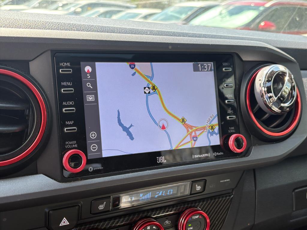 Discover the ultimate adventure-ready companion in the 2022 Toyota Tacoma TRD Sport V6. This rugged and versatile pickup is engineered to conquer any terrain, while delivering the comfort and technology you demand. - FREE OIL CHANGES!** - LED Fog Lamps with Black Bezel - TRD Premium Sport Package - Technology Package - Automatic Temperature Control - Front Dual-Zone A/C - 120V/400W Deck-Mounted AC Power - Power Drivers Seat - Remote Keyless Entry - Electronic Stability Control - Traction Control - Automatic Headlights - Front Fog Lights - Color-Keyed Overfenders - Heated Door Mirrors - Mesh Front Grille - Apple CarPlay/Android Auto - Auto-Dimming Rearview Mirror with HomeLink Beneath the bold exterior lies a heart of pure power. The 3.5L V6 engine delivers 278 horsepower, seamlessly paired with a 6-speed automatic transmission and 4-wheel drive for exceptional performance and capability. With an EPA-estimated 18 MPG in the city and 22 MPG on the highway, youll conquer the open road with confidence. The TRD Sports premium features elevate every journey. Sink into the heated leather-trimmed seats and enjoy the panoramic power moonroof. Stay connected with the Entune Premium JBL audio system, complete with navigation, SiriusXM satellite radio, and a backup camera. Advanced safety technologies, including Blind Spot Monitor and Rear Cross-Traffic Alert, provide peace of mind on the road. Whether tackling rugged terrain or navigating the daily commute, the 2022 Toyota Tacoma TRD Sport V6 is the ultimate companion. Experience the perfect blend of capability, comfort, and technology. Visit us today at Fred Anderson Nissan of Asheville to take this remarkable truck for a test drive.