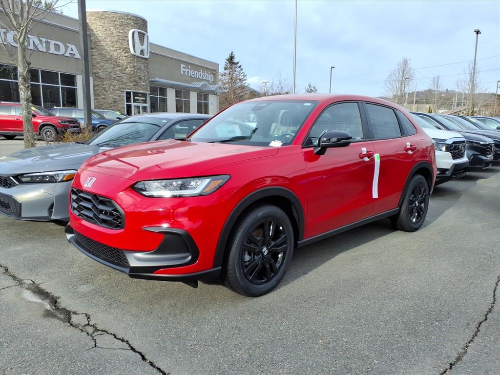 Red 2026 Honda HR-V Sport FWD CVT 2.0L I4 DOHC 16V i-VTEC26/32 City/Highway MPGINFORMATION ABOUT THIS VEHICLE AND ITS FEATURES:. 4-Wheel Disc Brakes, 6 Speakers, ABS brakes, Adaptive Cruise Control: Adaptive Cruise Control (ACC) with Low-Speed Follow, Air Conditioning, Alloy wheels, AM/FM radio, Apple CarPlay/Android Auto, Auto High-beam Headlights, Automatic temperature control, Blind Spot Information (BSI) System warning, Brake assist, Bumpers: body-color, Cloth Seat Trim, Compass, Delay-off headlights, Driver door bin, Driver vanity mirror, Dual front impact airbags, Dual front side impact airbags, Electronic Stability Control, Exterior Parking Camera Rear, Four wheel independent suspension, Front anti-roll bar, Front Bucket Seats, Front Center Armrest, Front reading lights, Fully automatic headlights, Heated door mirrors, Heated Front Bucket Seats, Heated front seats, Illuminated entry, Knee airbag, Low tire pressure warning, Occupant sensing airbag, Outside temperature display, Overhead airbag, Panic alarm, Passenger door bin, Passenger vanity mirror, Power door mirrors, Power steering, Power windows, Radio data system, Radio: 180-Watt Audio System with 6 Speakers, Rear anti-roll bar, Rear reading lights, Rear side impact airbag, Rear window defroster, Rear window wiper, Remote keyless entry, Security system, Speed control, Speed-sensing steering, Split folding rear seat, Spoiler, Steering wheel mounted audio controls, Tachometer, Telescoping steering wheel, Tilt steering wheel, Traction control, Trip computer, Turn signal indicator mirrors, Variably intermittent wipers, and Wheels: 18 Gloss Black Alloy.WHY BUY FROM FRIENDSHIP - Friendshiphonda.comQUICK, EASY, AFFORDABLE FINANCING AVAILABLE-Friendship offers competitive financing plans from a variety of sources for almost any need. Most decisions are made within 30 minutes. 6 days a week. Good credit, bad credit, no credit...Friendship Honda can help.All advertised prices EXCLUDE optional equipment selected by the purchaser, dealer documentation fee of $799, and state/local taxes, tags, registration/title fees.