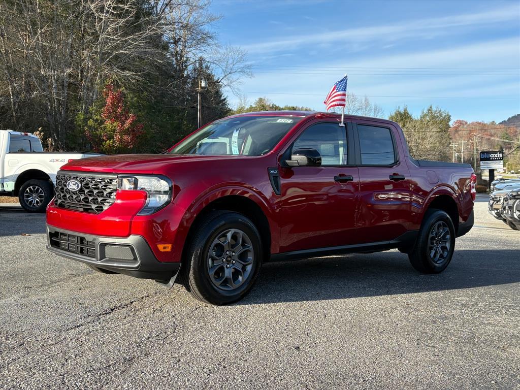 Ruby Red Metallic 2025 Ford Maverick XLT FWD CVT 2.5L I-4 Hybrid 42/35 City/Highway MPG Check out all these great options Equipment Group 300A, Ford Co-Pilot360 1.0 (Auto High Beams, BLIS w/Cross-Traffic Alert, Cross Traffic Brake Assist, Evasive Steering Assist, Intersection Assist, Lane-Keeping System, Power Glass Manual-Folding Mirrors, Pre-Collision Assist w/Automatic Emergency Braking, Rear Parking Sensors, and Rear-View Camera), XLT Luxury Package (400W Inverter w/USB Console Rear, Heated Mirror w/Painted Black Skull Caps, Heated Seats, LED Box Lighting, Remote Start System, and Soft Vinyl Wrapped Heated Steering Wheel), 2.91 Axle Ratio, 4-Wheel Disc Brakes, 6 Speakers, ABS brakes, Air Conditioning, Alloy wheels, AM/FM radio: SiriusXM with 360L, Apple CarPlay/Android Auto, Auto High-beam Headlights, Automatic temperature control, Brake assist, Bumpers: body-color, Compass, Delay-off headlights, Driver door bin, Driver vanity mirror, Dual front impact airbags, Dual front side impact airbags, Electronic Stability Control, Emergency communication system: SYNC 4 911 Assist, Exterior Parking Camera Rear, Front & Rear Floor Liners w/o Carpet Mats, Front anti-roll bar, Front Bucket Seats, Front Center Armrest, Front reading lights, Front wheel independent suspension, Fully automatic headlights, Illuminated entry, Knee airbag, Low tire pressure warning, Occupant sensing airbag, Outside temperature display, Overhead airbag, Overhead console, Panic alarm, Passenger door bin, Passenger vanity mirror, Power door mirrors, Power steering, Power windows, Radio data system, Radio: AM/FM Stereo w/6 Speakers, Rear anti-roll bar, Rear seat center armrest, Rear step bumper, Remote keyless entry, Security system, SiriusXM w/360L, Speed control, Speed-sensing steering, Steering wheel mounted audio controls, SYNC 4 w/Enhanced Voice Recognition, Telescoping steering wheel, Tilt steering wheel, Traction control, Trip computer, Unique Cloth Front Bucket Seats, and Wheels: 17Carbonized Gray Painted Aluminum.