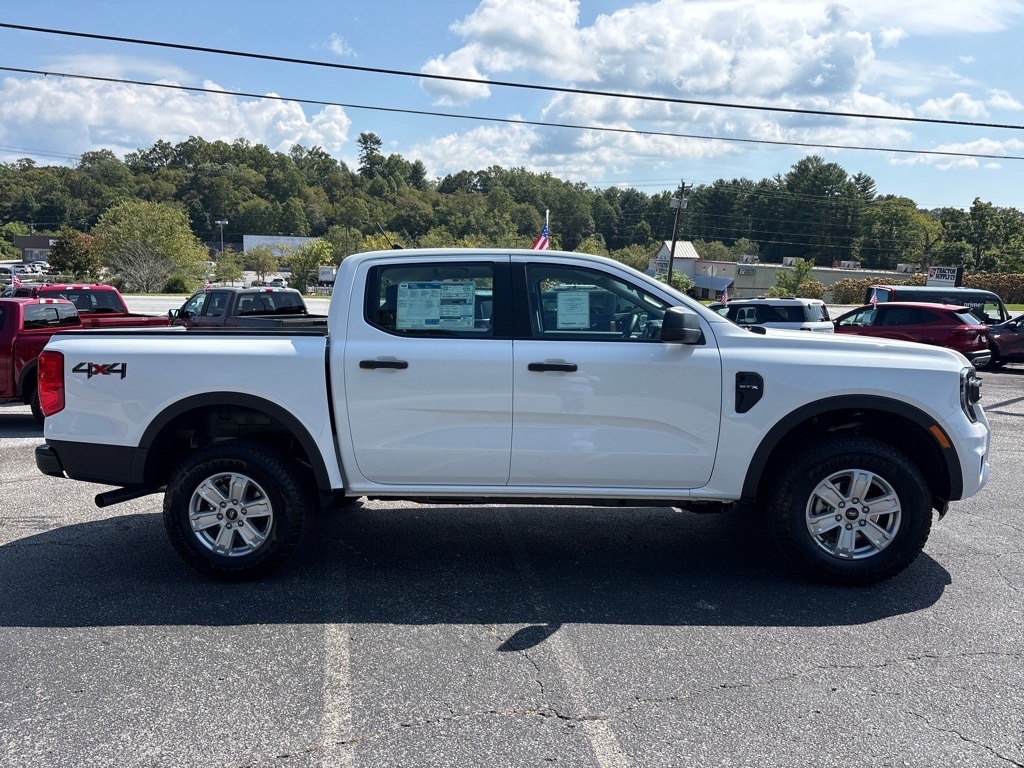 Oxford White 2025 Ford Ranger XL 4WD 10-Speed Automatic EcoBoost 2.3L I4 GTDi DOHC Turbocharged VCT Check out all these great options Equipment Group 100A Standard, STX Appearance Package (Halogen Fog Lamps, LED Reflector Headlamps, and STX Fender Badge), Trailer Tow Package (Class IV Trailer Hitch Receiver), 3.73 Axle Ratio, 4-Wheel Disc Brakes, 6 Speakers, ABS brakes, Air Conditioning, Alloy wheels, AM/FM radio, AM/FM Stereo, Auto High-beam Headlights, Brake assist, Bumpers: body-color, Cloth Front Bucket Seats, Compass, Delay-off headlights, Driver door bin, Dual front impact airbags, Dual front side impact airbags, Electronic Stability Control, Emergency communication system: SYNC 4 911 Assist, Front anti-roll bar, Front Bucket Seats, Front Center Armrest, Front fog lights, Front License Plate Bracket, Front reading lights, Front wheel independent suspension, Fully automatic headlights, Illuminated entry, Low tire pressure warning, Occupant sensing airbag, Outside temperature display, Overhead airbag, Overhead console, Panic alarm, Passenger door bin, Power door mirrors, Power steering, Power windows, Rear reading lights, Rear seat center armrest, Rear step bumper, Remote keyless entry, Security system, Speed control, Speed-sensing steering, Steering wheel mounted audio controls, SYNC 4A, Telescoping steering wheel, Tilt steering wheel, Traction control, Trip computer, Variably intermittent wipers, Voltmeter, and Wheels: 17Silver-Painted Aluminum.