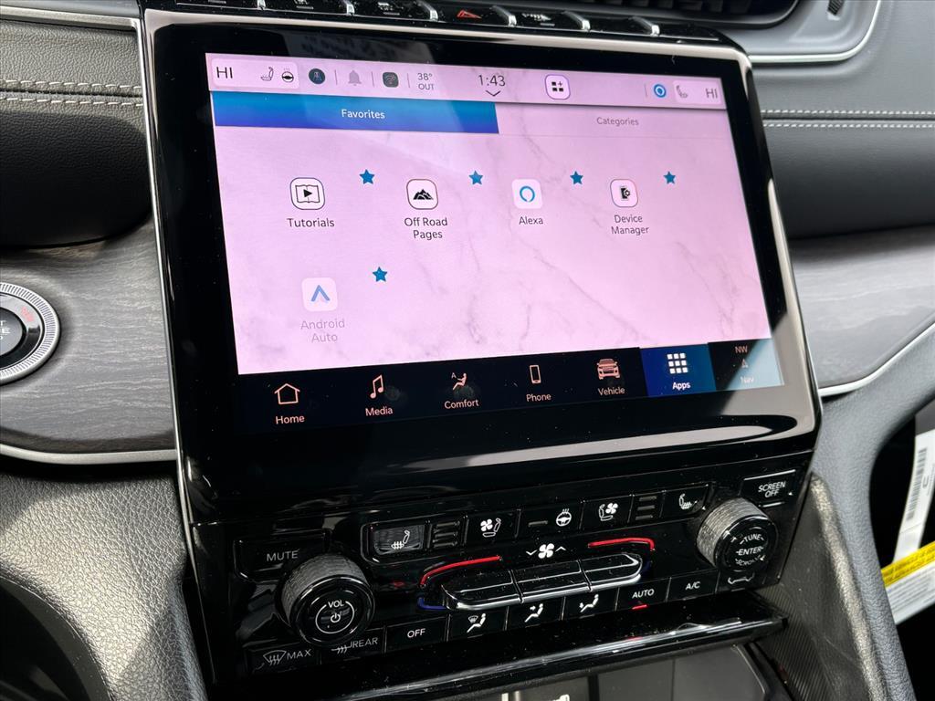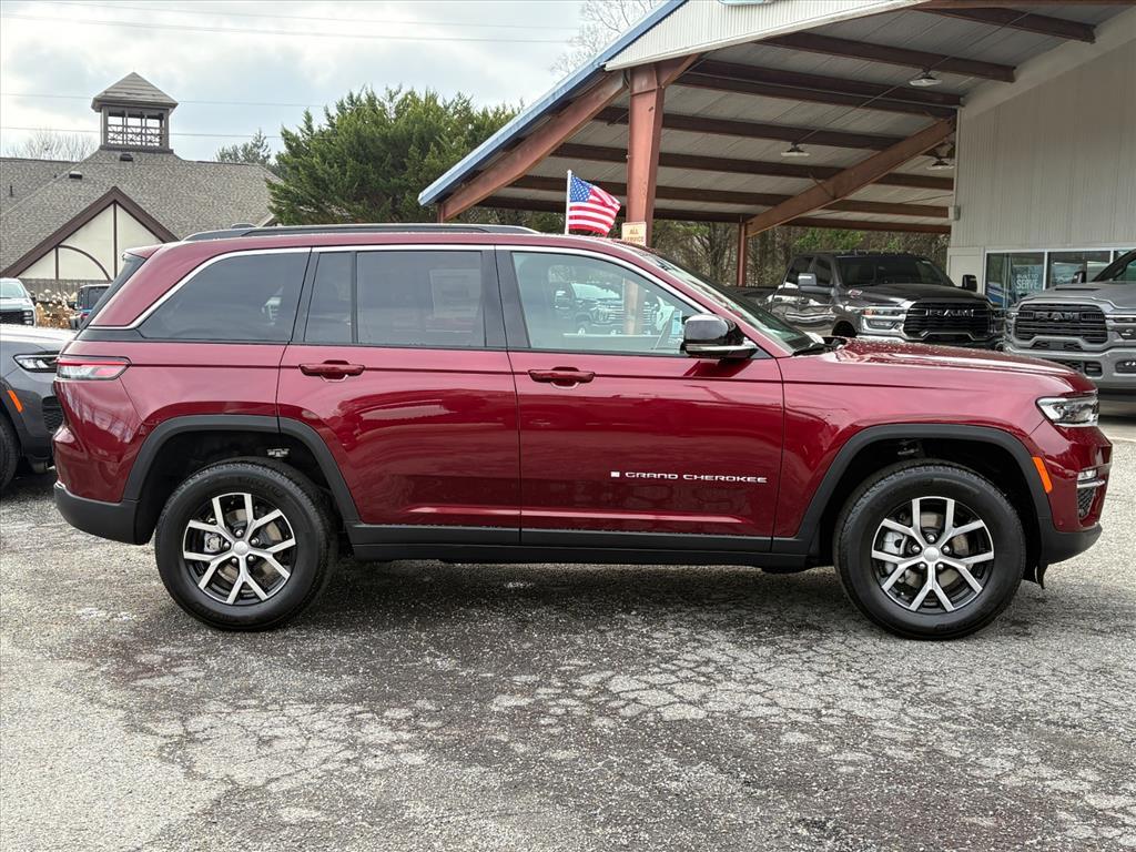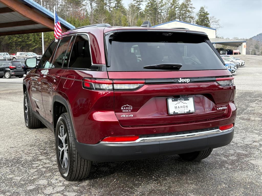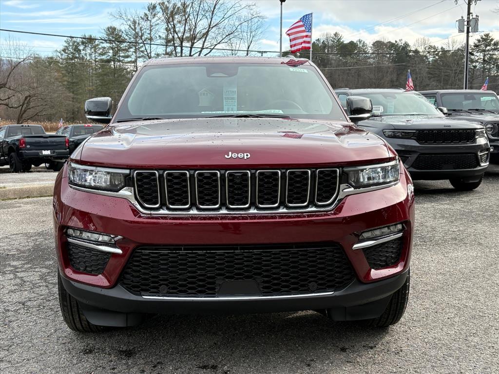 Velvet Red Pearlcoat 2025 Jeep Grand Cherokee Limited 4WD 8-Speed Automatic 3.6L V6 24V VVT 19/26 City/Highway MPG Check out all these great options Luxury Tech Group II (2nd-Row Manual Window Shades, Auto-Dimming Exterior Driver Mirror, Capri Leatherette w/Axis II Seats, Front/Rear Doors & Liftgate w/Passive Entry, Integrated Off-Road Camera, Intersection Collision Assist System, Memory Steering Column, ParkSense Front/Rear Park Assist w/Stop, Power Tilt/Telescope Steering Column, Rain Sensitive Windshield Wipers, Rear Back-Up Camera Washer, Rearview Autodim Digital Display Mirror, Surround View Camera System, Ventilated Front Seats, and Wireless Charging Pad), Quick Order Package 23E (DISC), 4-Wheel Disc Brakes, 6 Speakers, ABS brakes, Active Noise Control System, Air Conditioning, Alloy wheels, AM/FM radio: SiriusXM with 360L, Anti-whiplash front head restraints, Audio memory, Auto High-beam Headlights, Automatic temperature control, Brake assist, Bumpers: body-color, Capri Leatherette Seats, Compass, Delay-off headlights, Driver door bin, Driver vanity mirror, Dual front impact airbags, Dual front side impact airbags, Dual-Pane Panoramic Sunroof, Electronic Stability Control, Emergency communication system, Four wheel independent suspension, Front anti-roll bar, Front Bucket Seats, Front Center Armrest w/Storage, Front dual zone A/C, Front fog lights, Front License Plate Bracket, Front reading lights, Fully automatic headlights, Garage door transmitter, Heated door mirrors, Heated front seats, Heated rear seats, Heated steering wheel, Illuminated entry, Knee airbag, Low tire pressure warning, Memory seat, Model Year Tracking, Navigation System, Normal Duty Suspension, Occupant sensing airbag, Outside temperature display, Overhead airbag, Overhead console, Panic alarm, ParkView Rear Back-Up Camera, Passenger door bin, Passenger vanity mirror, Power door mirrors, Power driver seat, Power Liftgate, Power passenger seat, Power steering, Power windows, Radio data system, Radio: Uconnect 5 Nav w/10.1Display, Rear anti-roll bar, Rear reading lights, Rear window defroster, Rear window wiper, Remote keyless entry, Security system, Speed control, Speed-Sensitive Wipers, Split folding rear seat, Spoiler, Steering wheel mounted audio controls, Tachometer, Telescoping steering wheel, Tilt steering wheel, Traction control, Trip computer, Turn signal indicator mirrors, Variably intermittent wipers, Voltmeter, and Wheels: 18x 8Polished/Painted Aluminum.