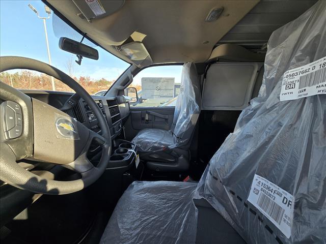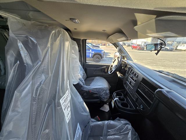 Summit White 2025 Chevrolet Express 3500 Work Van Cargo RWD 8-Speed Automatic with Overdrive 4.3L V6 INFORMATION ABOUT THIS VEHICLE AND ITS FEATURES:. Driver Convenience Package (Cruise Control and Tilt Steering Wheel), Preferred Equipment Group 1WT, 16x 6.5Steel Wheels, 2 Speakers, 3.42 Rear Axle Ratio, 4-Wheel Disc Brakes, ABS brakes, Air Conditioning, AM/FM radio, AM/FM Stereo w/MP3 Player, Delay-off headlights, Driver & Front Passenger High-Back Bucket Seats, Driver & Front Passenger Vinyl Visors, Driver door bin, Drivers Seat Mounted Armrest, Dual front impact airbags, Dual front side impact airbags, Electronic Stability Control, Exterior Parking Camera Rear, Front anti-roll bar, Front Bucket Seats, Front Reclining High-Back Bucket Seats, Front wheel independent suspension, Full-Length Black Rubberized-Vinyl Floor Covering, Fully automatic headlights, Heated door mirrors, Low tire pressure warning, Occupant sensing airbag, Overhead airbag, Passenger cancellable airbag, Passenger door bin, Passenger seat mounted armrest, Power door mirrors, Power steering, Power windows, Remote Keyless Entry, Single-Zone Manual Air Conditioning, Sliding Passenger-Side Door, Tachometer, Theft Alarm Notification, Traction control, Trip computer, Variably intermittent wipers, Vinyl Seat Trim, and Voltmeter.