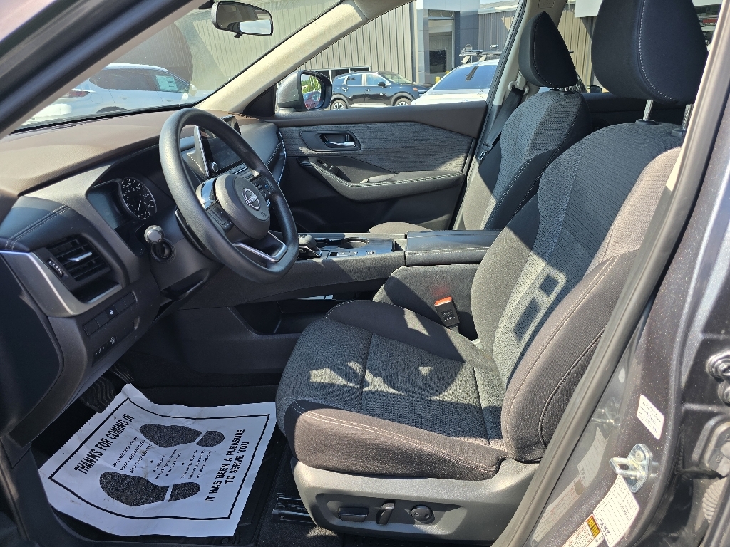 CVT with Xtronic INFORMATION ABOUT THIS VEHICLE AND ITS FEATURES:, Bluetooth, USB Port, Backup Camera/ Rearview Camera, Push Button Start, Alloy Wheels, Backup Camera. Priced below KBB Fair Purchase Price! 2023 Nissan Rogue SV Gun Metallic FWD 1.5L I3 Turbocharged DOHC 12V LEV3-ULEV50 201hp Odometer is 10904 miles below market average! 30/37 City/Highway MPG 18Aluminum Alloy Wheels, 4-Wheel Disc Brakes, 5.604 Axle Ratio, 6 Speakers, ABS brakes, Air Conditioning, Alloy wheels, AM/FM Radio, AM/FM radio: SiriusXM, Auto High-beam Headlights, Automatic temperature control, Brake assist, Bumpers: body-color, Cloth Seat Trim, Delay-off headlights, Driver door bin, Driver vanity mirror, Dual front impact airbags, Dual front side impact airbags, Electronic Stability Control, Emergency communication system: NissanConnect Services, Floor Mats w/1-Piece Cargo Area Protector, Four wheel independent suspension, Front anti-roll bar, Front Bucket Seats, Front Center Armrest, Front dual zone A/C, Front reading lights, Fully automatic headlights, Heated door mirrors, Illuminated entry, Knee airbag, Low tire pressure warning, NissanConnect featuring Apple CarPlay and Android Auto, Occupant sensing airbag, Outside temperature display, Overhead airbag, Overhead console, Panic alarm, Passenger door bin, Passenger vanity mirror, Power door mirrors, Power driver seat, Power steering, Power windows, Radio data system, Rear anti-roll bar, Rear Parking Sensors, Rear seat center armrest, Rear side impact airbag, Rear window defroster, Rear window wiper, Remote keyless entry, Speed control, Speed-Sensitive Wipers, Split folding rear seat, Spoiler, Steering wheel mounted audio controls, Tachometer, Telescoping steering wheel, Tilt steering wheel, Traction control, Trip computer, and Variably intermittent wipers.