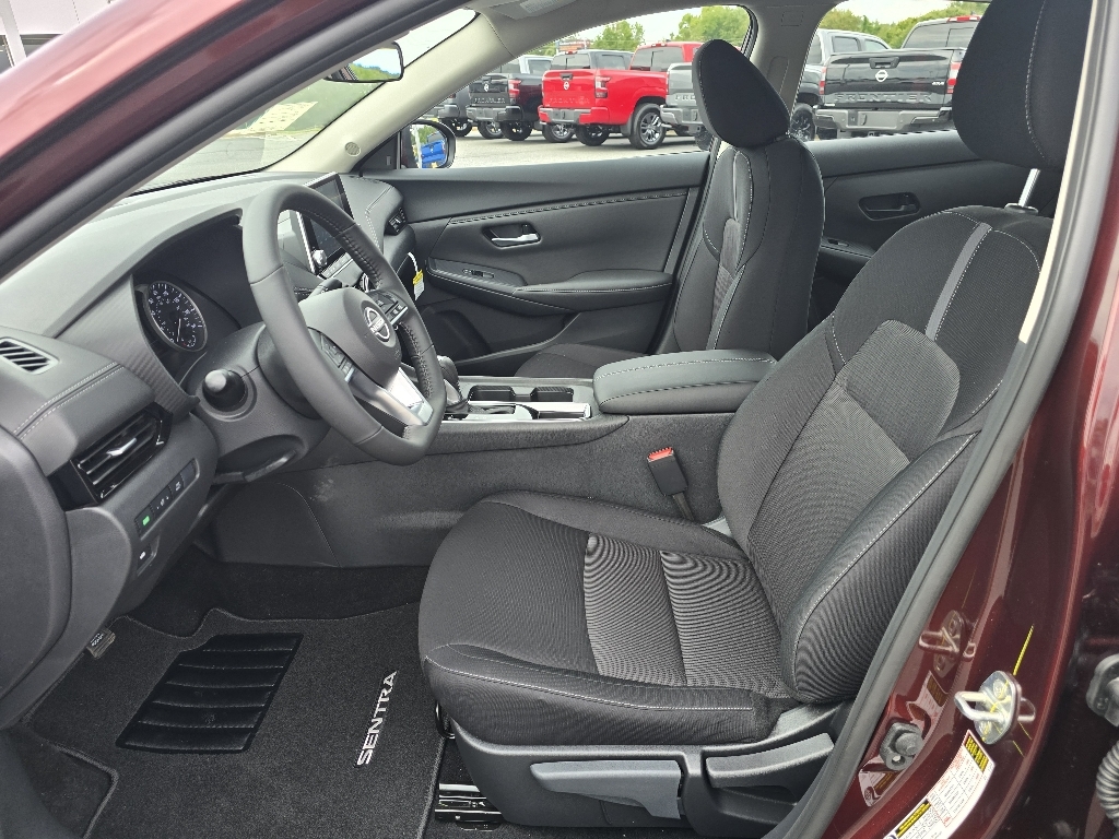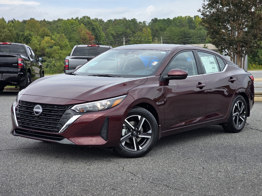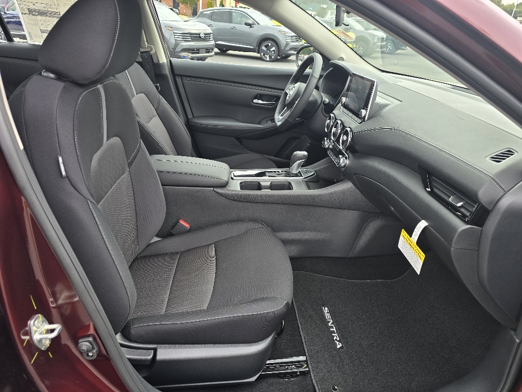 Rosewood Metallic 2025 Nissan Sentra SV FWD CVT with Xtronic 2.0L I4 DOHC INFORMATION ABOUT THIS VEHICLE AND ITS FEATURES:, CVT with Xtronic, Charcoal Cloth. Recent Arrival! 30/40 City/Highway MPG All-Weather Package (Dual Zone Auto Climate Control, Heated Exterior Mirrors, Heated Front Seats, Leather-Wrapped Heated Steering Wheel, and Remote Engine Start), CVT with Xtronic, Charcoal Cloth, 16Alloy Wheels, 4-Wheel Disc Brakes, 8 Speakers, ABS brakes, Air Conditioning, Alloy wheels, AM/FM radio: SiriusXM, Auto High-beam Headlights, Blind Spot Warning, Body Colored Splash Guards (4-Piece), Brake assist, Bumpers: body-color, Carpeted Floor Mats w/Trunk Mat, Clear Rear Bumper Protector, Delay-off headlights, Door Sill Plates, Driver door bin, Driver vanity mirror, Dual front impact airbags, Dual front side impact airbags, Electronic Stability Control, Four wheel independent suspension, Front anti-roll bar, Front Bucket Seats, Front Center Armrest, Front reading lights, Fully automatic headlights, Illuminated entry, Knee airbag, Low tire pressure warning, NissanConnect featuring Apple CarPlay and Android Auto, Occupant sensing airbag, Outside temperature display, Overhead airbag, Overhead console, Panic alarm, Passenger door bin, Passenger vanity mirror, Power door mirrors, Power steering, Power windows, Radio data system, Radio: AM/FM w/RDS/MP3/Aux-In, Rear anti-roll bar, Rear Parking Sensors, Rear side impact airbag, Rear window defroster, Remote keyless entry, Security system, Speed control, Speed-sensing steering, Split folding rear seat, Steering wheel mounted audio controls, Tachometer, Telescoping steering wheel, Tilt steering wheel, Traction control, Trip computer, Upgraded Cloth Seat Trim, and Variably intermittent wipers. Price includes: $500 - Nissan MY25 Sentra Bonus Cash. Exp. 11/03/2025 $500 - Nissan SER MY25 Sentra (SV-SR) Bonus Cash - October. Exp. 11/03/2025