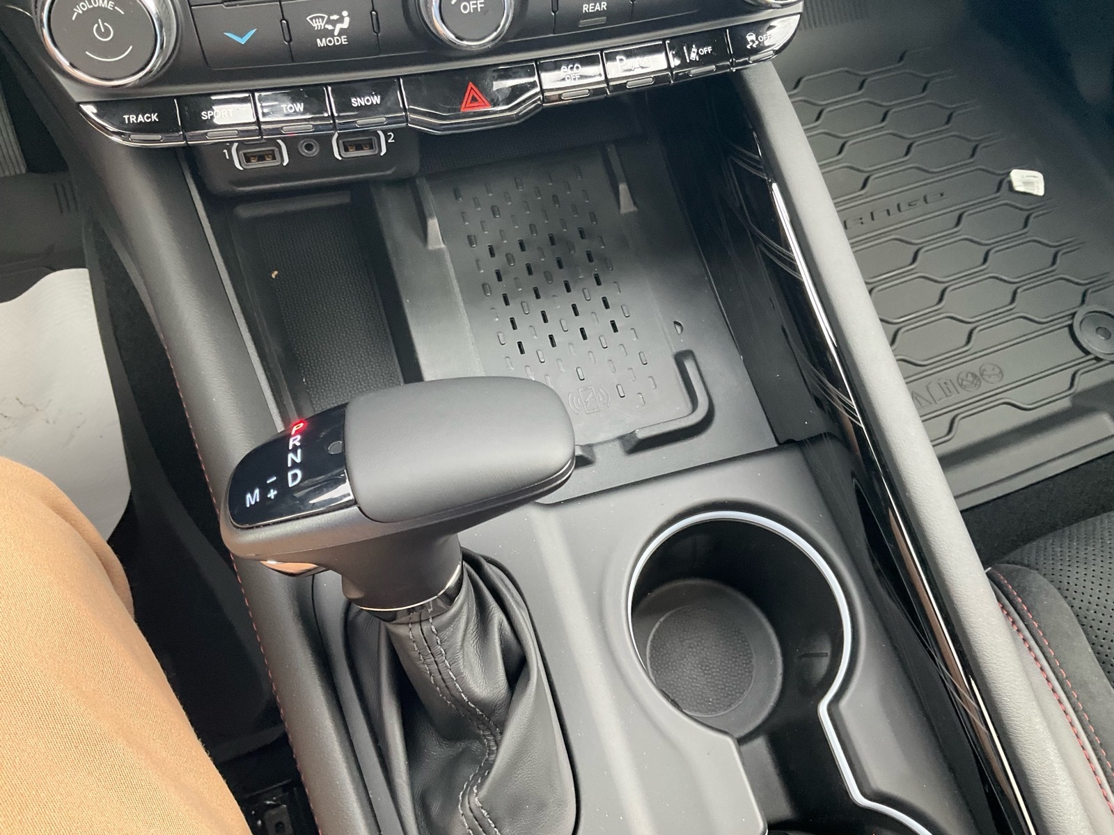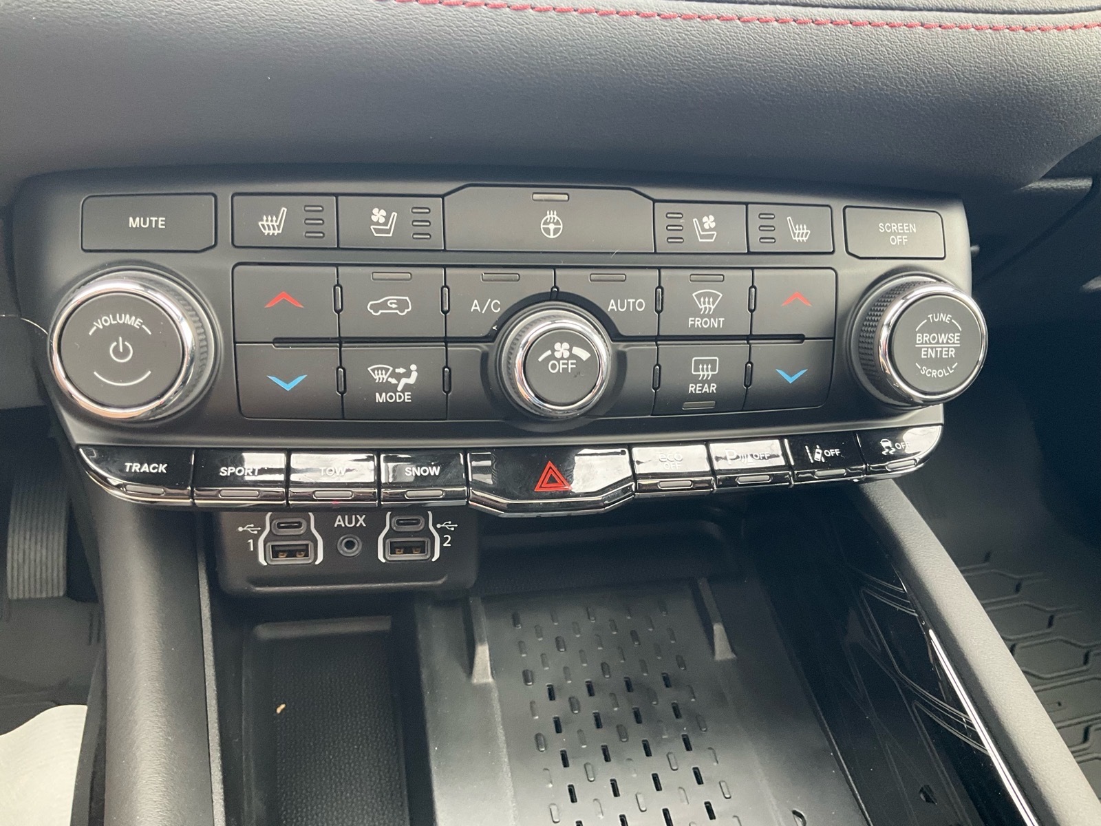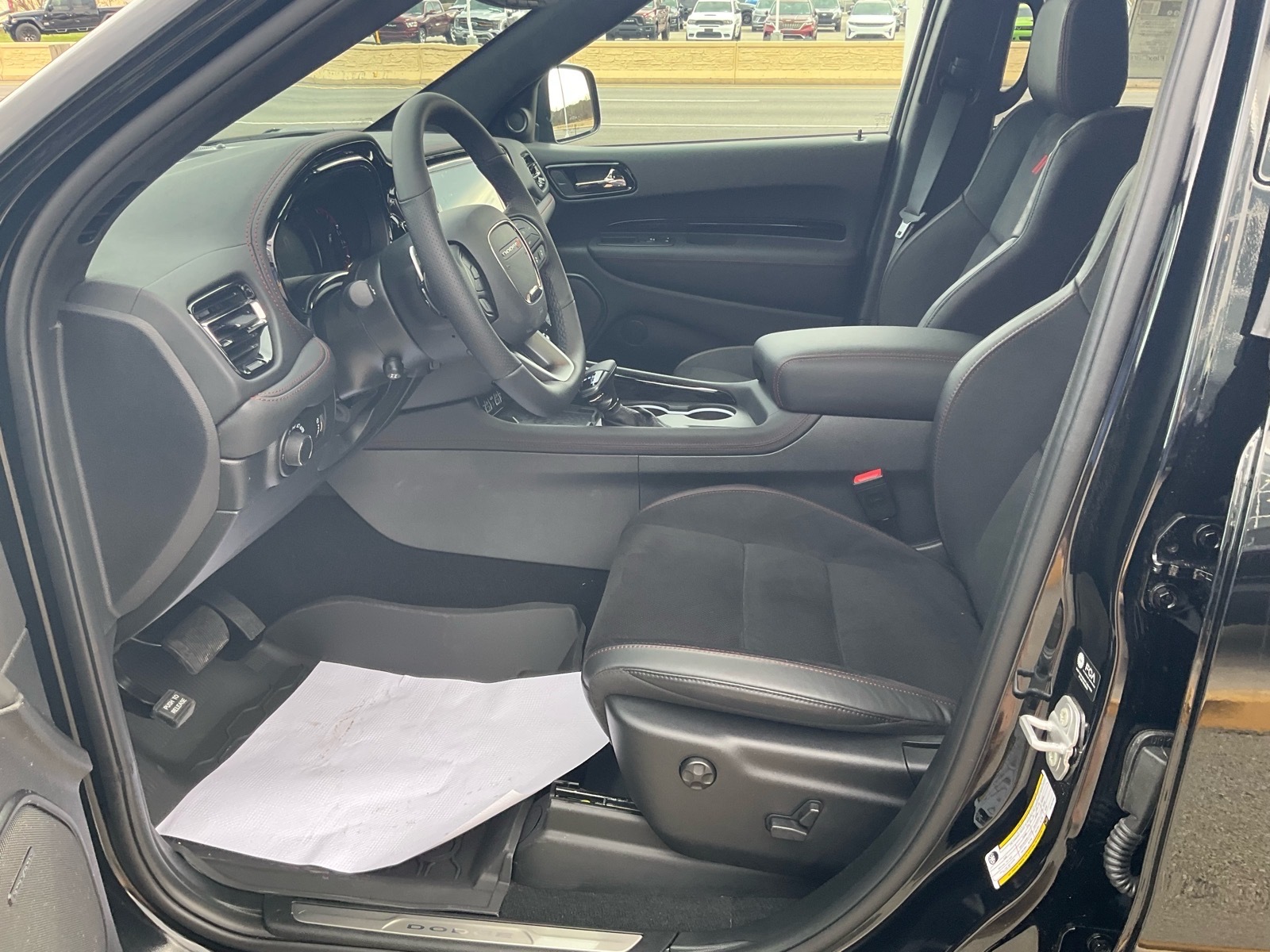 Other luxurious touches brought to Durango for the first time in the SRT model include new Light Black Chrome center stack, HVAC, full console and door handle bezels along with two choices of decorative bezels. Standard finish is Matte Reverse Chain, and for the first time on Durango a true carbon-fiber instrument panel and door bezels will be offered (late availability). Premium velour bound floor mats with embroidered SRT logo are standard. Adding to the impact of the hand-wrapped instrument panel, the headliner and A pillars are available in Dynamica suede.