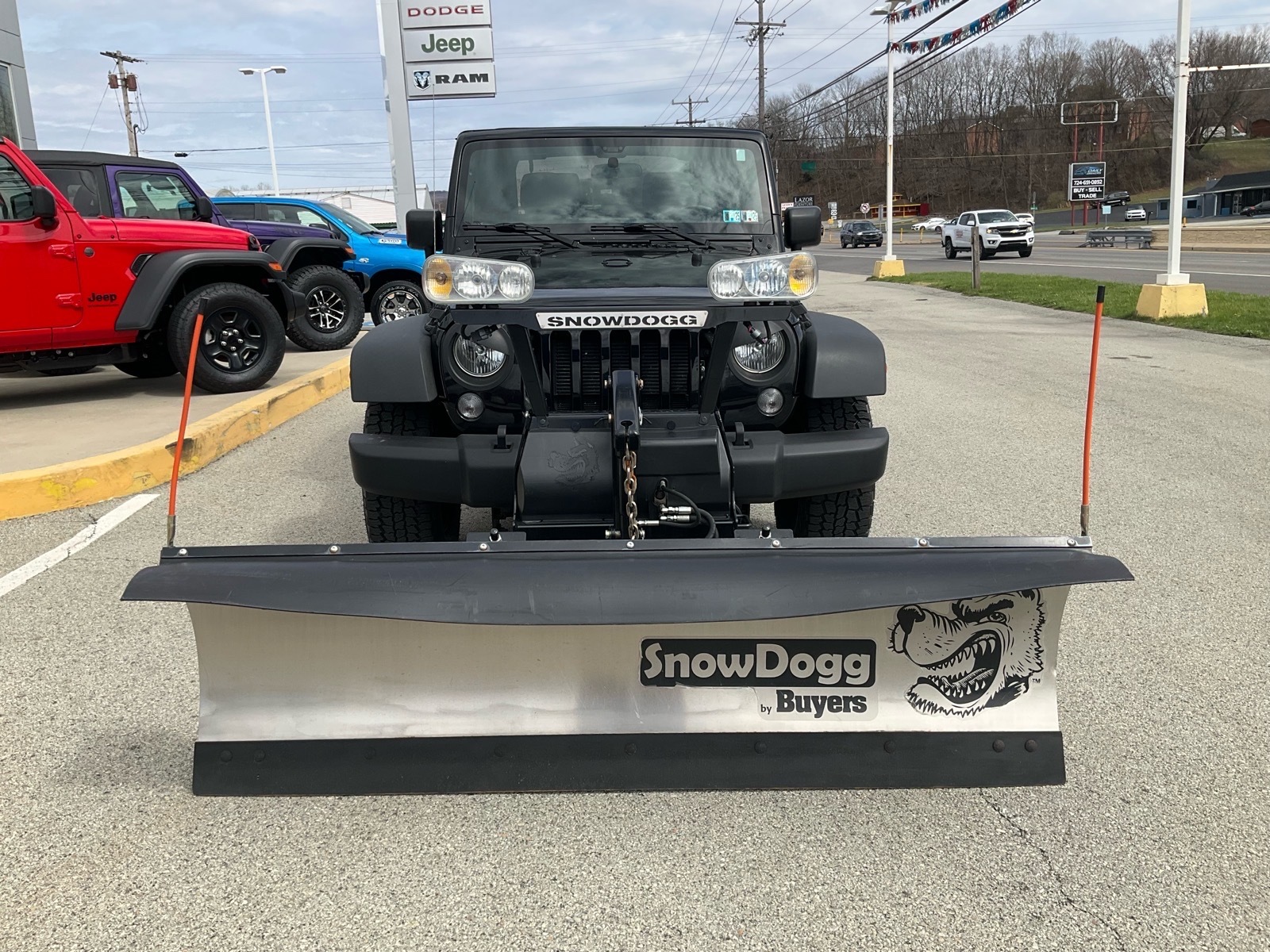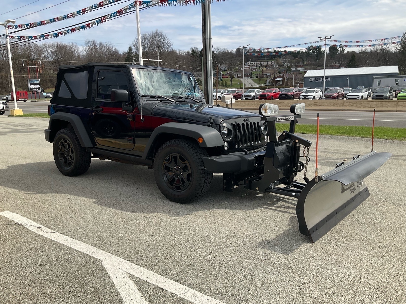 LOCAL TRADE, ONE OWNER, CLEAN CARFAX, WILLYS PACKAGE, 4X4, AUTOMATIC, SOFT TOP, AM/FM/CD/SAT RADIO, BLUETOOTH PHONE, SNOWDOGG MD68 SNOW PLOW, TILT WHEEL, CRUISE CONTROL AND MORE.