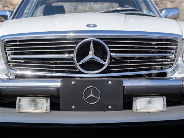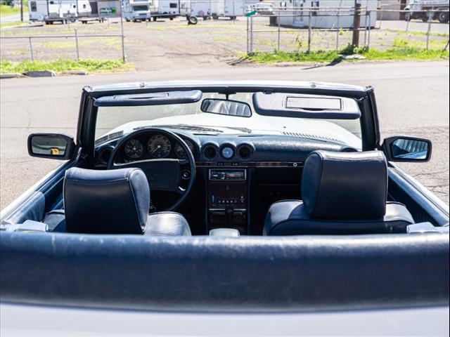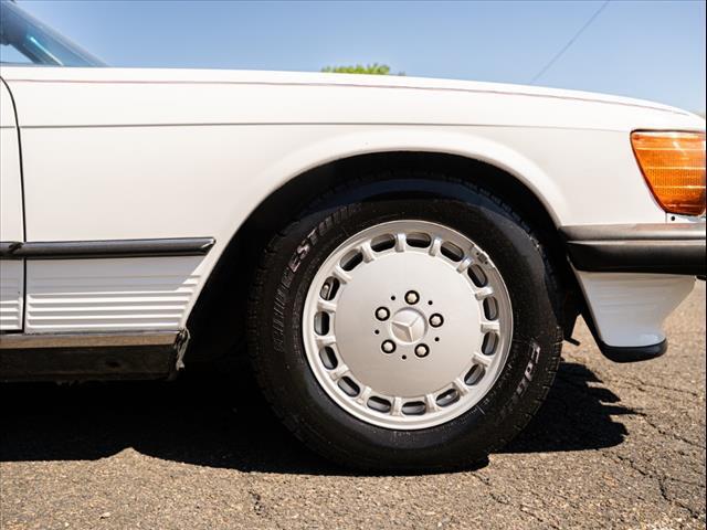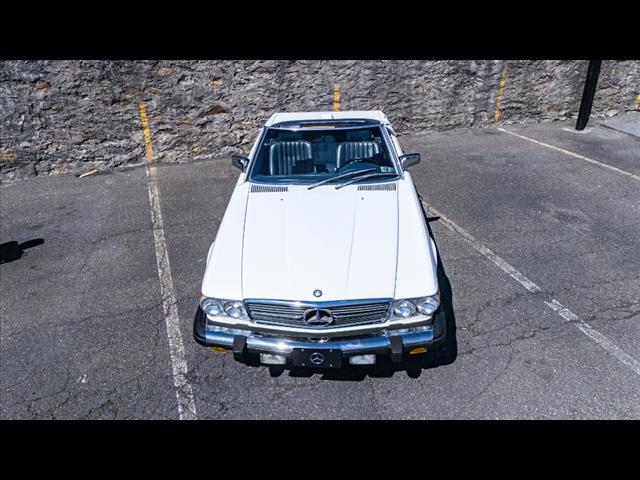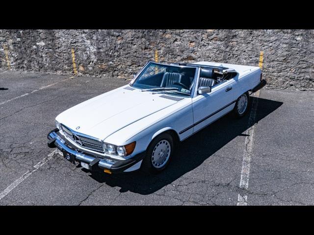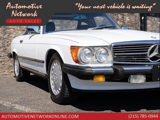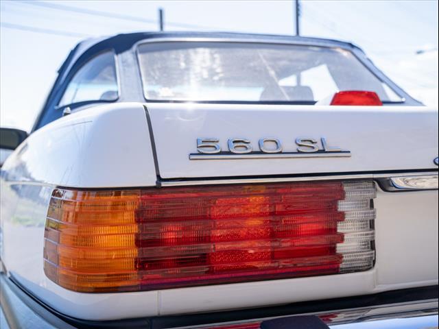 White 1986 Mercedes-Benz 500-Class 560 SL RWD 4-Speed Automatic 5.6L V8 Clean carfax Factory hardtop Artic white / Royal blue inteiror Original toolkit and manual in trunk Factory headunit in the trunk Runs perfectly! For specific questions, please contact one of our sales associates!