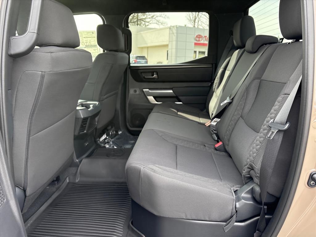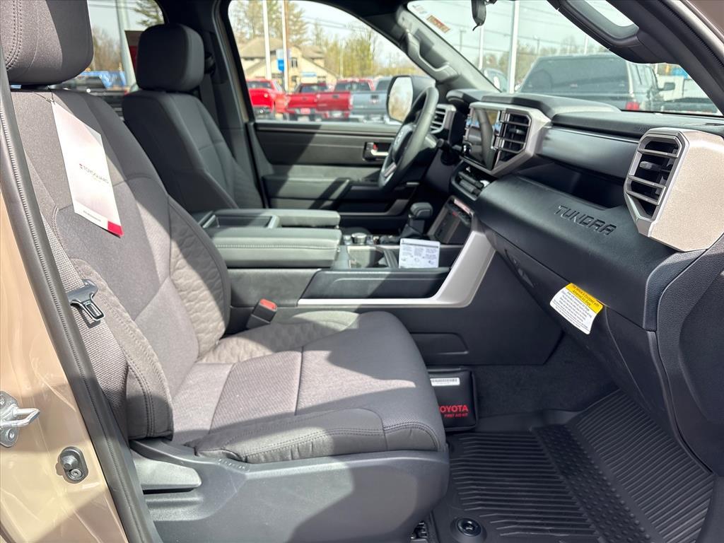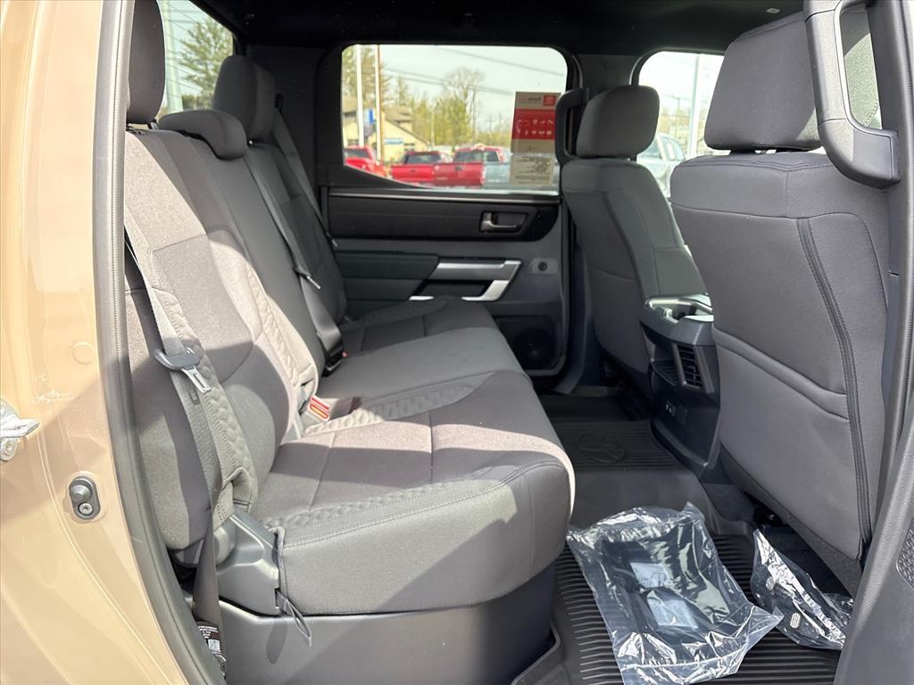 The brawny chiseled look of the Tundra is the ideal platform for the optional TRD Pro Off-Road Package. Model specific features include: split five-spoke TRD Off-Road Package alloy wheels with black accents and all-terrain P275/65R18 tires, trail-tuned Bilstein shock absorbers, engine skid plate, fuel tank skid plate, front tow hooks, LED fog lights (SR5), TRD Off Road floor mats (SR5/Limited), and bed side TRD Off-Road decal.