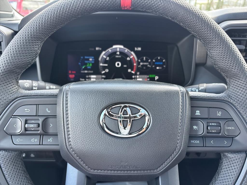 Navigation, Moonroof, Heated/Cooled Seats, Premium Sound System, Hybrid, Panoramic Roof, 4x4, Aluminum Wheels, Trailer Hitch. TRD Pro Hybrid trim, Midnight Black Metallic exterior and BLACK / BLUE interior. EPA 20 MPG Hwy/18 MPG City! KEY FEATURES INCLUDENavigation, Sunroof, Panoramic Roof, 4x4, Heated Driver Seat, Cooled Driver Seat, Back-Up Camera, Hybrid, Premium Sound System, Satellite Radio. MP3 Player, Privacy Glass, Keyless Entry, Steering Wheel Controls. Toyota TRD Pro Hybrid with Midnight Black Metallic exterior and BLACK / BLUE interior features a V6 Cylinder Engine with 437 HP at 5200 RPM*. Horsepower calculations based on trim engine configuration. Fuel economy calculations based on original manufacturer data for trim engine configuration. Please confirm the accuracy of the included equipment by calling us prior to purchase.