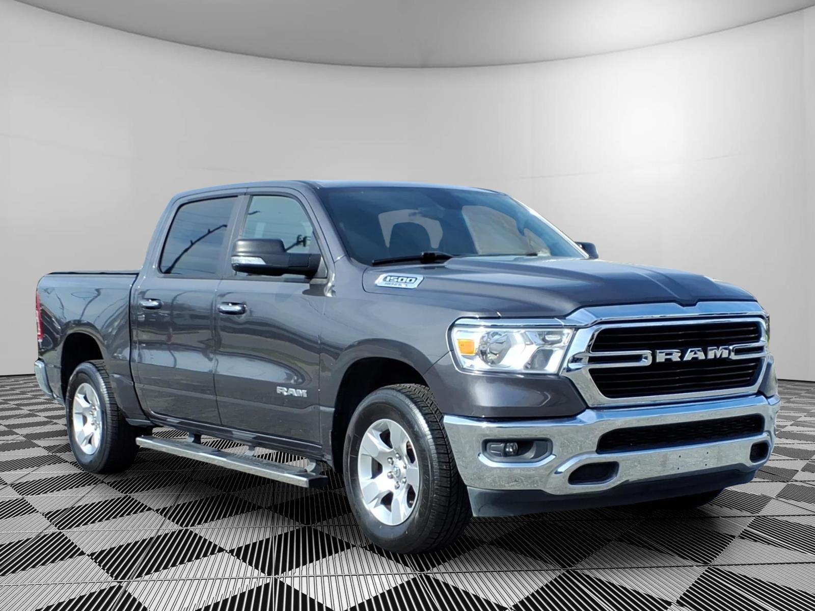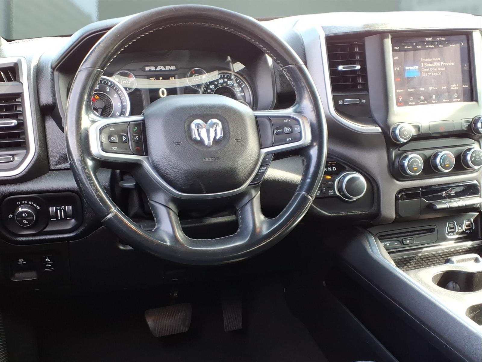Summary*All New ILDERTON CDJR Advertised Prices Includes all manufacturer incentives that customers may or may not qualify for **All New ILDERTON CDJR Advertised Prices exclude all taxes, tag, doc fee $999, title, registration fees, government fees and dealer installed add-ons. ***All ILDERTON CDJR Advertised Prices Include $1,000 FINANCE CASH ****ILDERTON CDJR Finance Cash is only available on preowned vehicles for prime lender conventional financing arranged by ILDERTON CDJR with a 620 score pulled by dealer, some lender and term restrictions may apply. Offer valid only on preowned vehicles in stock at the time of purchase.EquipmentStart the Ram 1500 from inside with remote start. The Ram 1500 offers Apple CarPlay for seamless connectivity. Bluetooth technology is built into this model, keeping your hands on the steering wheel and your focus on the road. with XM/Sirus Satellite Radio you are no longer restricted by poor quality local radio stations while driving this 1/2 ton pickup. Anywhere on the planet, you will have hundreds of digital stations to choose from. The vehicle has a clean CARFAX vehicle history report. See whats behind you with the back up camera on this 2019 Ram 1500 . This 2019 Ram 1500 has satellite radio capabilities. This unit comes equipped with Android Auto for seamless smartphone integration on the road. When you encounter slick or muddy roads, you can engage the four wheel drive on this vehicle and drive with confidence. This vehicle has a V8, 5.7L high output engine. The gas and brake pedals adjust allowing you to fine-tune them for personal fit and comfort.PackagesQuick Order Package 25Z Big Horn/Lone Star: Steering Wheel Mounted Audio Controls. Big Horn Level 1 Equipment Group: Uconnect 4 Radio with 8.4Display; SiriusXM Satellite Radio; Rear Window Defroster; Rear View Auto Dim Mirror; Power Adjustable Pedals; Rear Power Sliding Window; Rear Dome with On/off Switch Lamp; Glove Box Lamp; Power 4-Way Driver Lumbar Adjust; Power 8-Way Driver Seat; Universal Garage Door Opener; Cluster 3.5TFT Color Display; Foam Bottle Insert (door Trim Panel); Single Disc Remote CD Player; Class IV Receiver Hitch; Power Heated Fold Away Mirrors; Sun Visors with Illuminated Vanity Mirrors; Big Horn Instrument Panel Badge. Bed Utility Group: Spray in Bedliner; 4 Adjustable Cargo Tie-Down Hooks; Pick-Up Box Lighting. Deluxe Cloth Bucket Seats. Single Disc Remote CD Player. Remote Start S