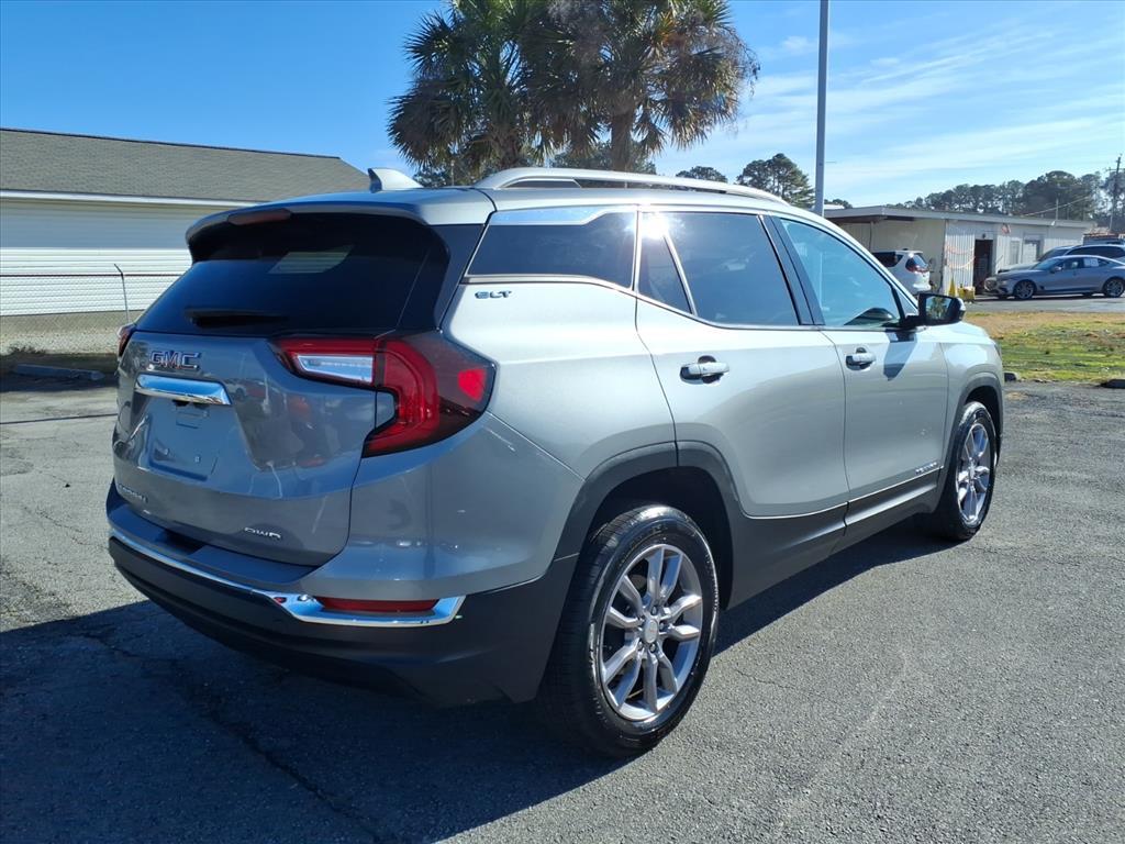 Vehicle DetailsDiscover exceptional value with this 2024 GMC Terrain SLT, located in Jacksonville, NC. With only 44,264 miles, this well-maintained compact SUV pairs a fuel-efficient 1.5L 4-cylinder gasoline engine with confident AWD capability for year-round traction and composed handling. The SLT trim balances comfort and technology, making it an ideal choice for daily commuting or weekend adventures. This GMC Terrain comes equipped with a CARFAX 1-Owner history, providing added assurance about its condition and ownership record. Safety features include Lane Keep Assist and Lane Departure Warning to help maintain proper lane position, while the Back-Up Camera improves visibility and convenience when parking or maneuvering. Automatic Climate Control keeps the cabin comfortable for all passengers regardless of weather. Inside, the SLT offers a refined interior with supportive seating and user-friendly controls, while connectivity features keep you linked to navigation and entertainment on the go. The AWD system enhances stability on wet or slippery roads, and the efficient 1.5L engine delivers a good balance of power and economy. This 2024 GMC Terrain SLT represents the best price in the area for a low-mileage, well-equipped AWD SUV with a reputable CARFAX history. Visit our Jacksonville, NC location to test drive and experience the blend of comfort, safety, and value this GMC Terrain provides. Schedule a viewing today.EquipmentNever get into a cold vehicle again with the remote start feature on this model. The leather seats in this vehicle are a must for buyers looking for comfort, durability, and style. See whats behind you with the back up camera on this vehicle. This vehicle is a certified CARFAX 1-owner. This 2024 GMC Terrain s Lane Departure Warning helps keep you in your lane. This unit features a hands-free Bluetooth phone system. This vehicle is pure luxury with a heated steering wheel. This GMC Terrain offers Automatic Climate Control for personalized comfort. Lane Keep Assist in this 2024 GMC Terrain helps maintain safe driving by gently steering to stay within the lane. The vehicle projects refinement with a racy metallic gray exterior. Conquer any rainy, snowy, or icy road conditions this winter with the all wheel drive system on this GMC Terrain. This mid-size suv has a 4 Cyl, 1.5L high output engine.PackagesPreferred Equipment Group 4SA. Sterling Metallic. **Equipment listed is based on or